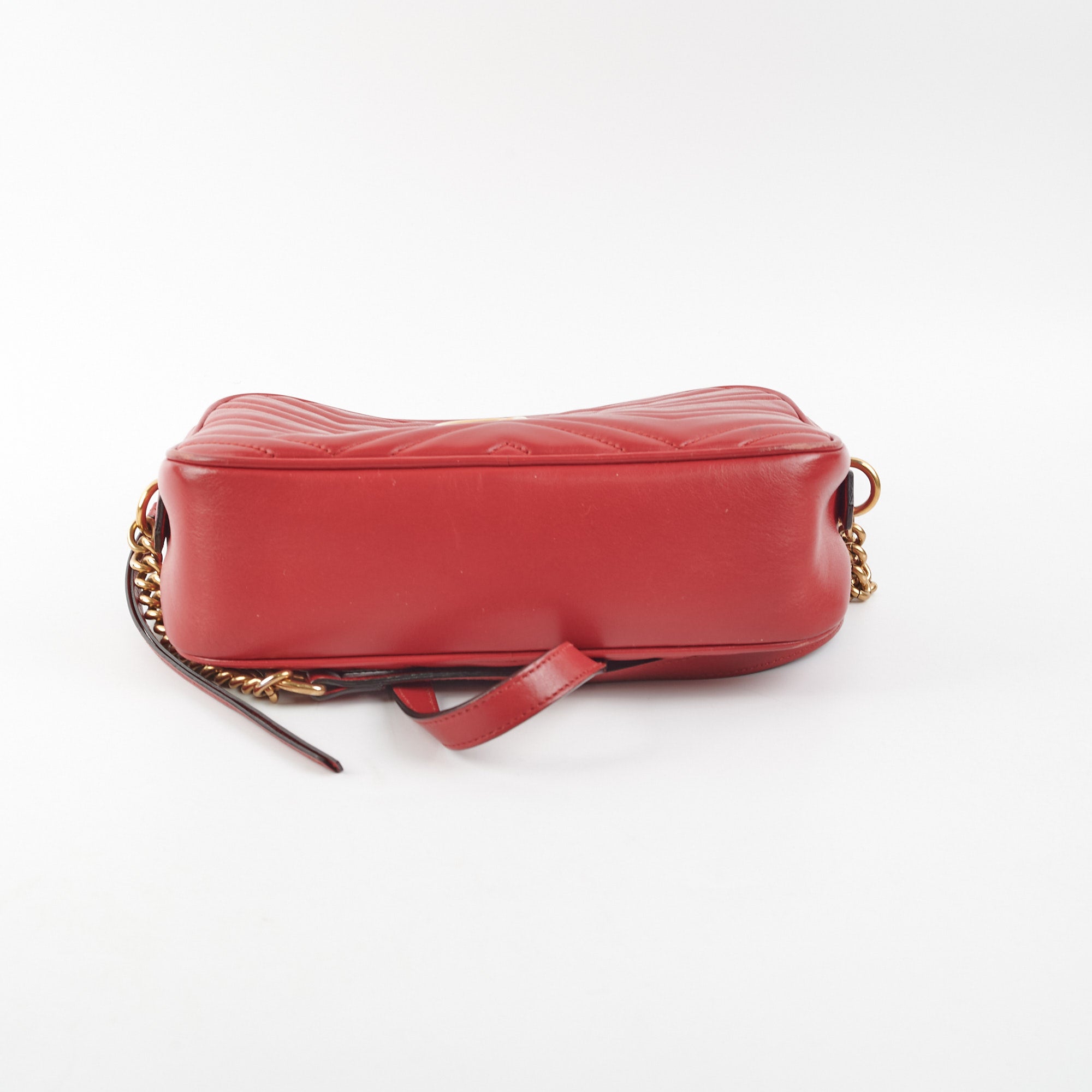 Small stain on base, rubbing on all corners, light hairline scratches and tarnishing on hardware, small scratch on base