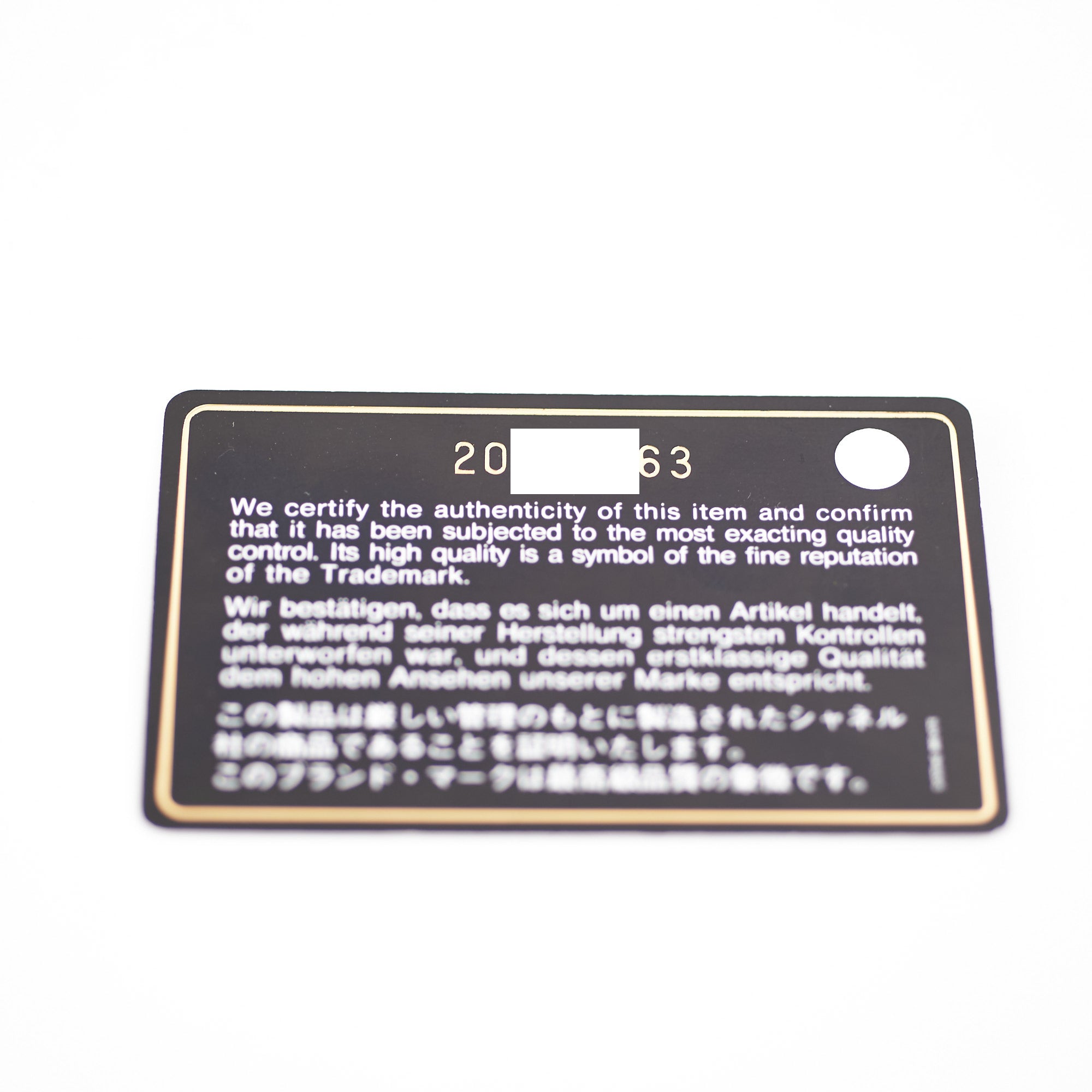 Authenticity Card, Dustbag