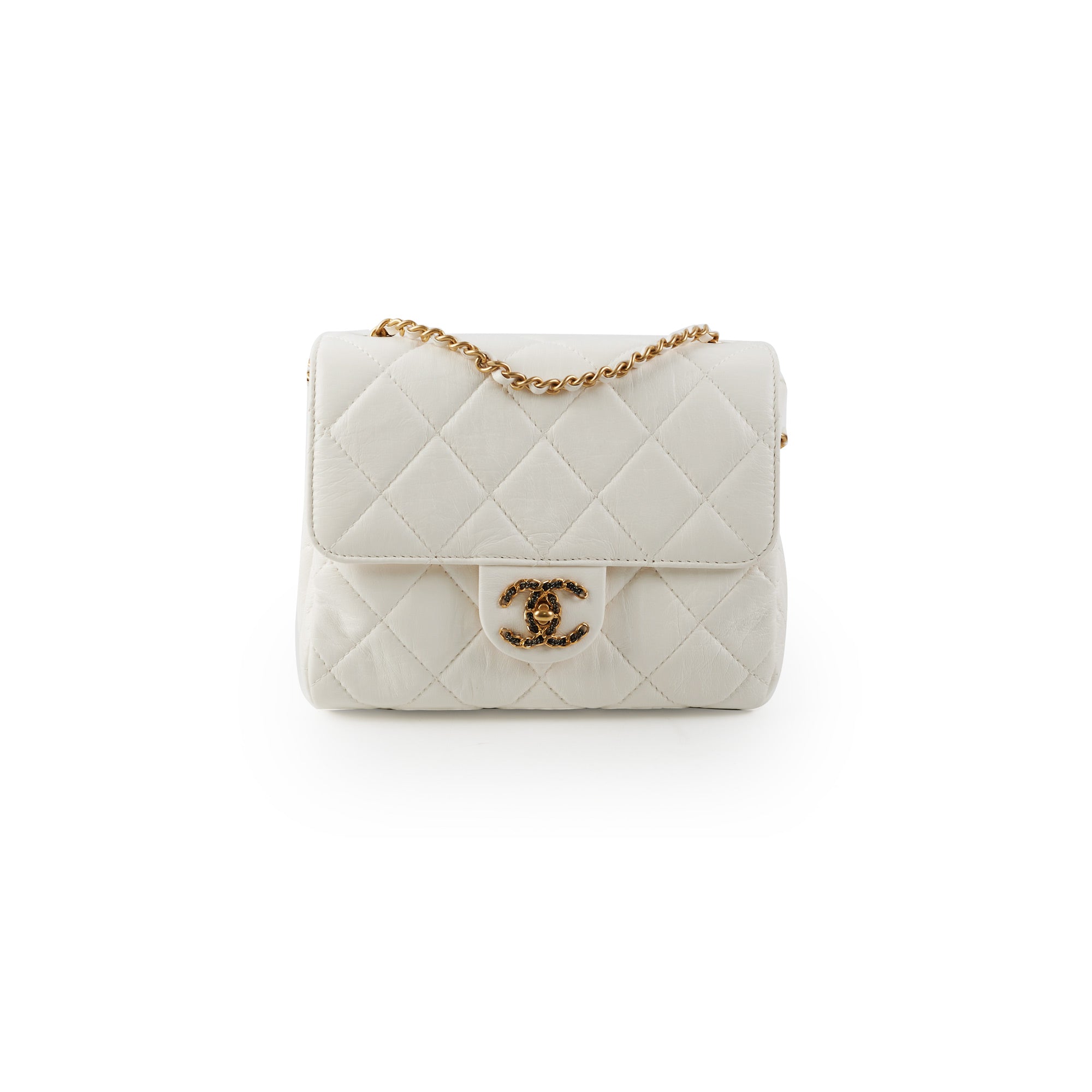 Light wear on leather part of chain, light horizontal creasing on front flap just above hardware logo
