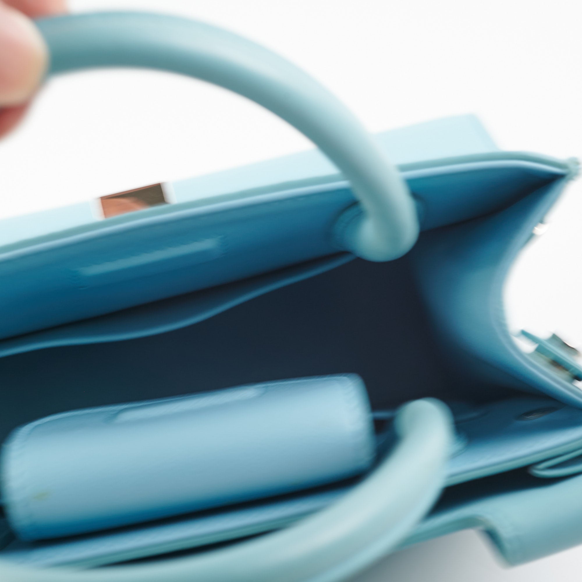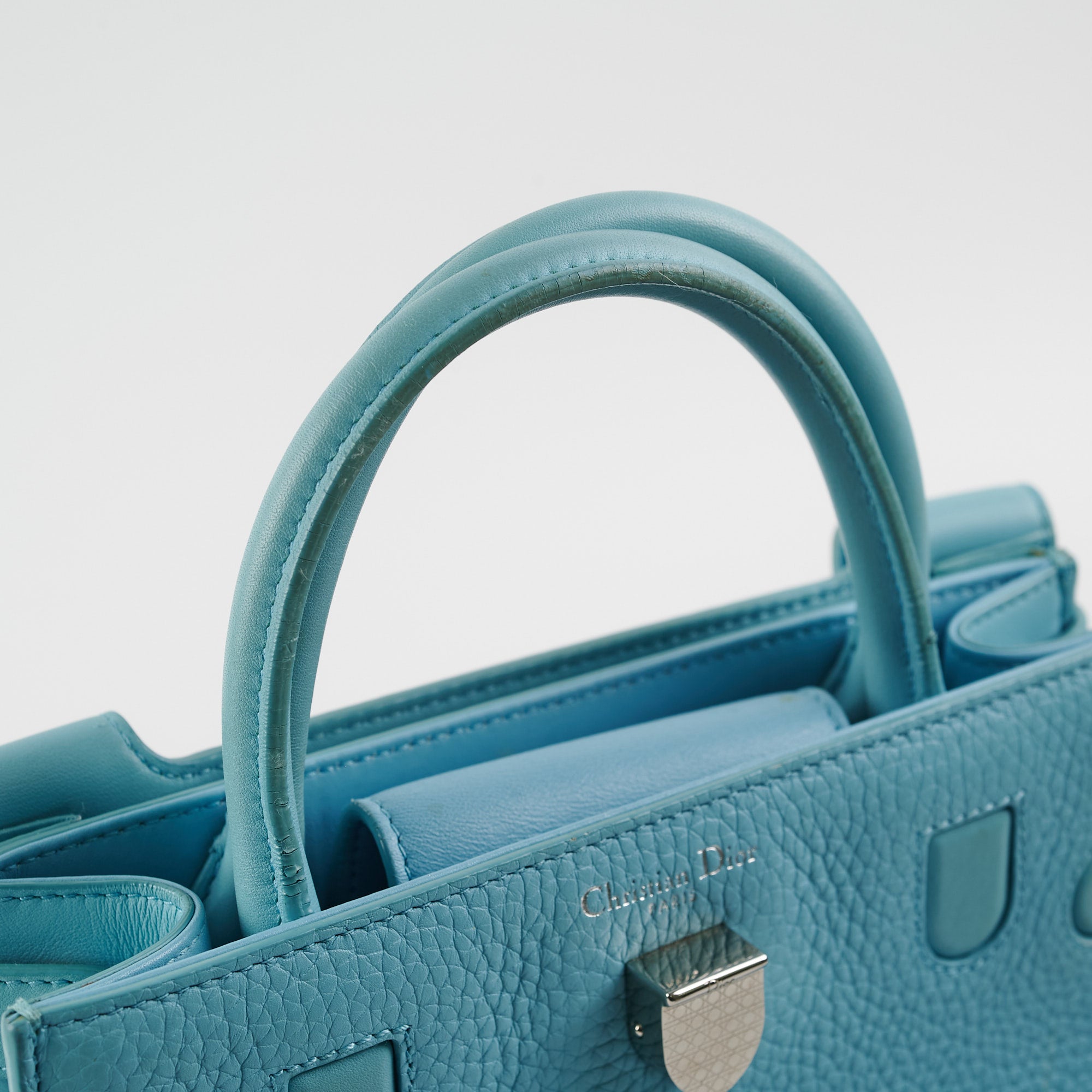 Rubbing on corners, colour transfer on upper bag, cracking on handle glazing