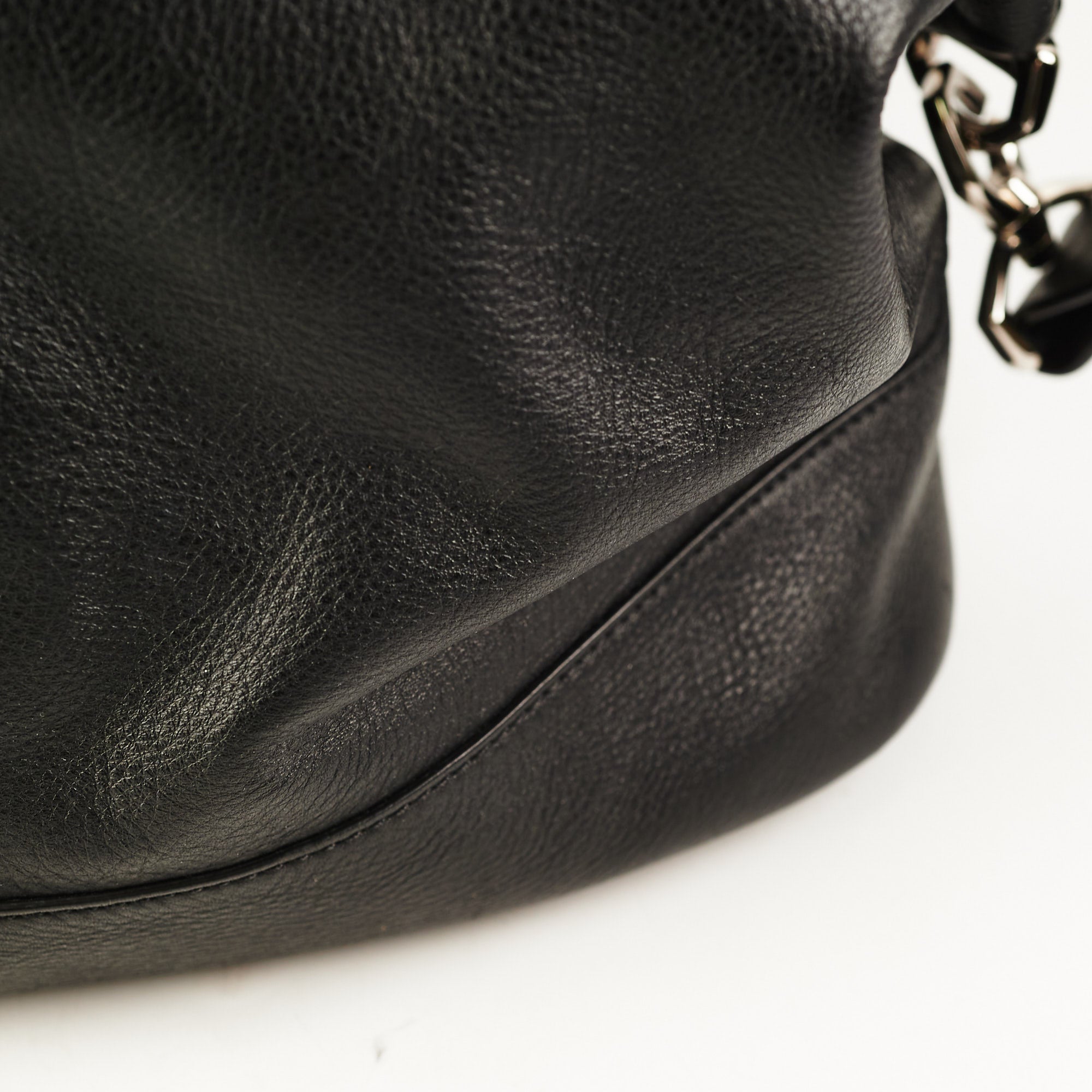 Light hairline scratches on hardware, light mark on front and interior, light nail marks and rubbing on strap