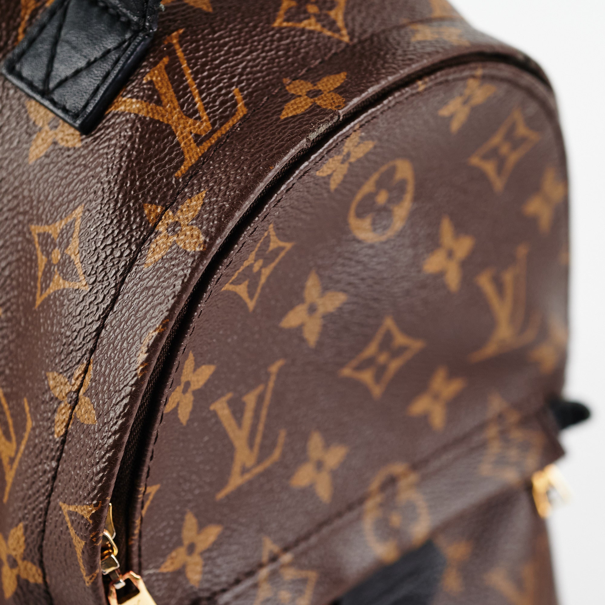 Rubbing on corners, zipper edge and tarnishing on hardware, canvas peels off on top