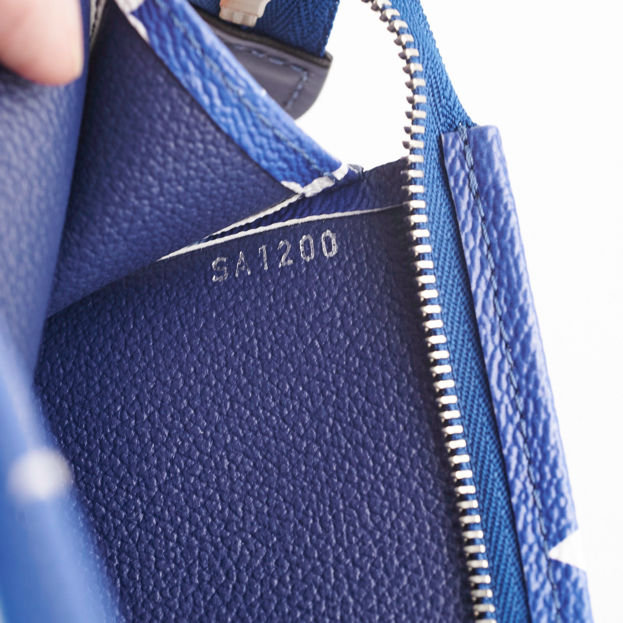 Light hairline scratches on hardware, minor blue mark on base