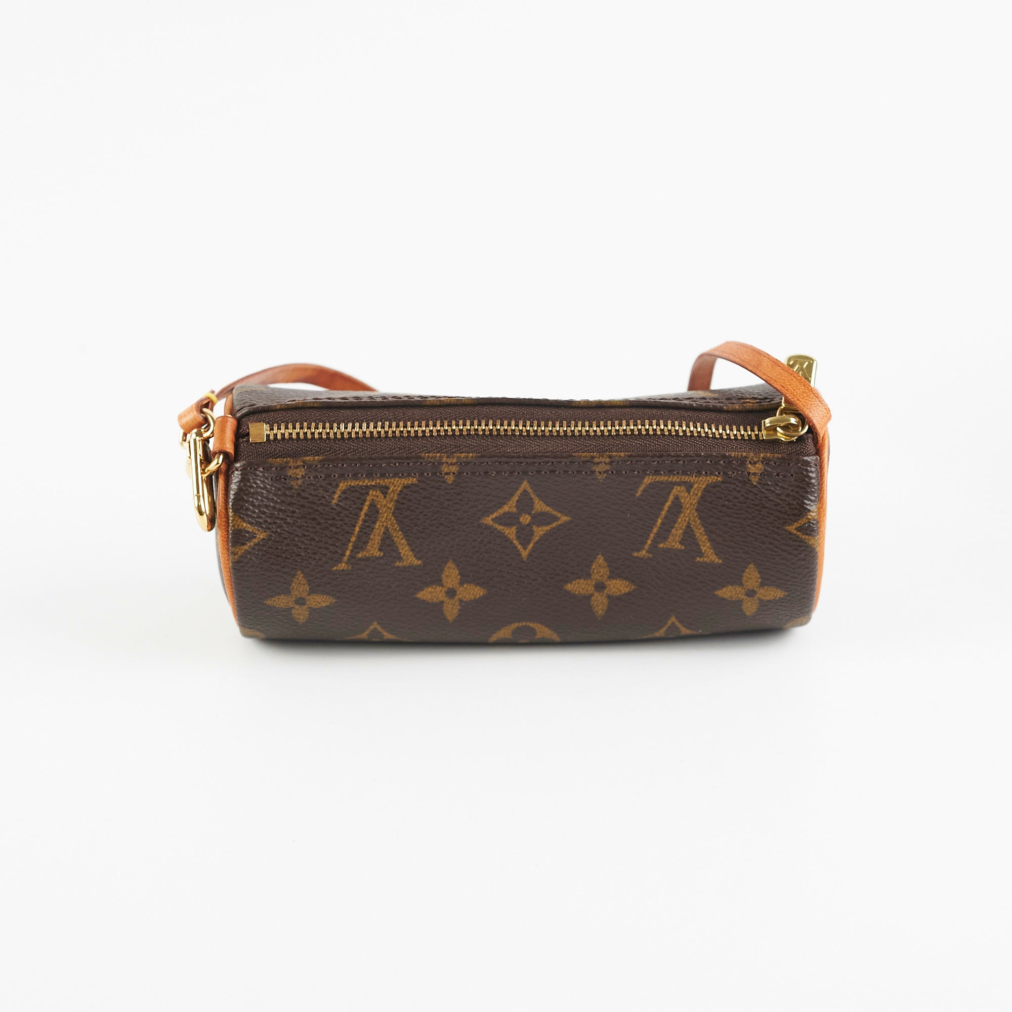 Light hairline scratches and minor tarnishing on hardware, darkened patina on vachetta and light water marks on strap