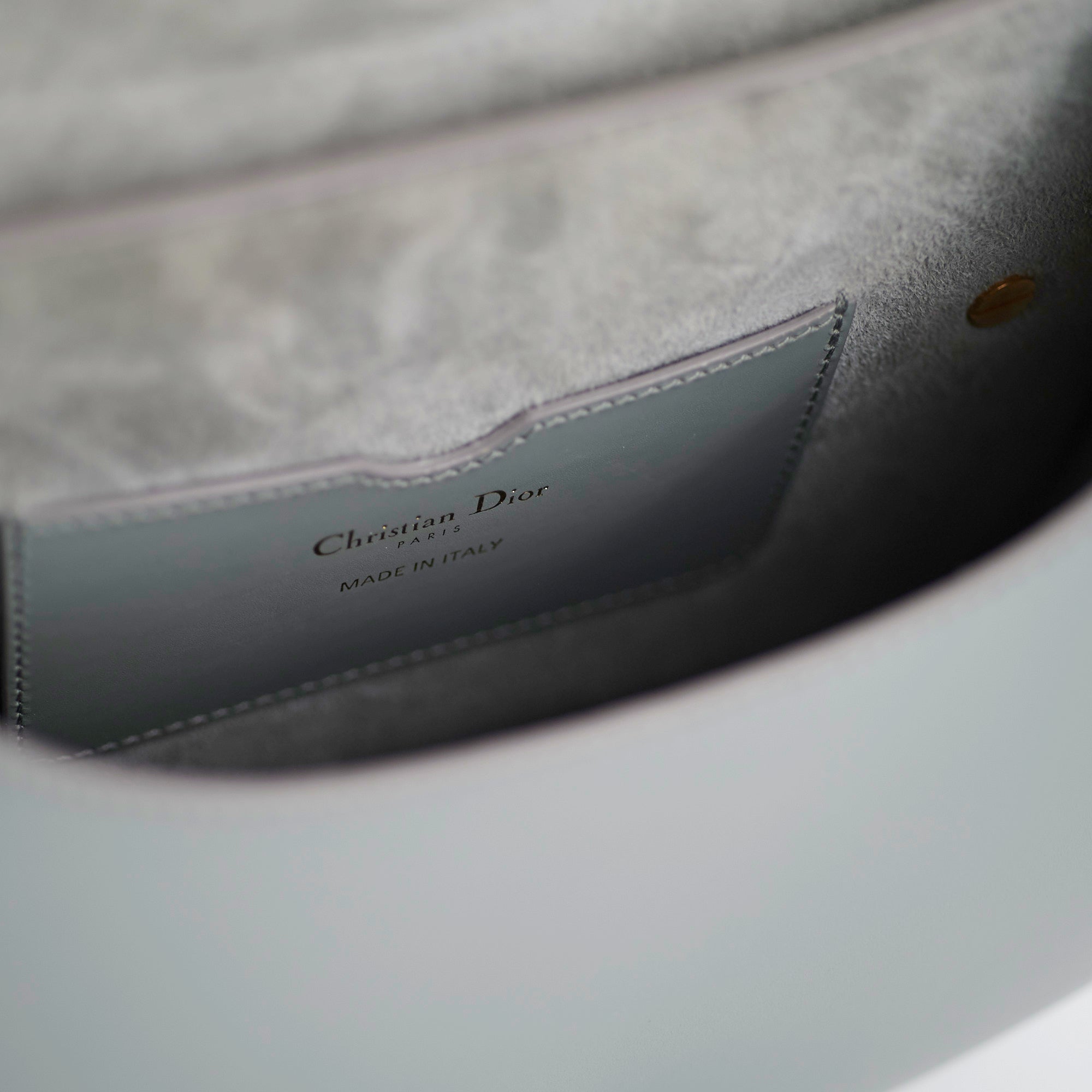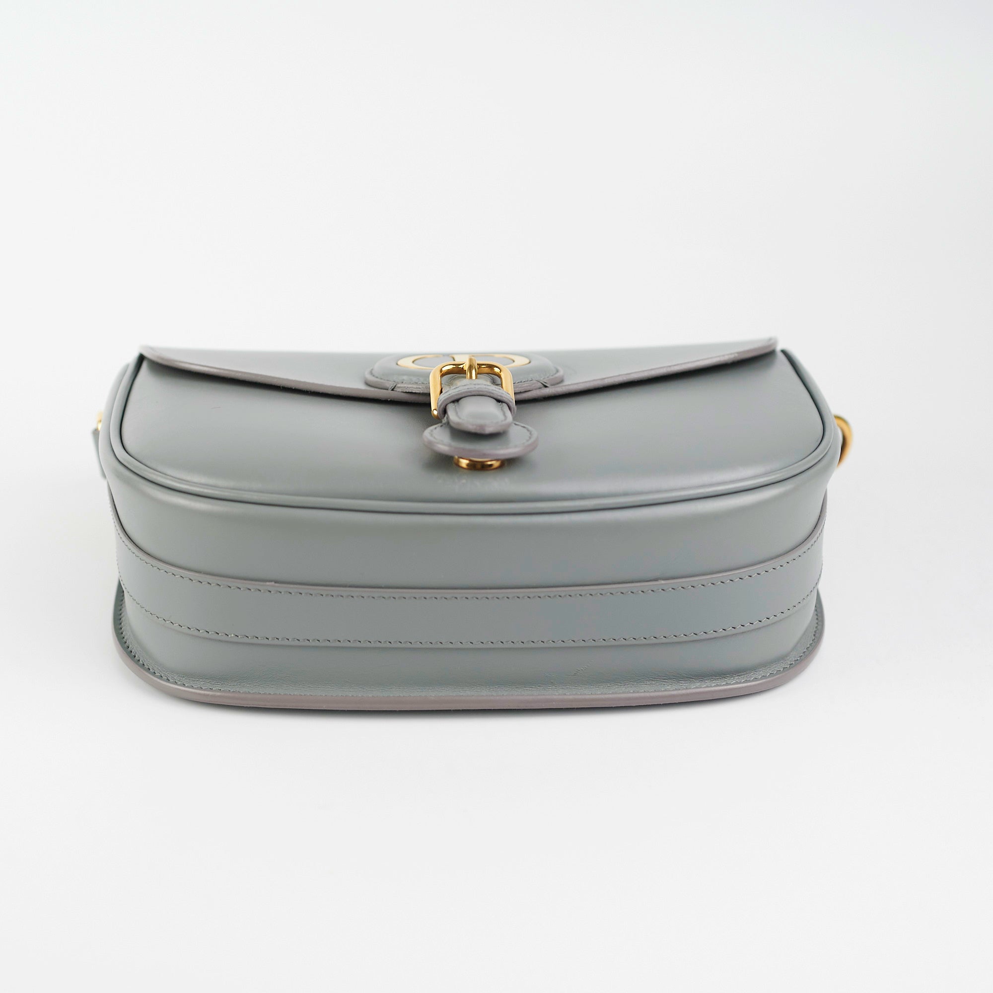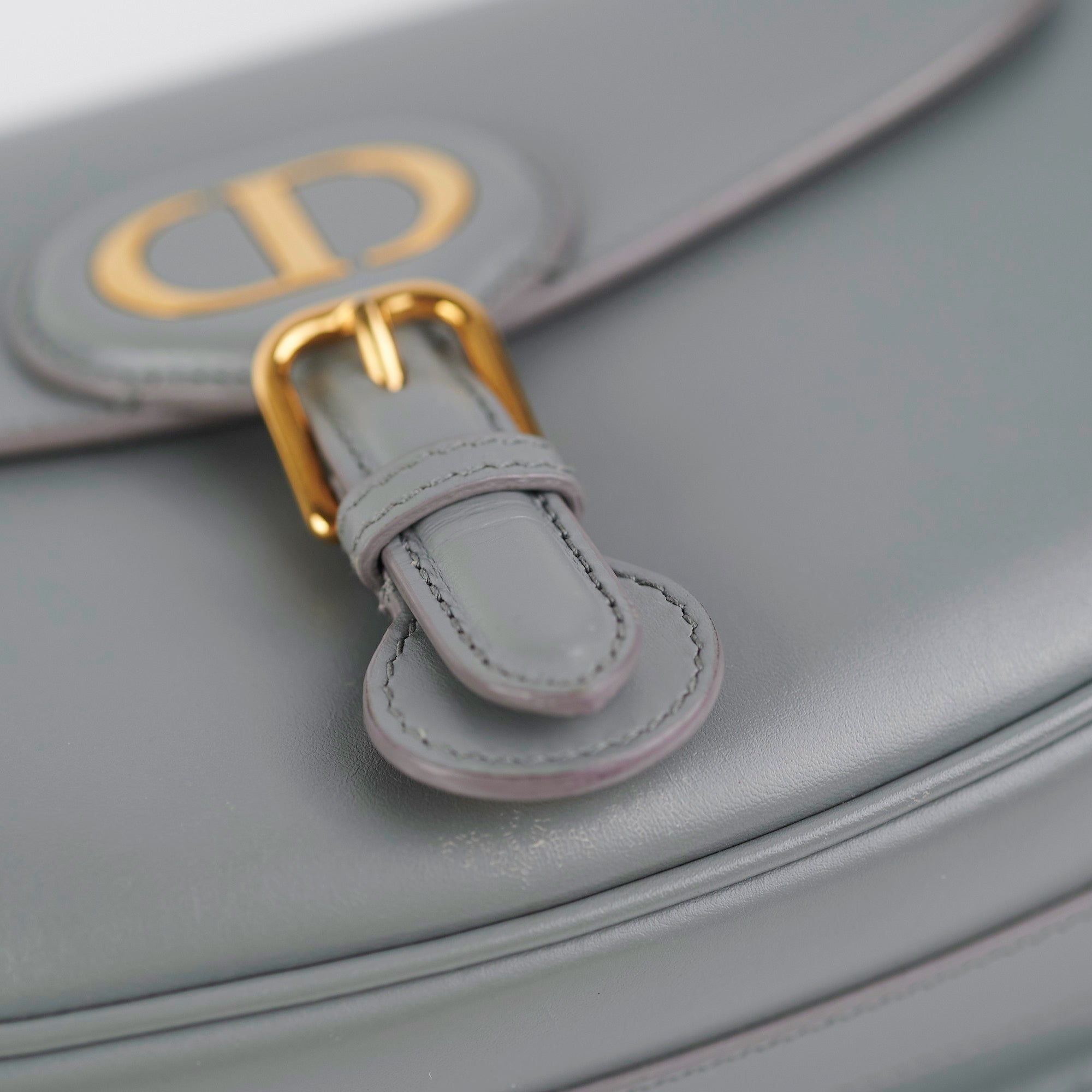 Light hairline scratches and tarnishing on hardware, nail marks throughout leather, light indent under opening closure
