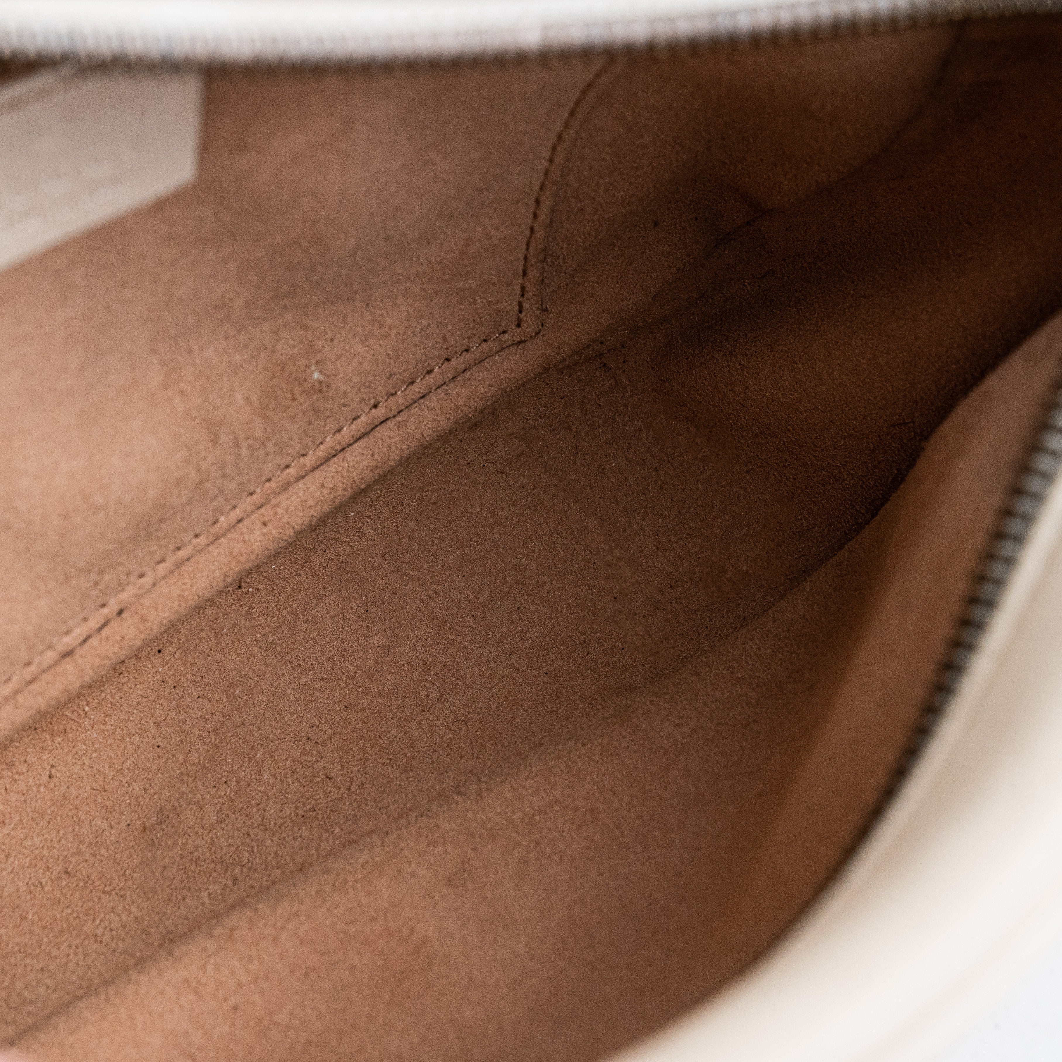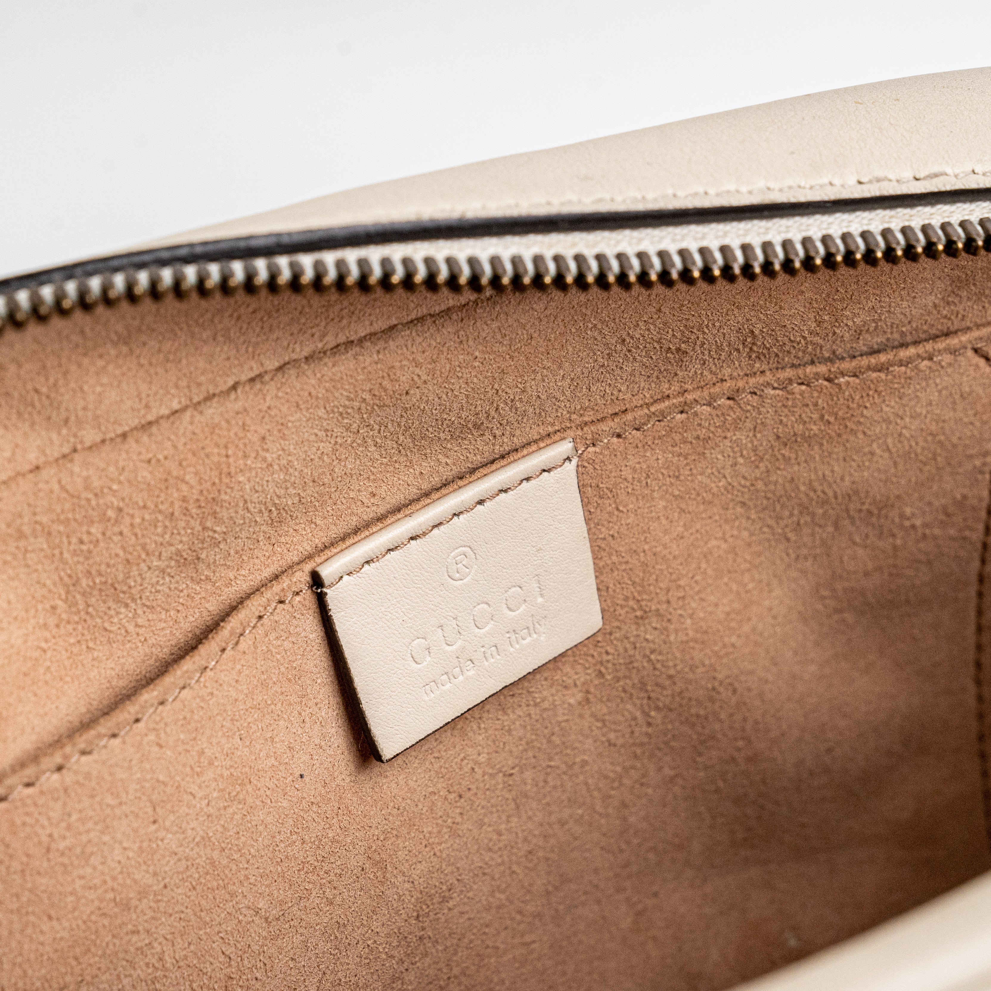 Light colour transfer throughout, light rubbing throughout leather, light hairline scratches and tarnishing on hardware, light mark on front, light nail mark near zipper