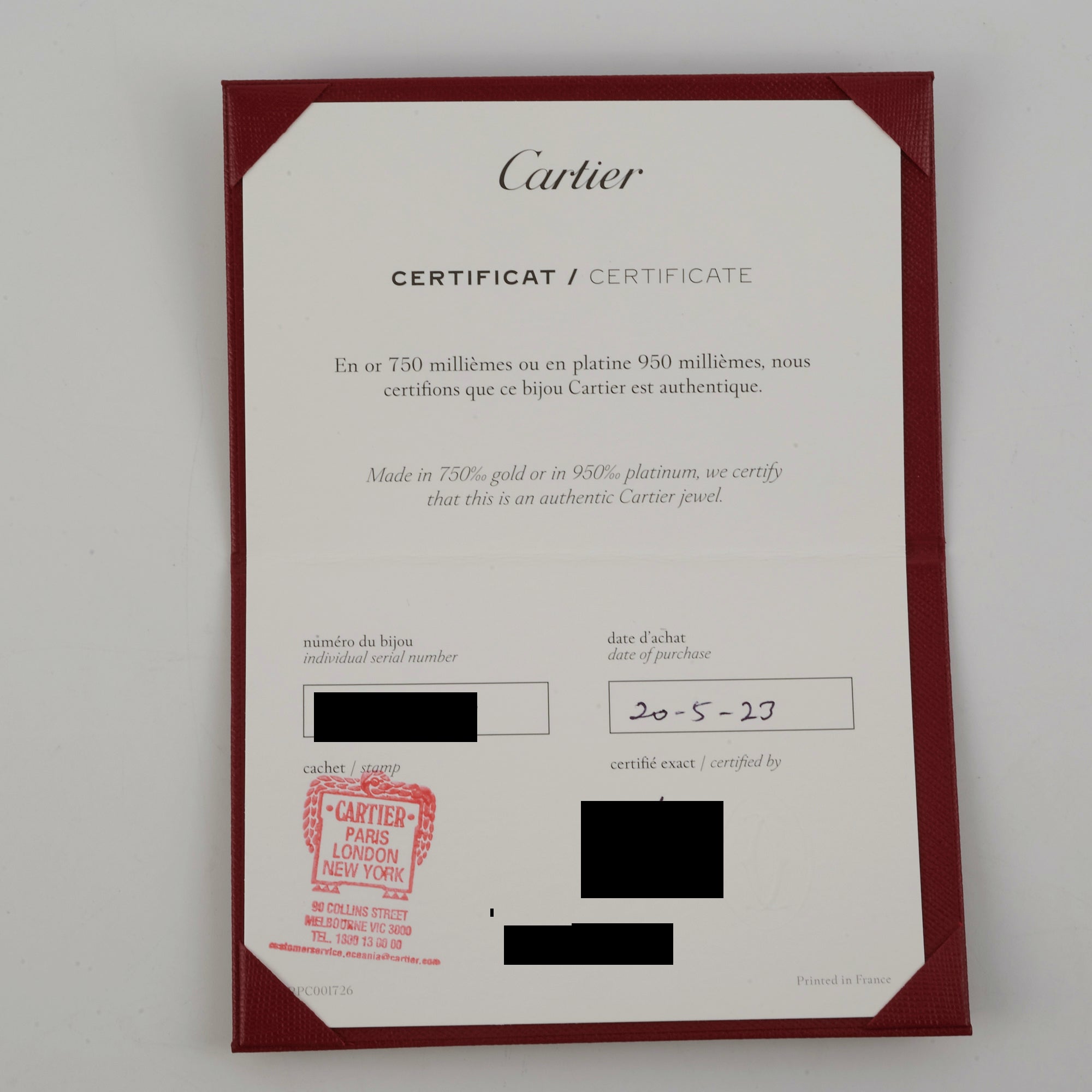 Certificate of Authenticity, Inner Box, Outer Box, receipt