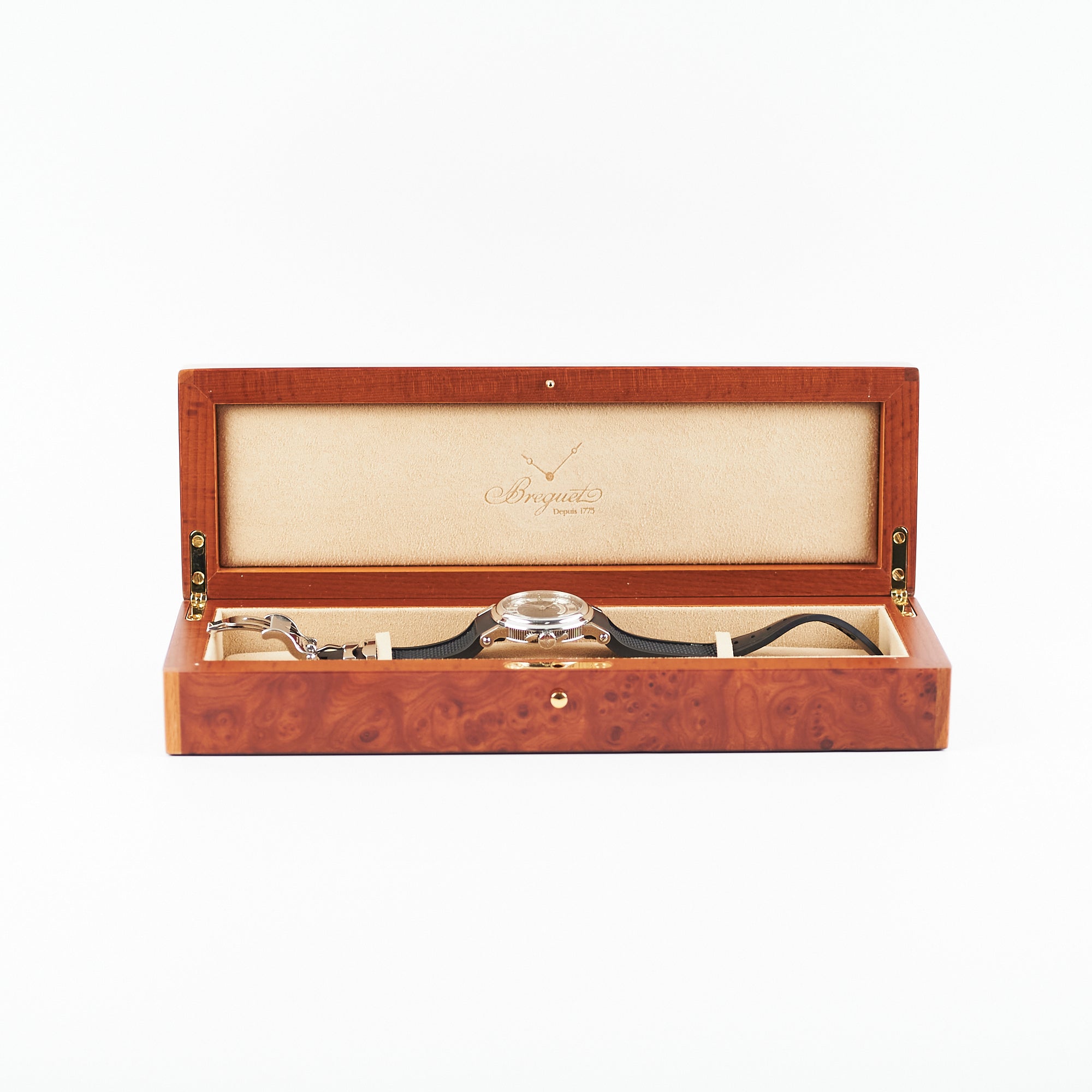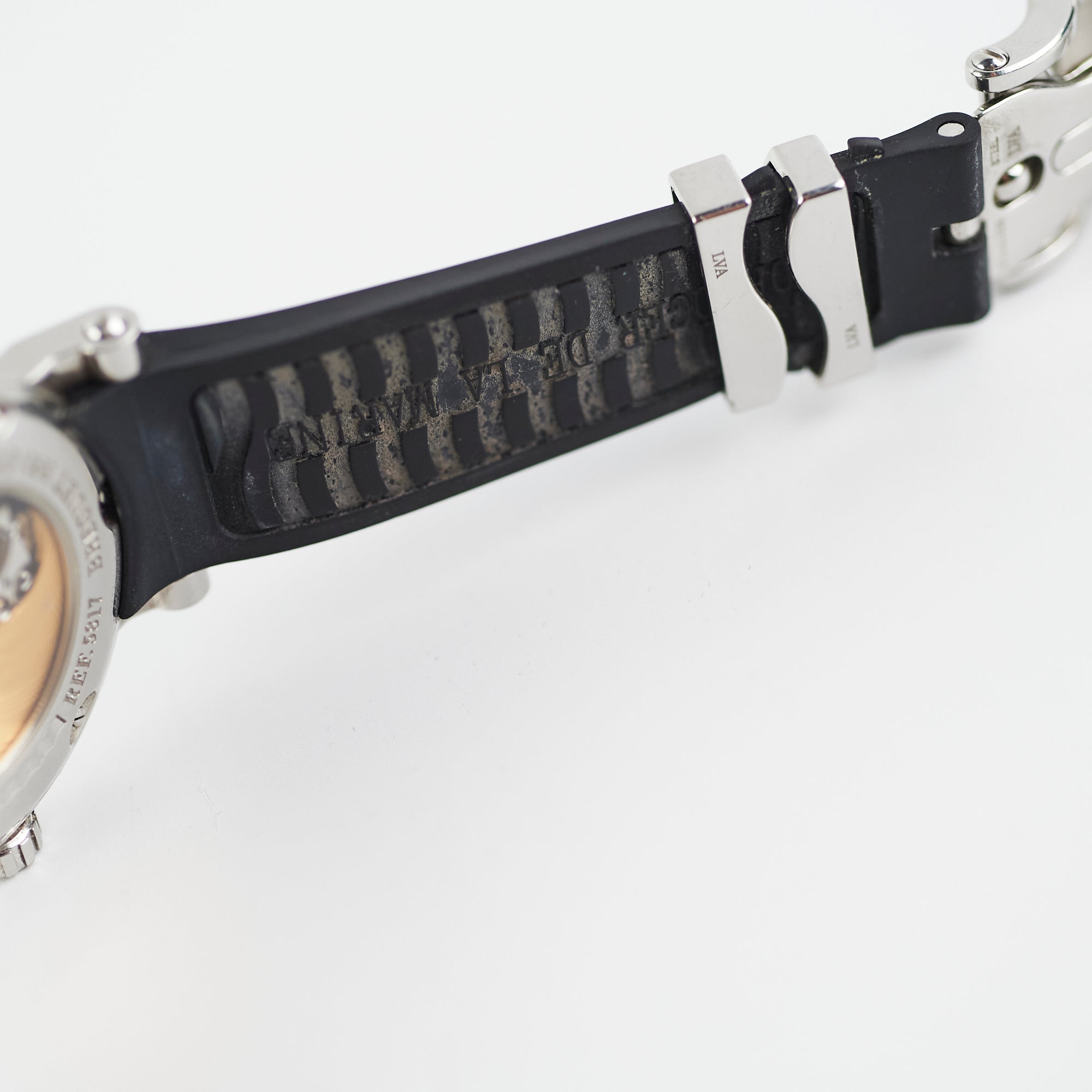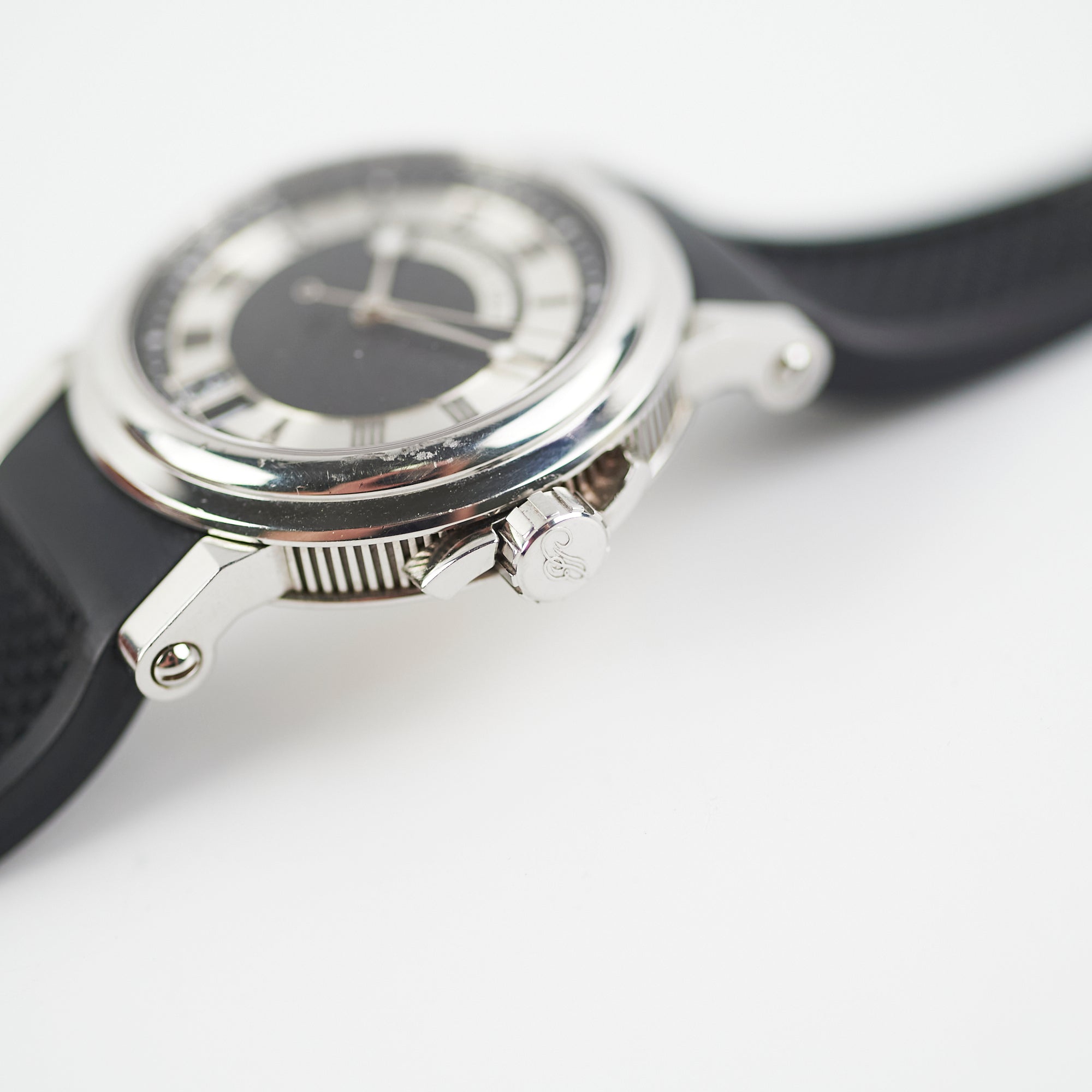 Light hairline scratches on hardware, minor indent on case, light marks on inner strap
