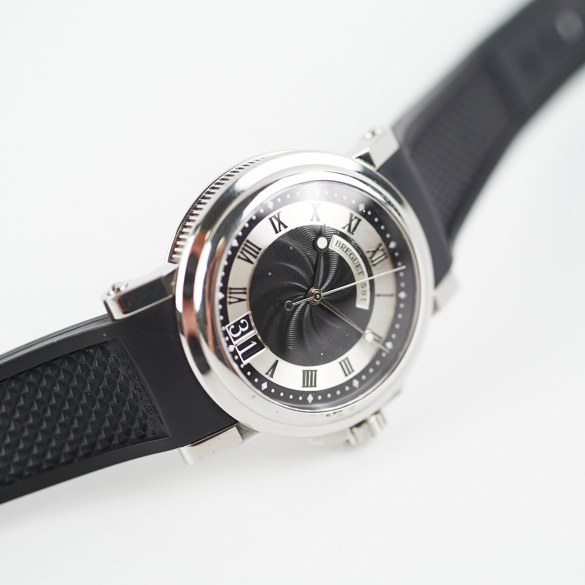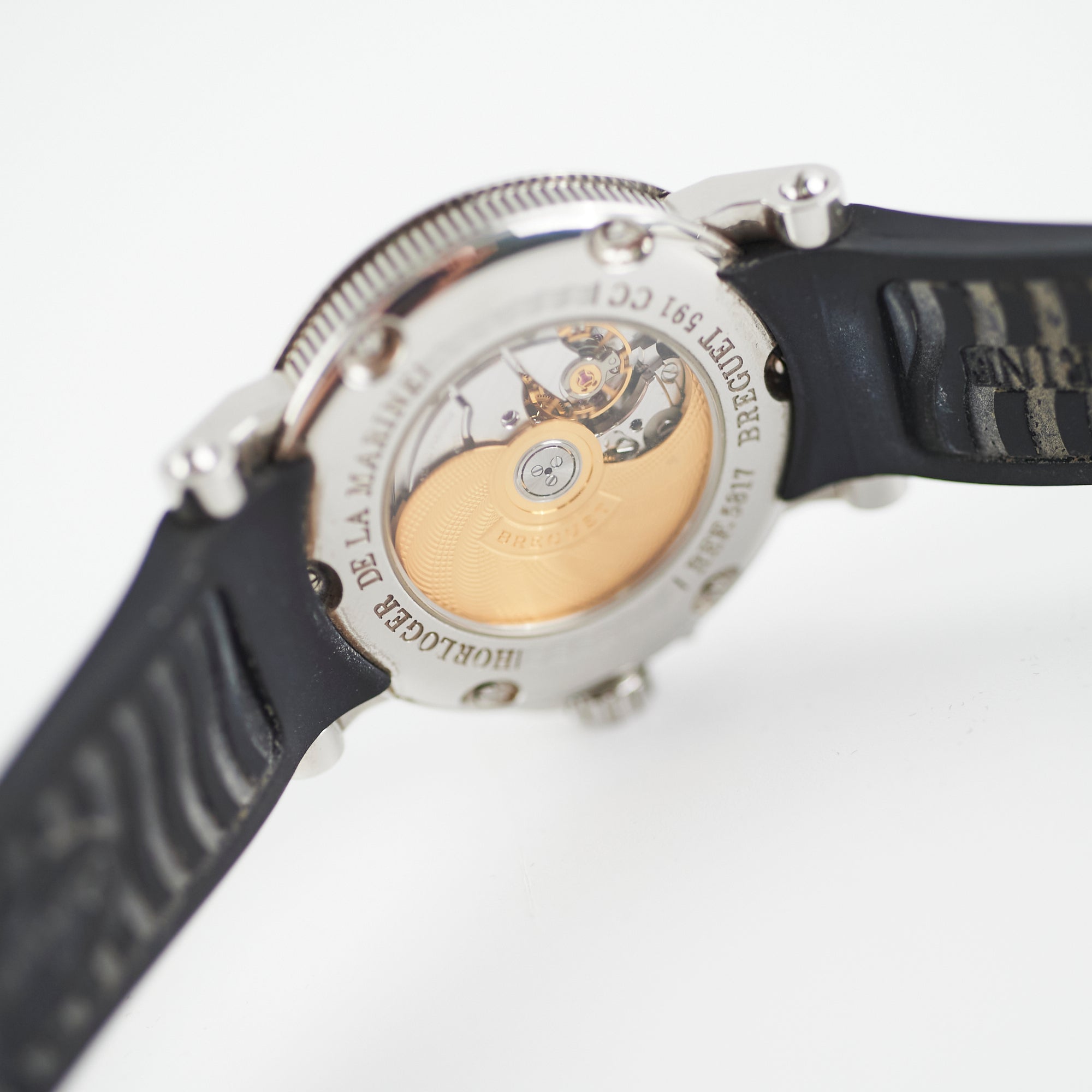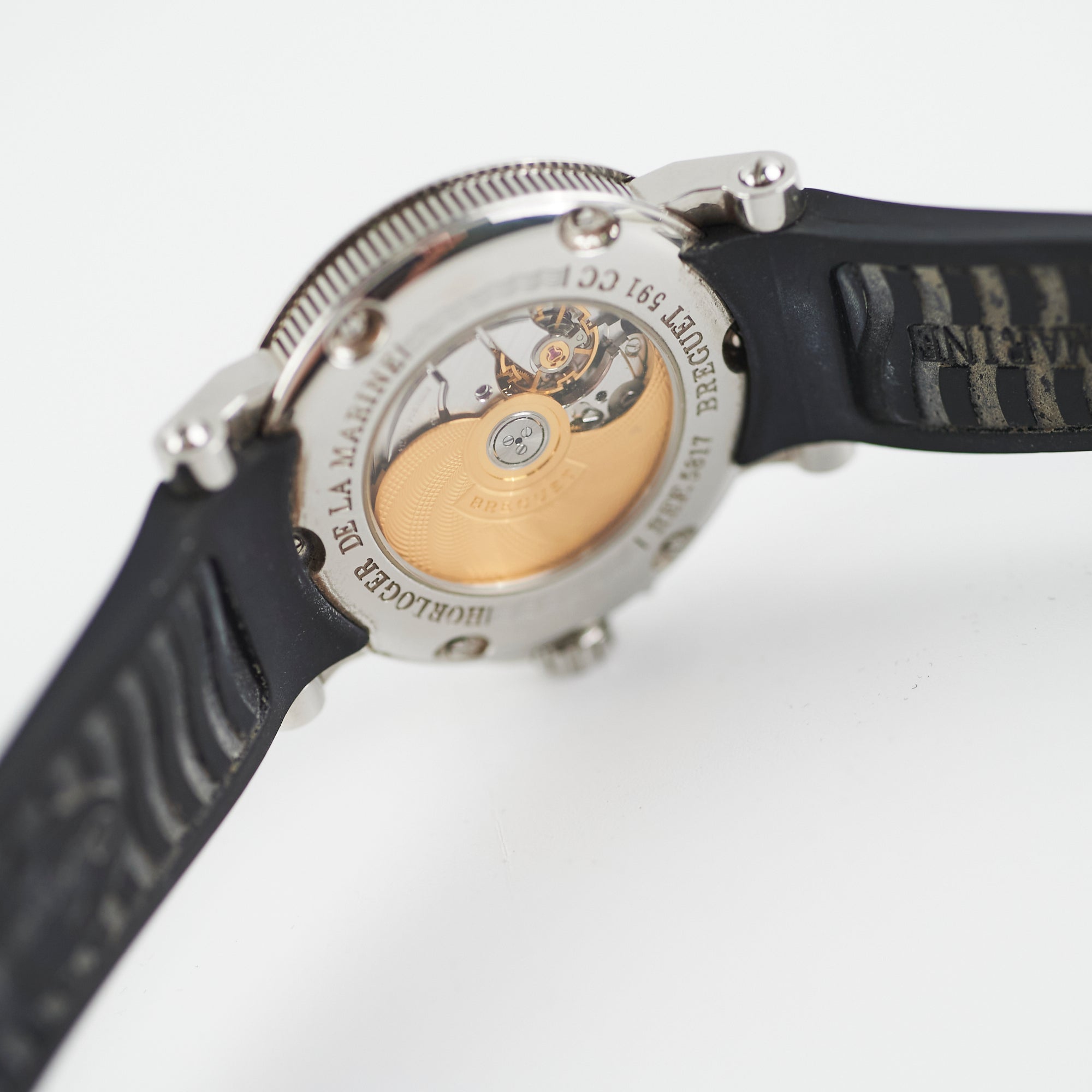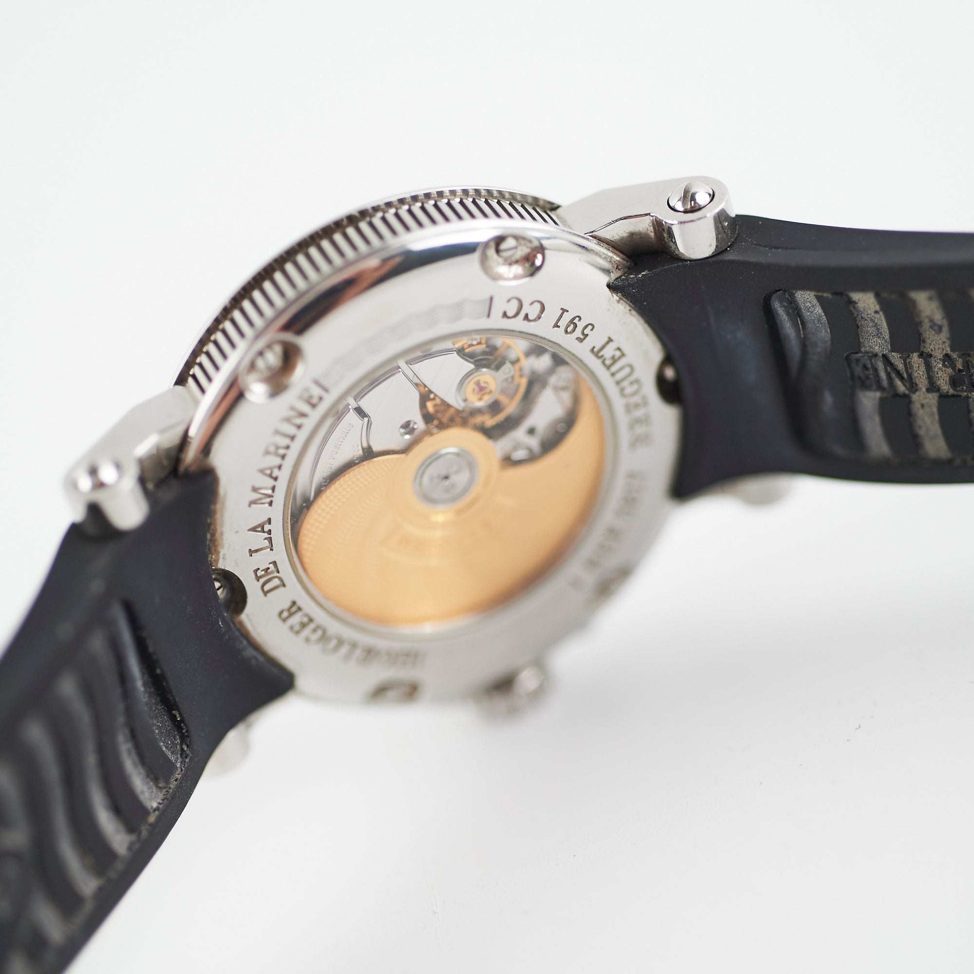 Light hairline scratches on hardware, minor indent on case, light marks on inner strap