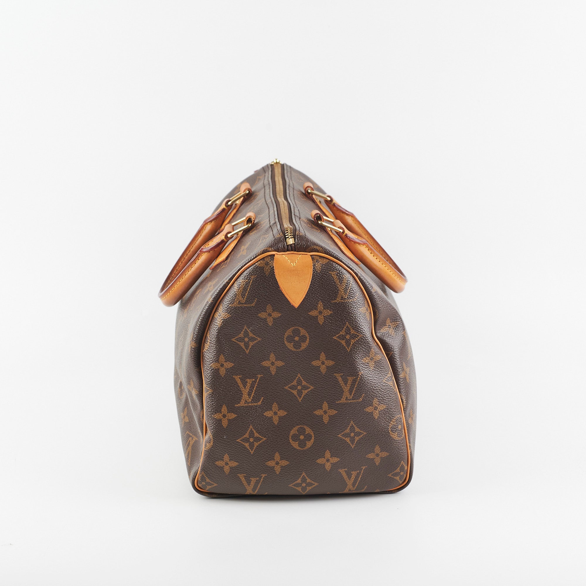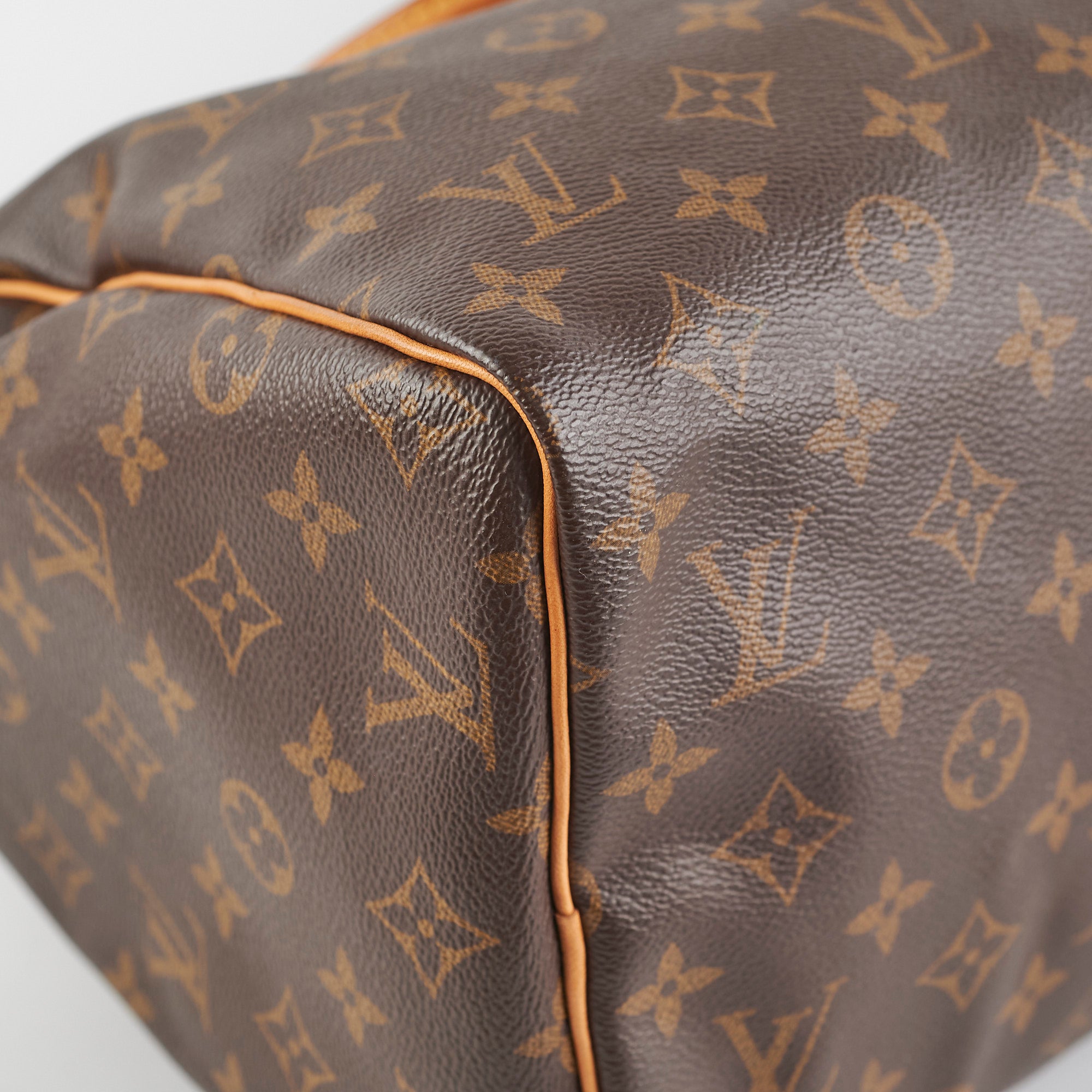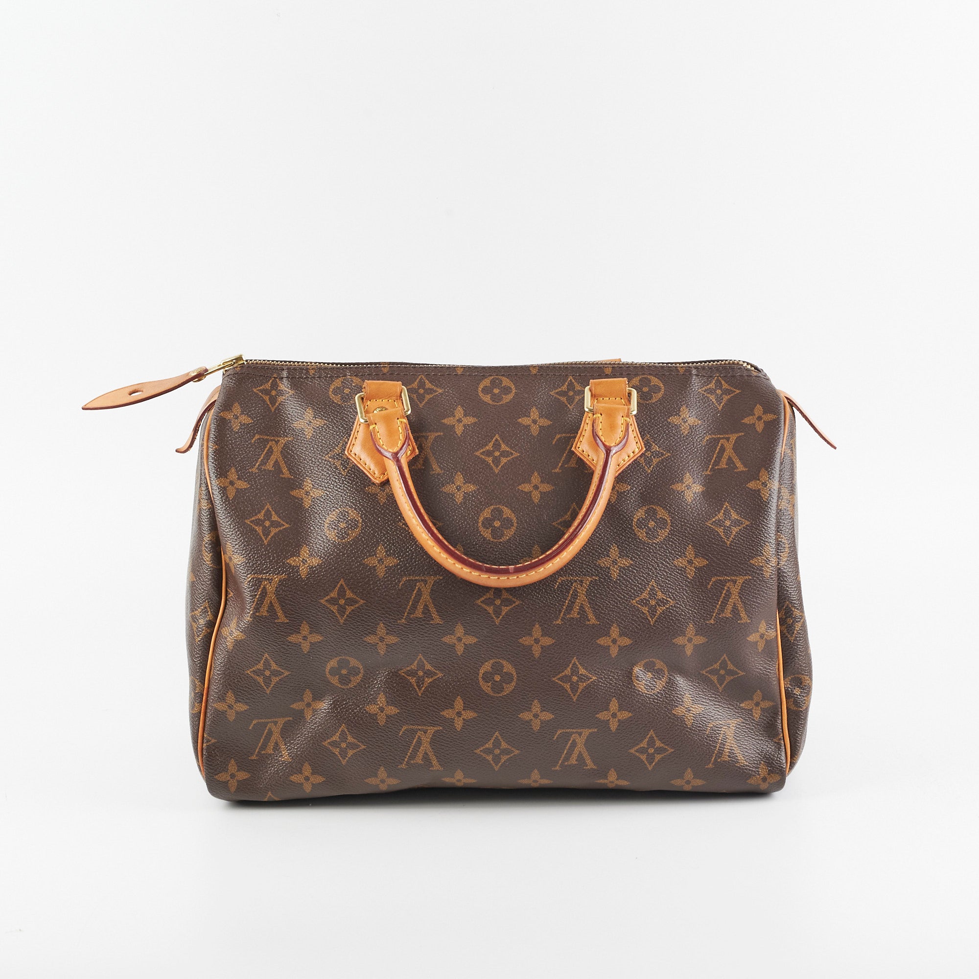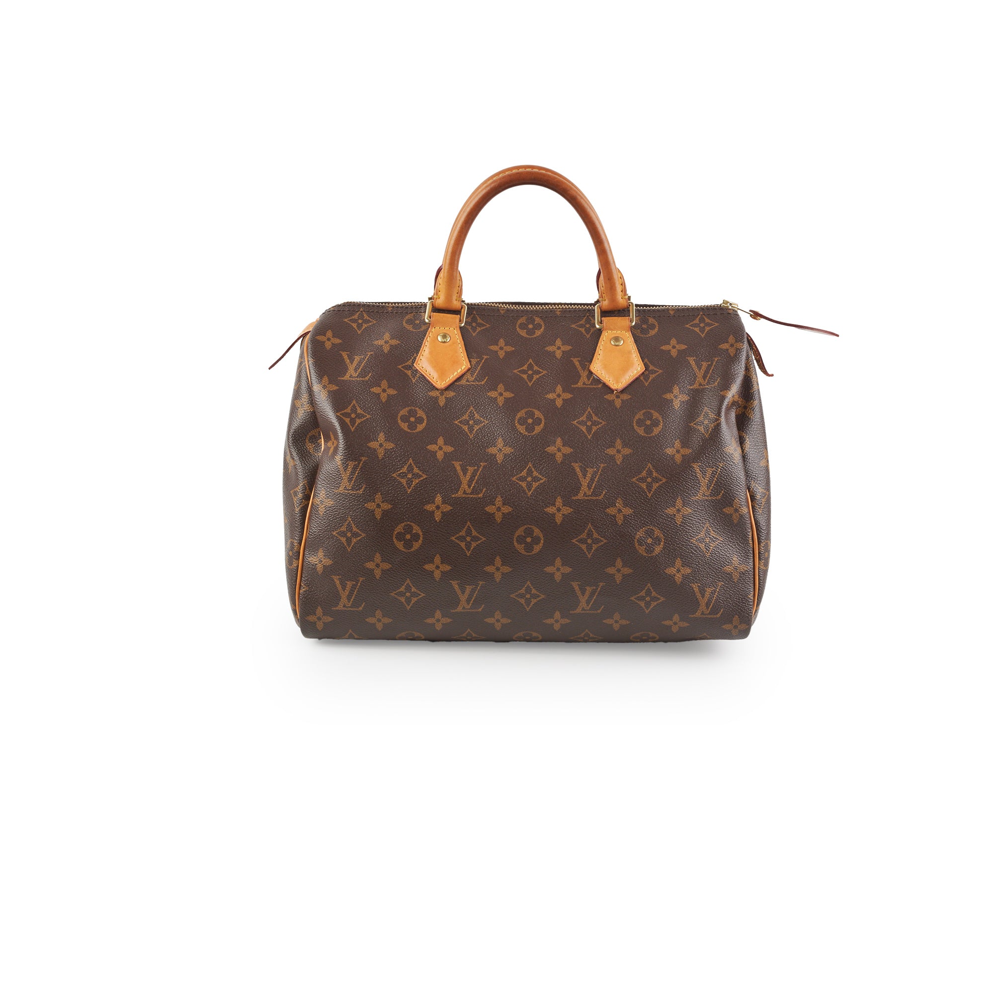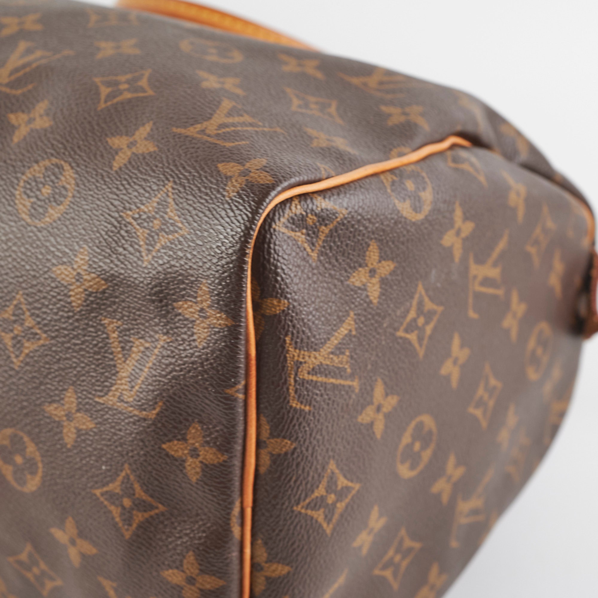 Signs of wear on vachetta (water marks and darkening), light hairline scratches and tarnishing on hardware, light rubbing on corners and edges, light stains on interior,