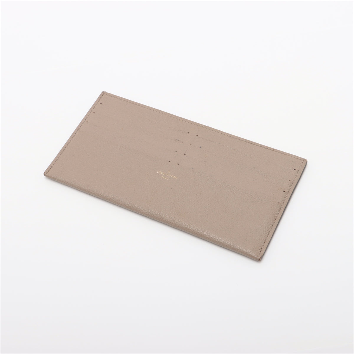 Light tarnishing and scratches on hardware, slightly softened leather, minor stain under flap, light creasing on base