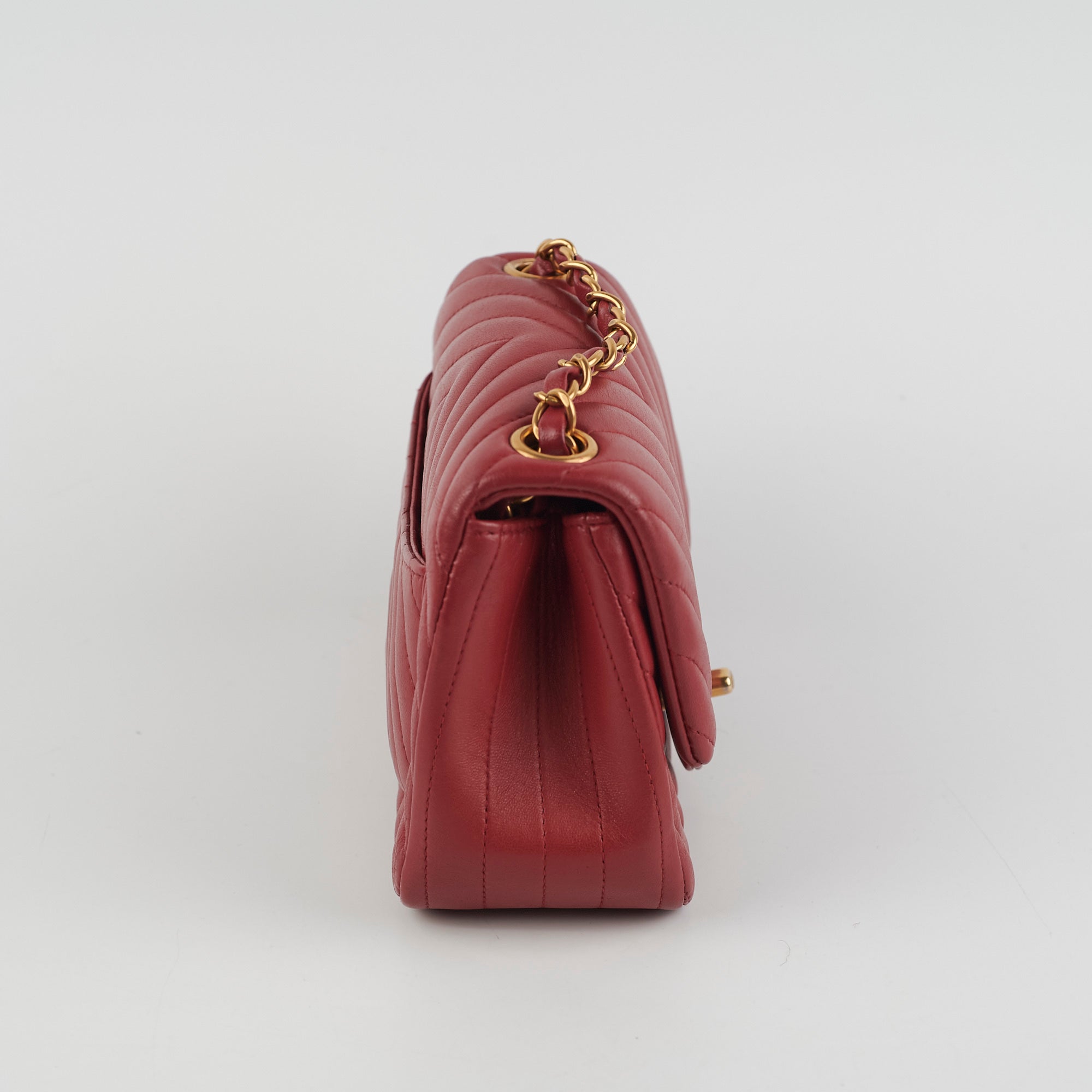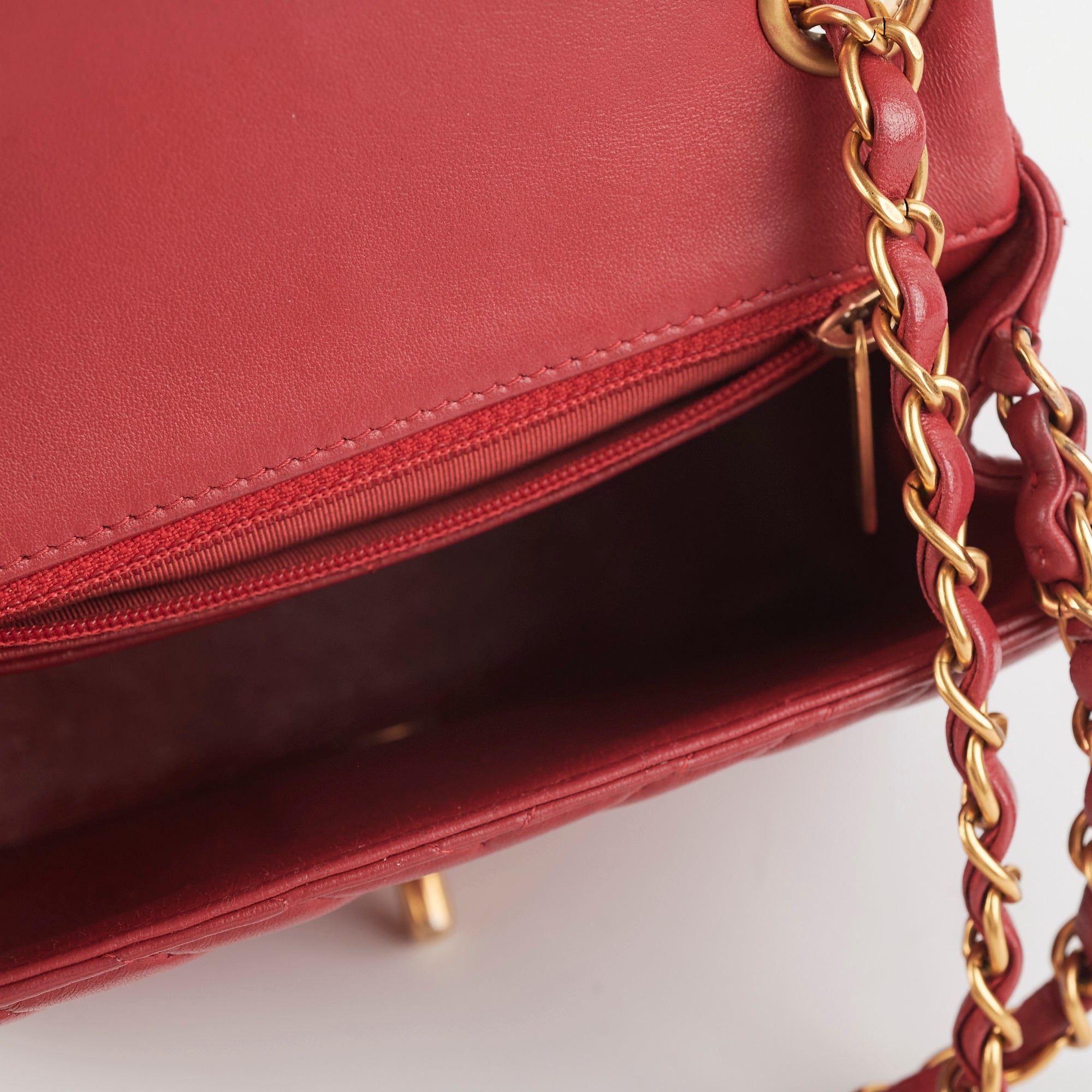 Light hairline scratches and tarnishing on hardware, minor creasing throughout leather, minor nail marks under flap