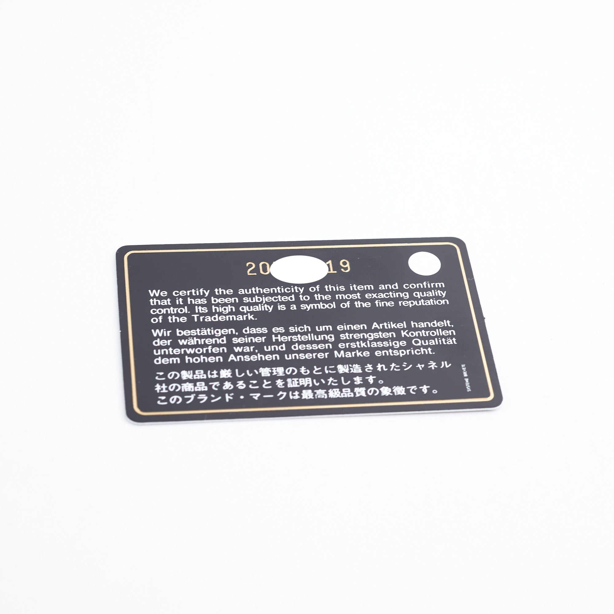 Authenticity Card, Dustbag