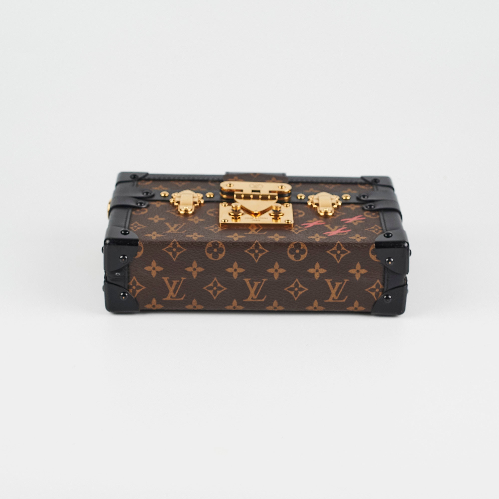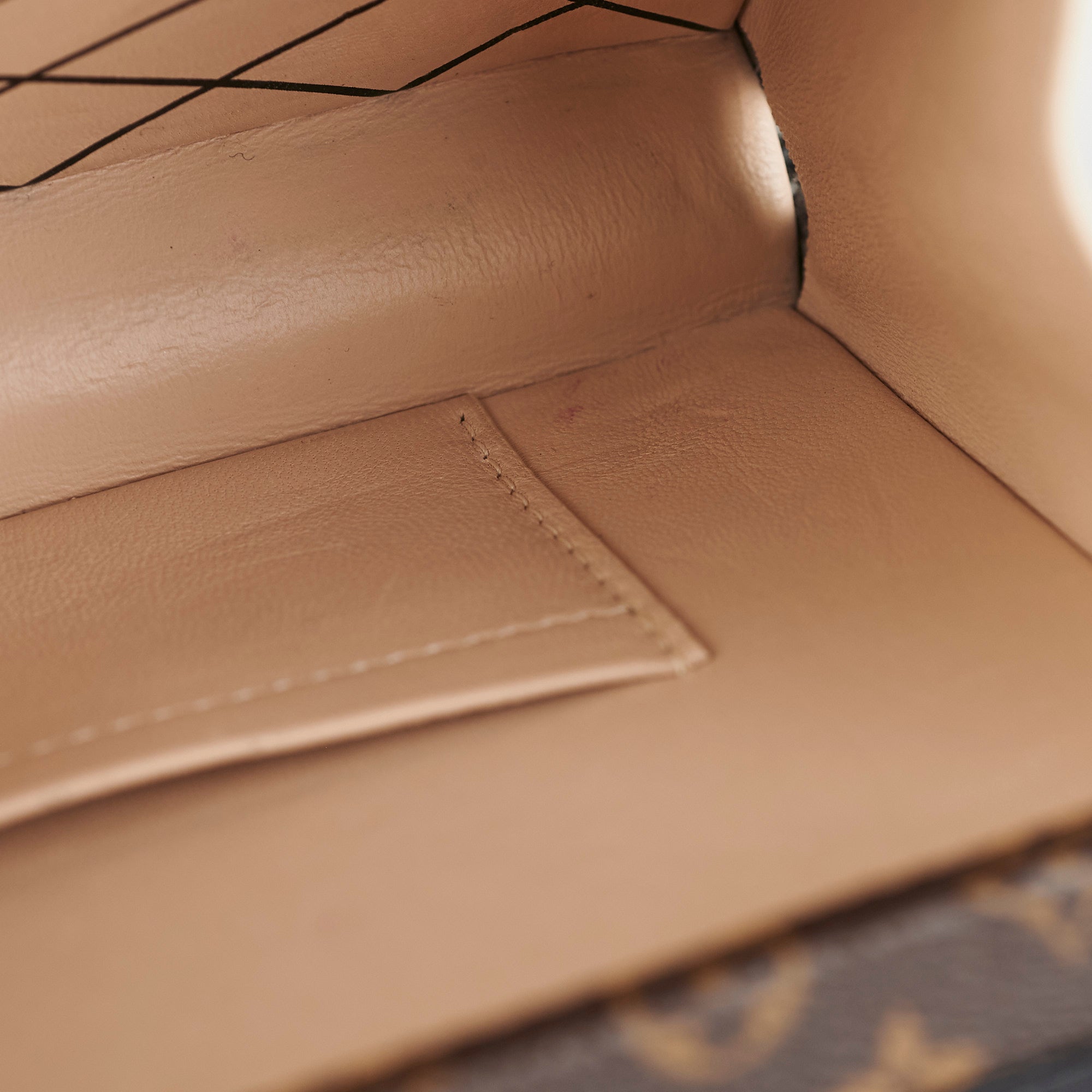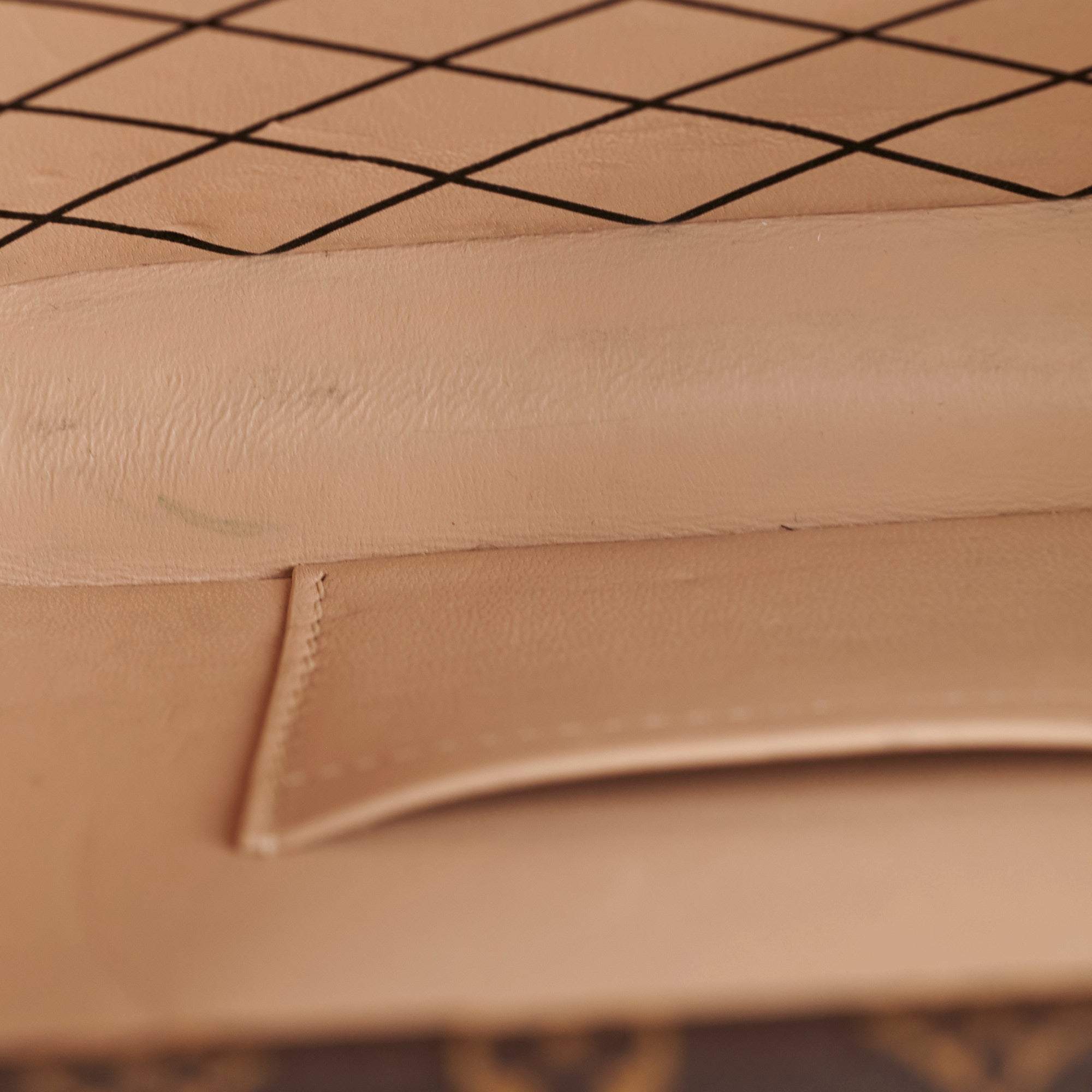 Light tarnishing and scratches on hardware, light rubbing and scratches on corners, light stains and nail marks on interior