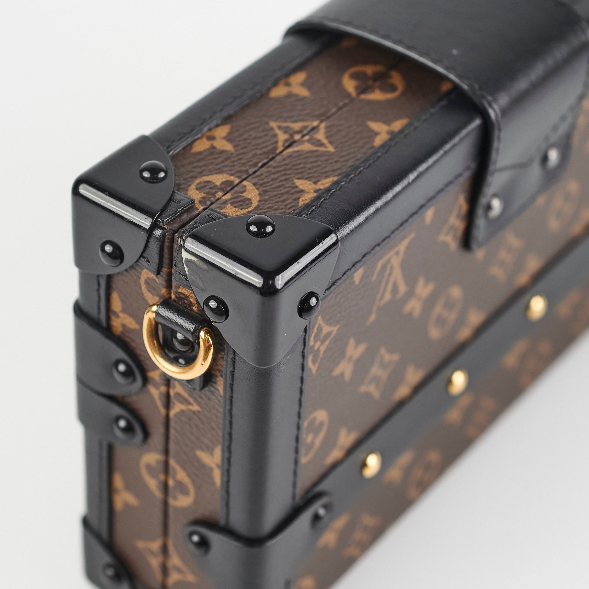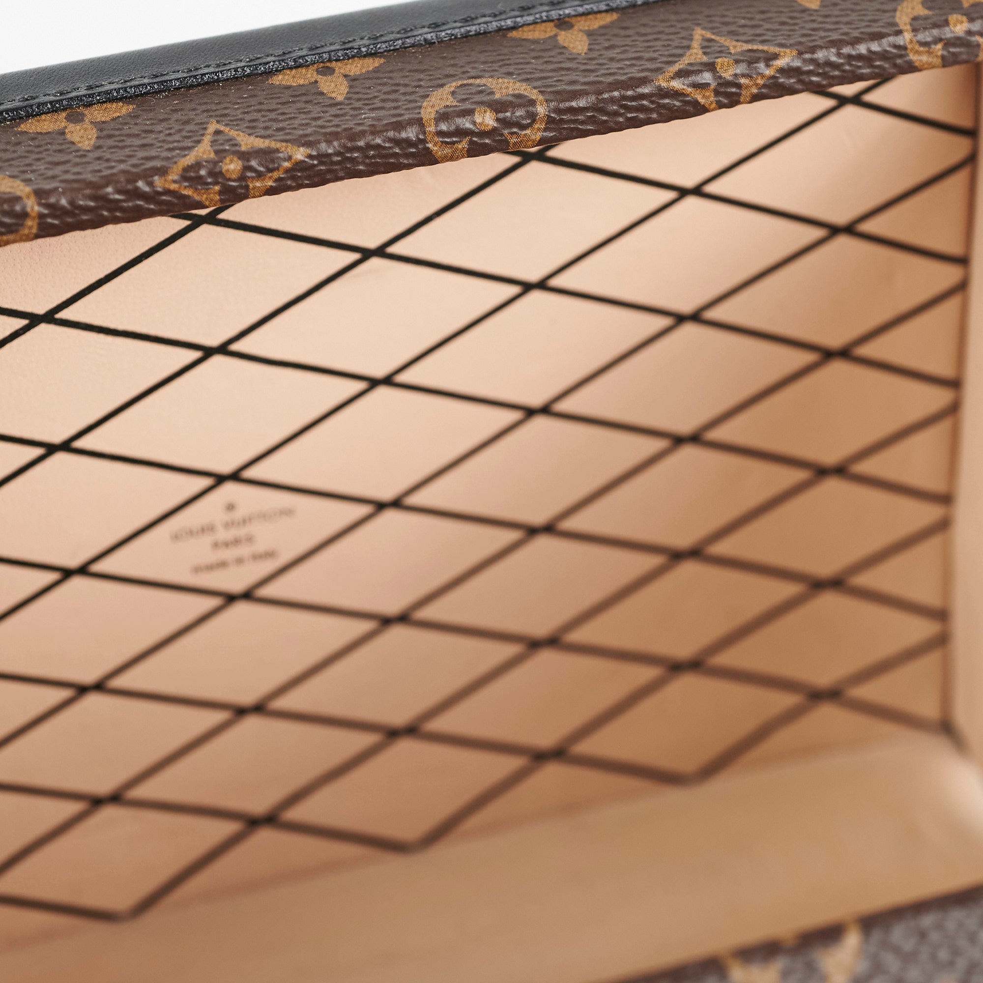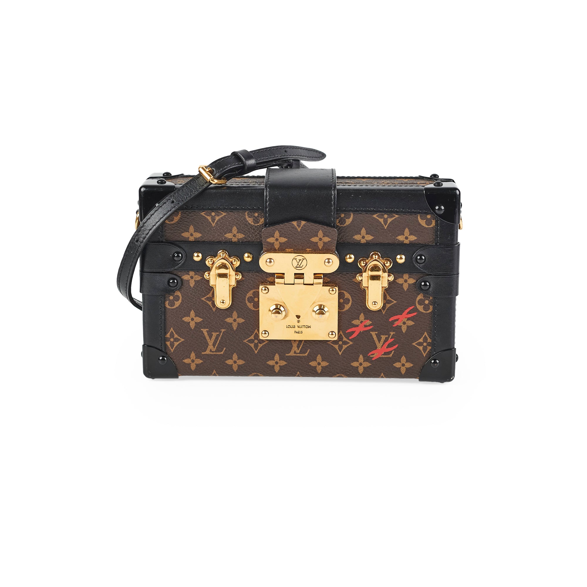 Light tarnishing and scratches on hardware, light rubbing and scratches on corners, light stains and nail marks on interior