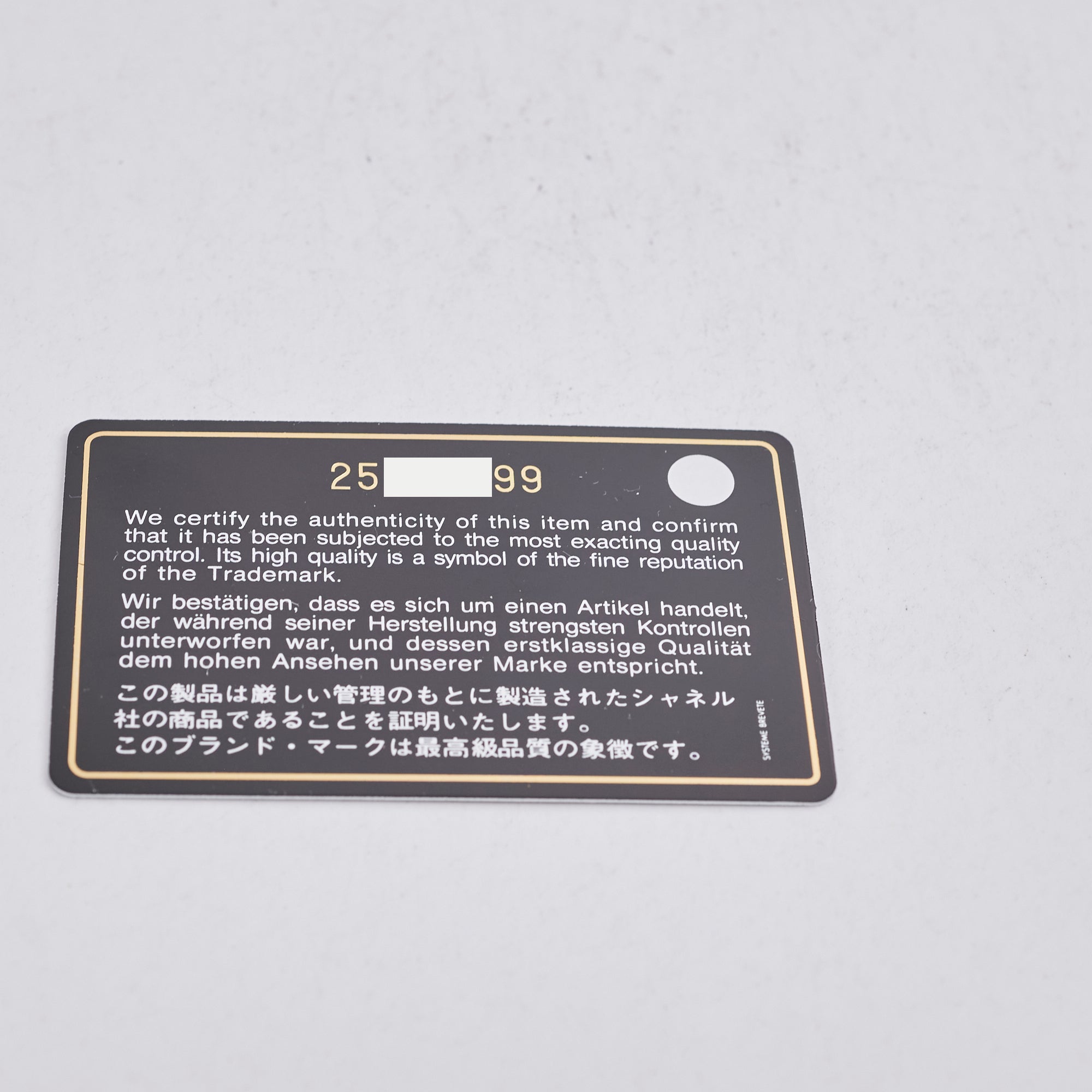 Authenticity Card, Dustbag, Receipt
