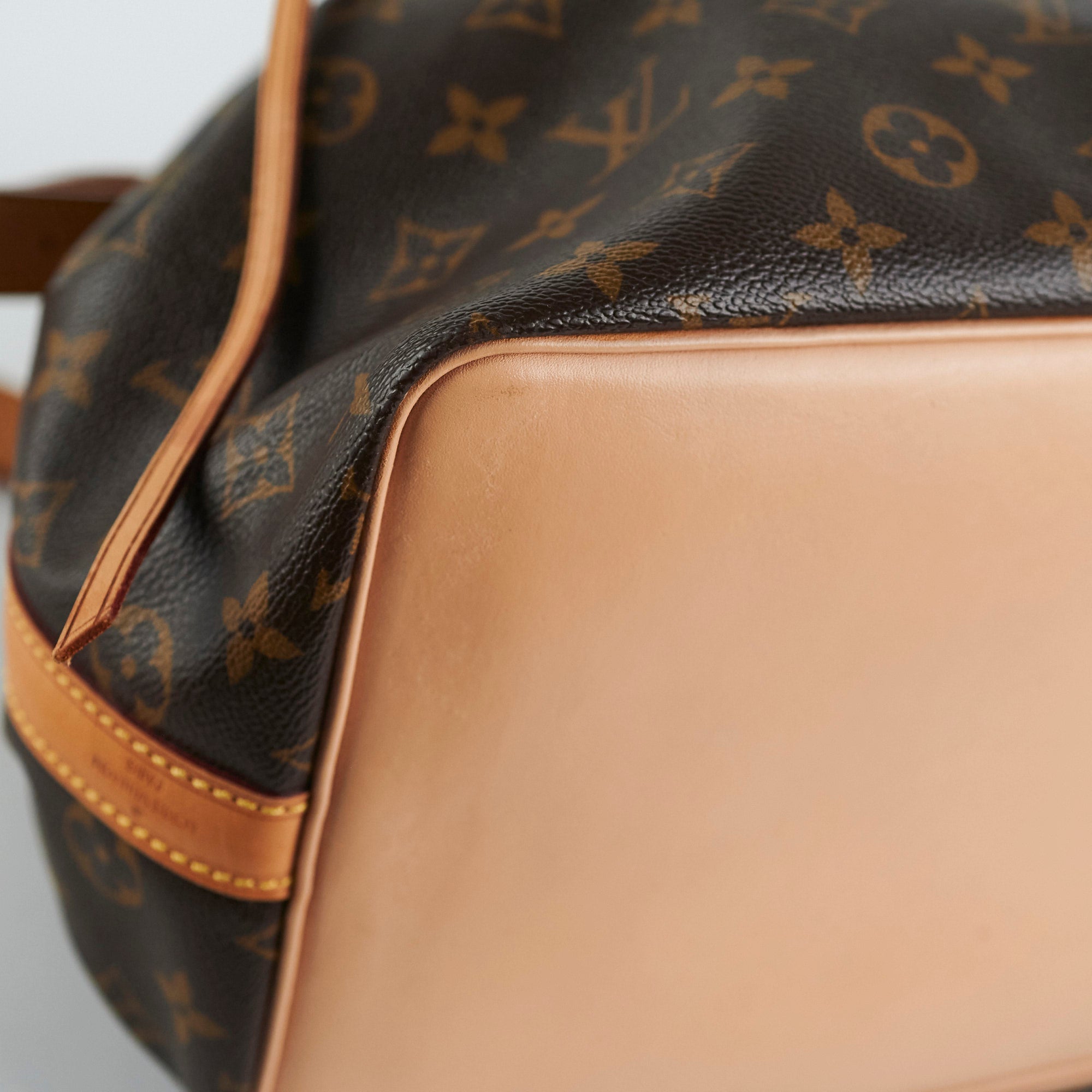 Light sign of wear on vachetta (marks, darkening, creasing, watermarks), light stain on interior, has 'G S' inital hotstamp on side