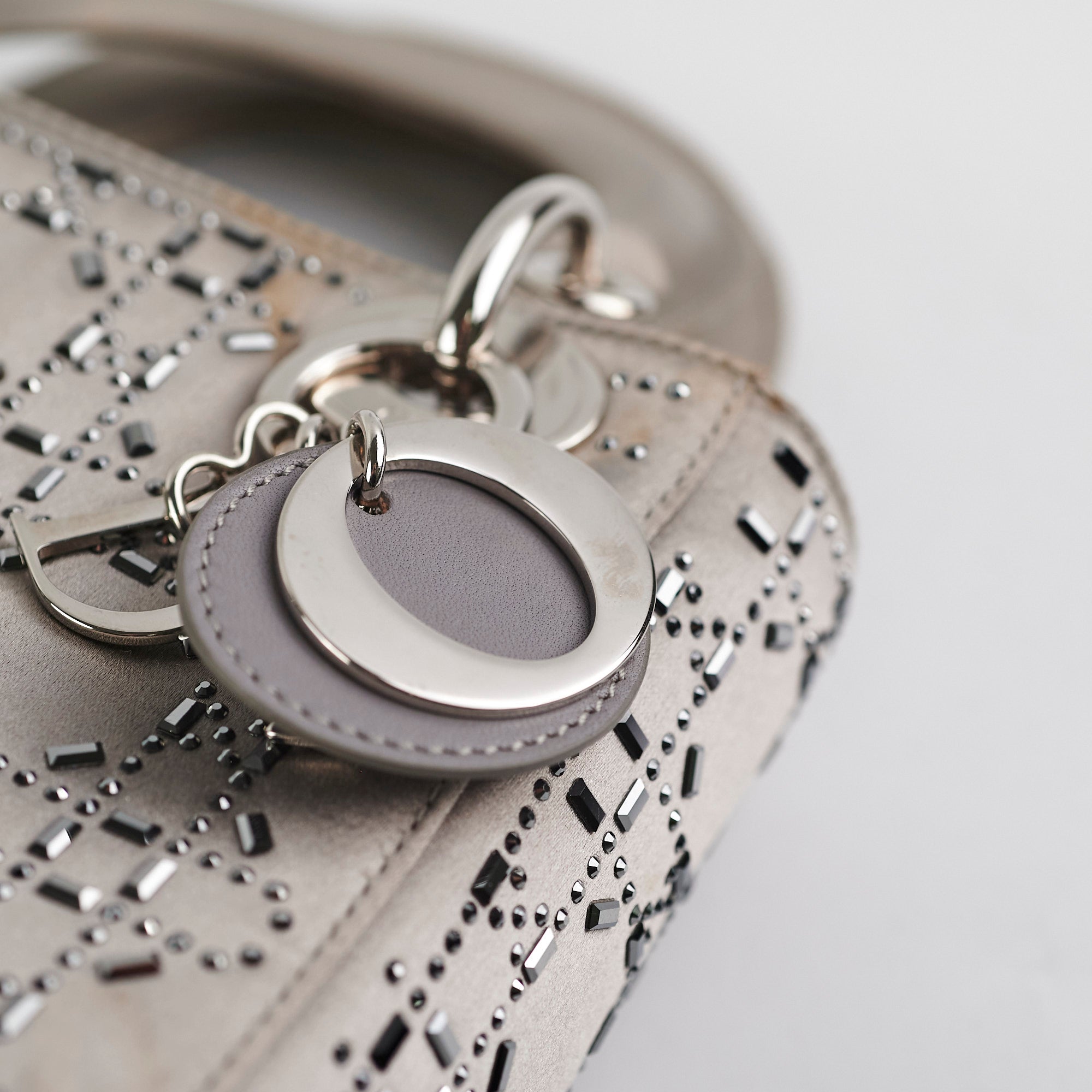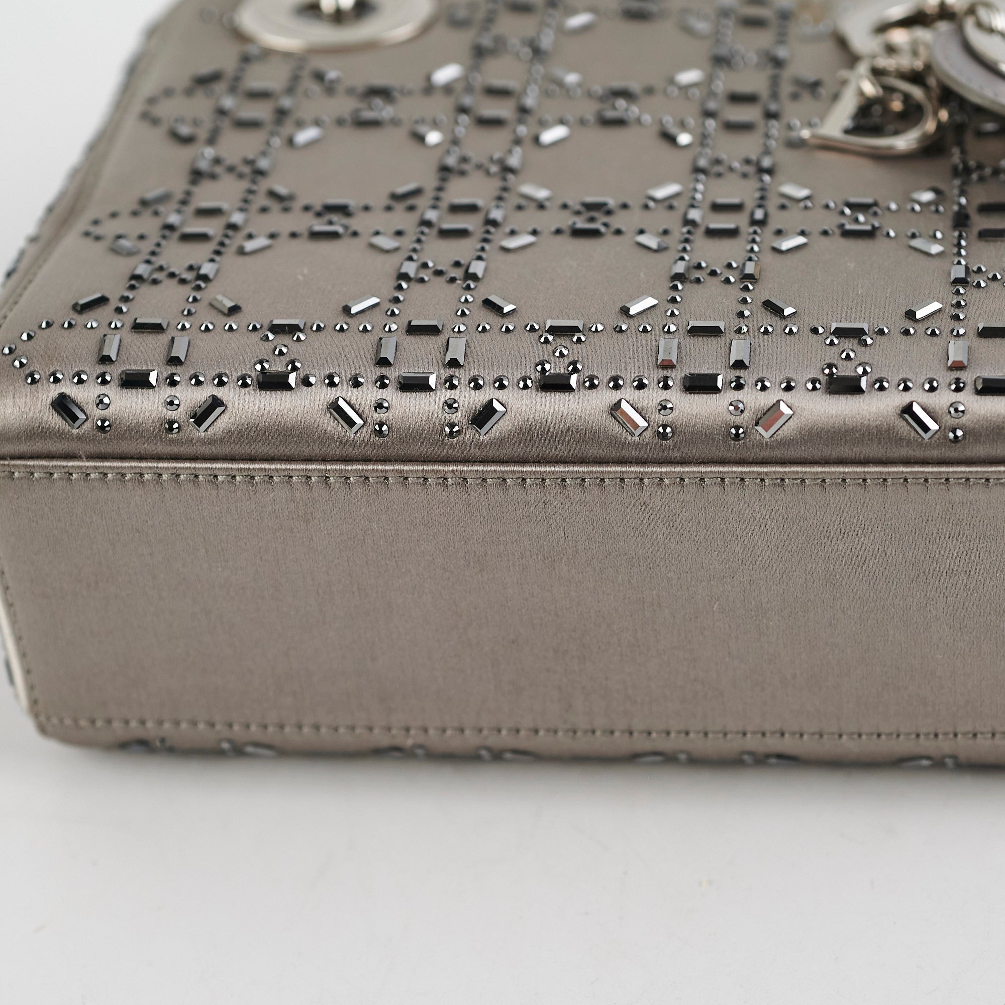 Light discolouration on front, handle and edges, light hairline scratches on hardware, minor indent on base and on front, crystals all still intact