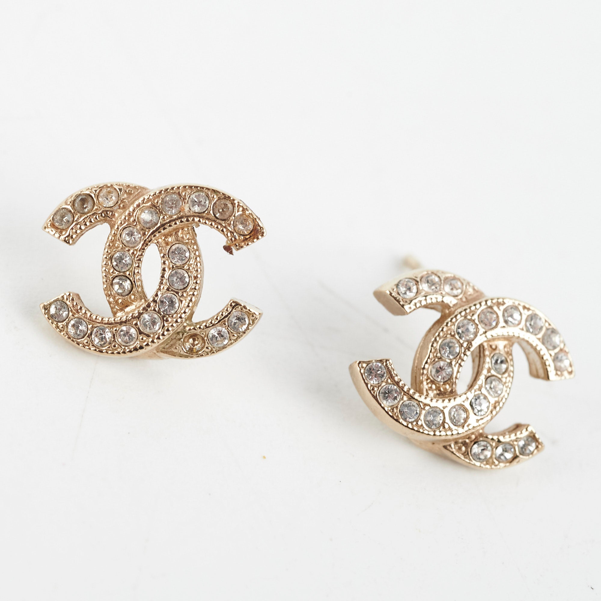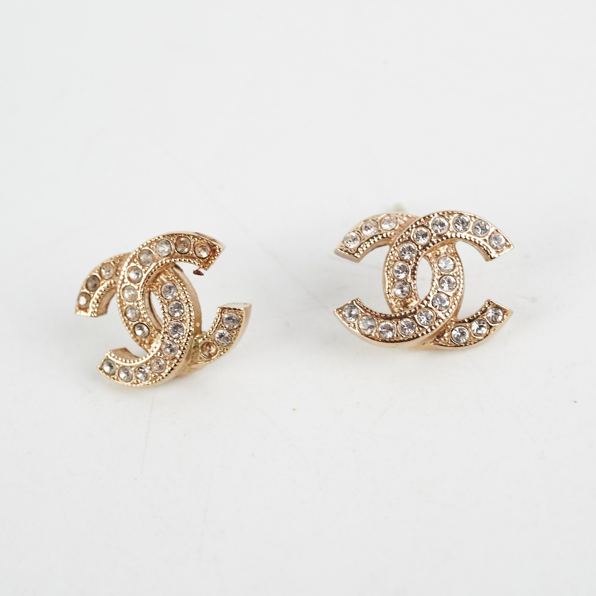 Missing rhinestone, missing backing, light tarnishing on hardware