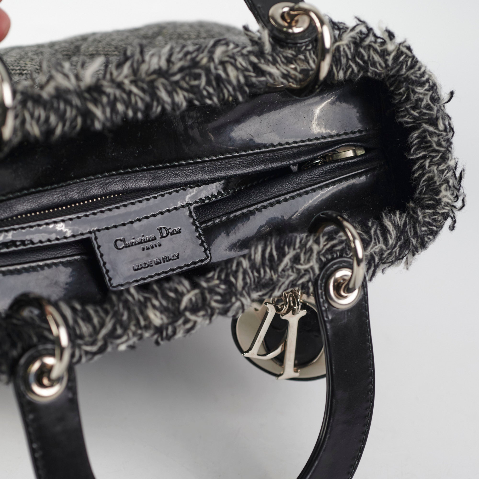 Nail marks at the bottom, signs of wear on the zipper, great overall condition, structure still in tact