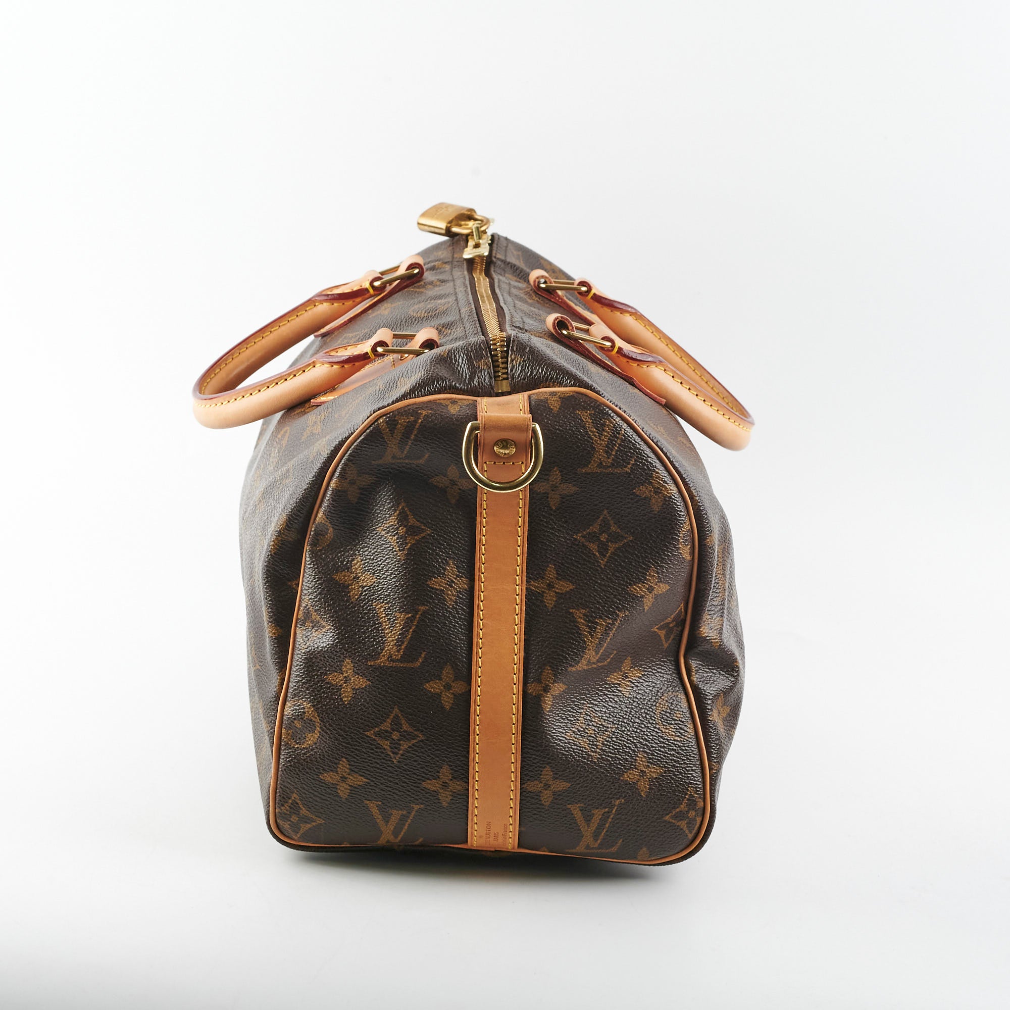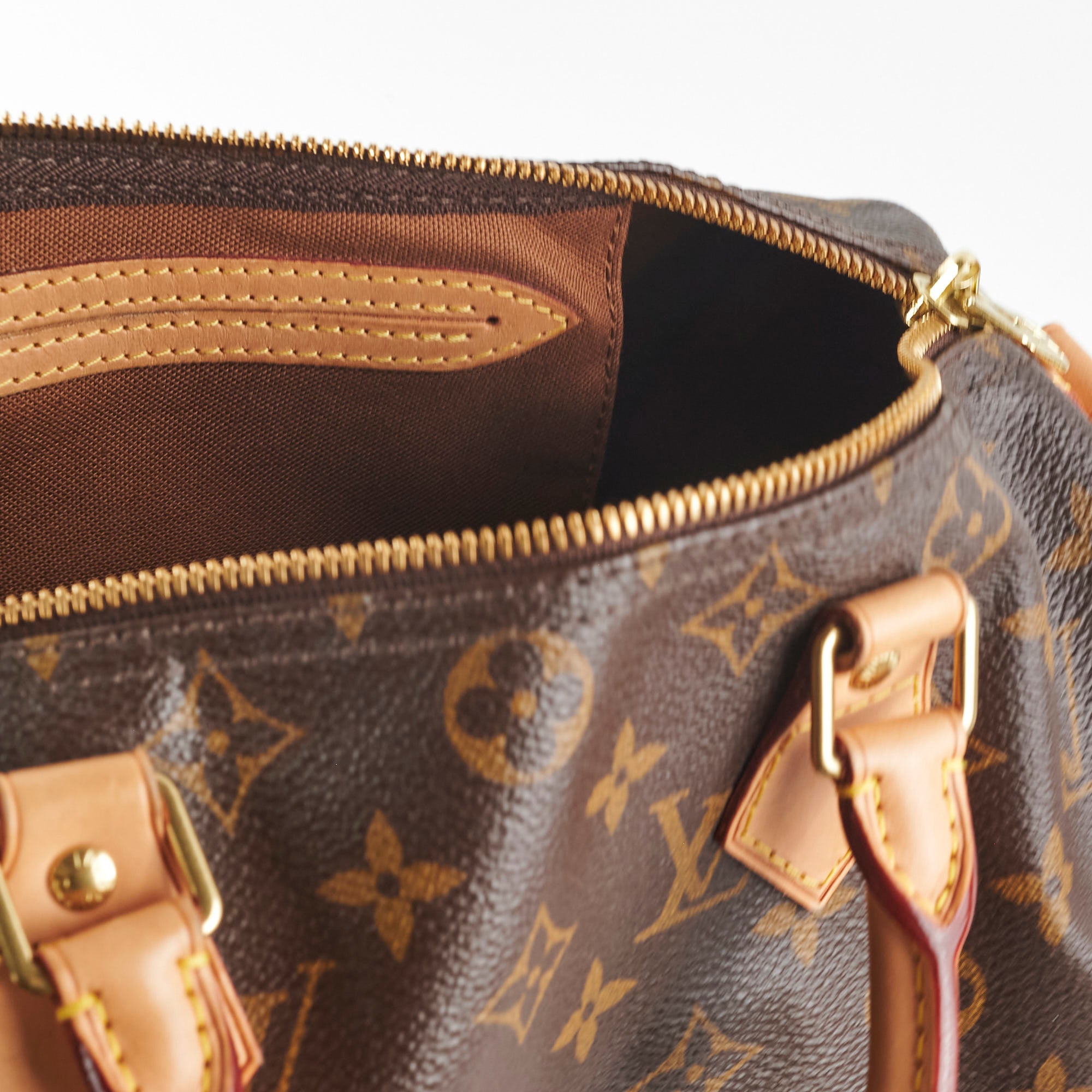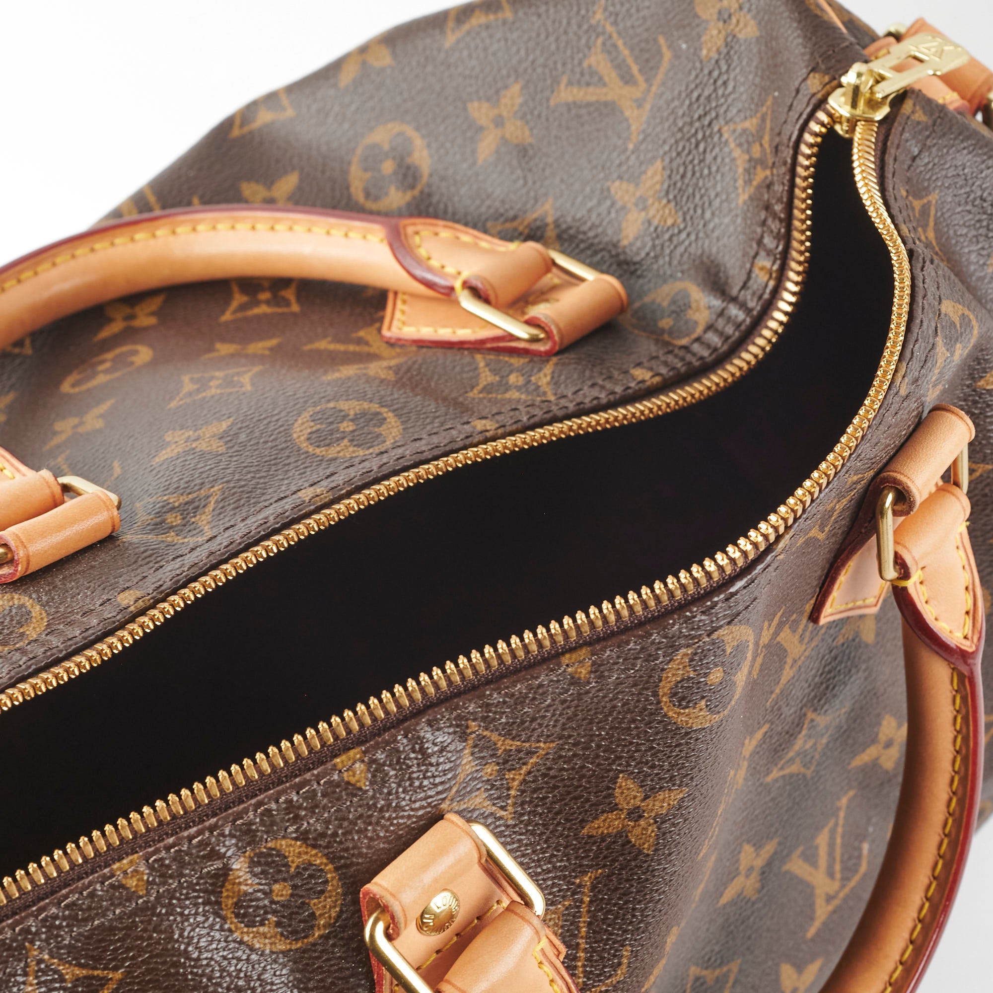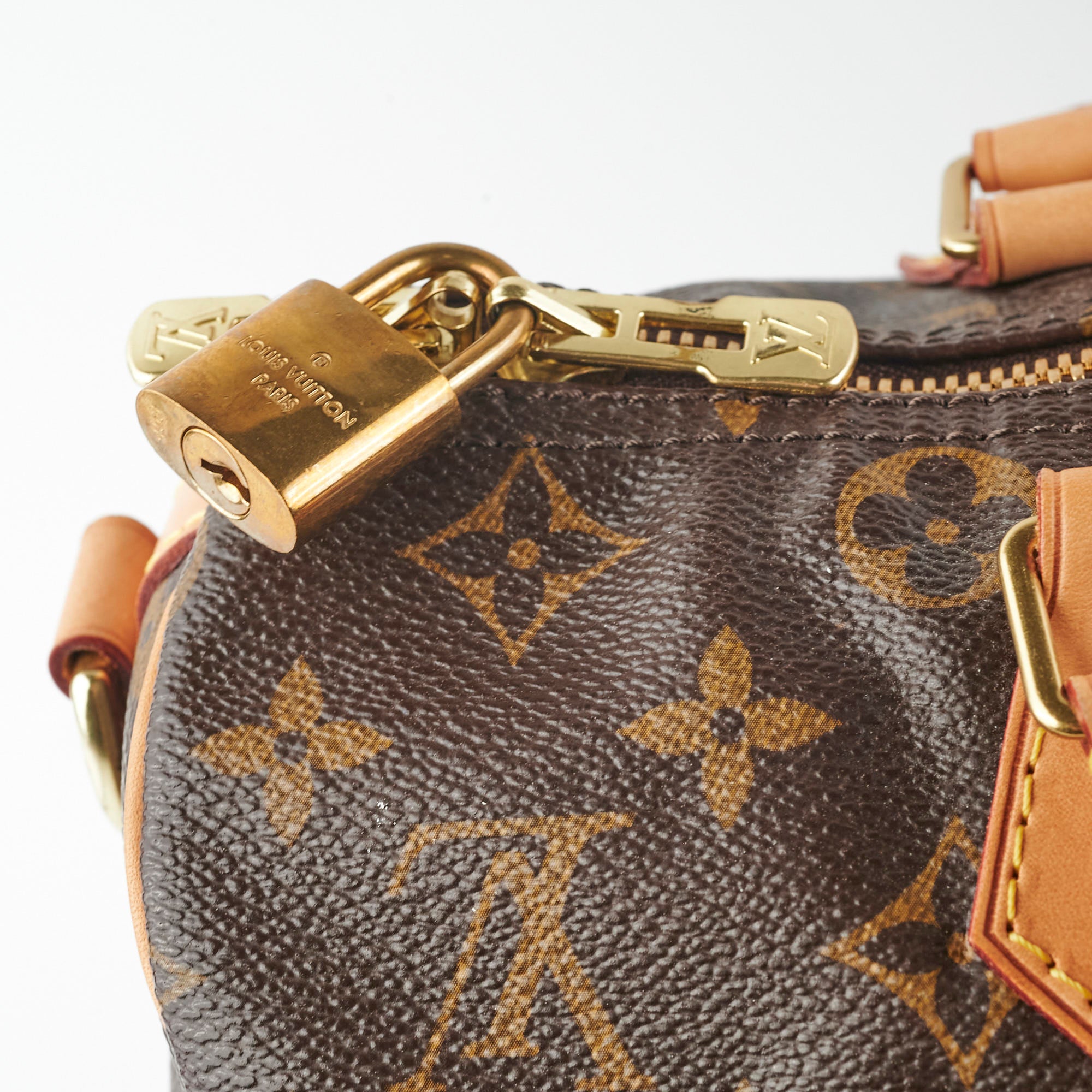 Light sign of wear on vachetta (rubbing, darkening, watermarks), light hairline scratches and tarnishing on hardware, clean interior