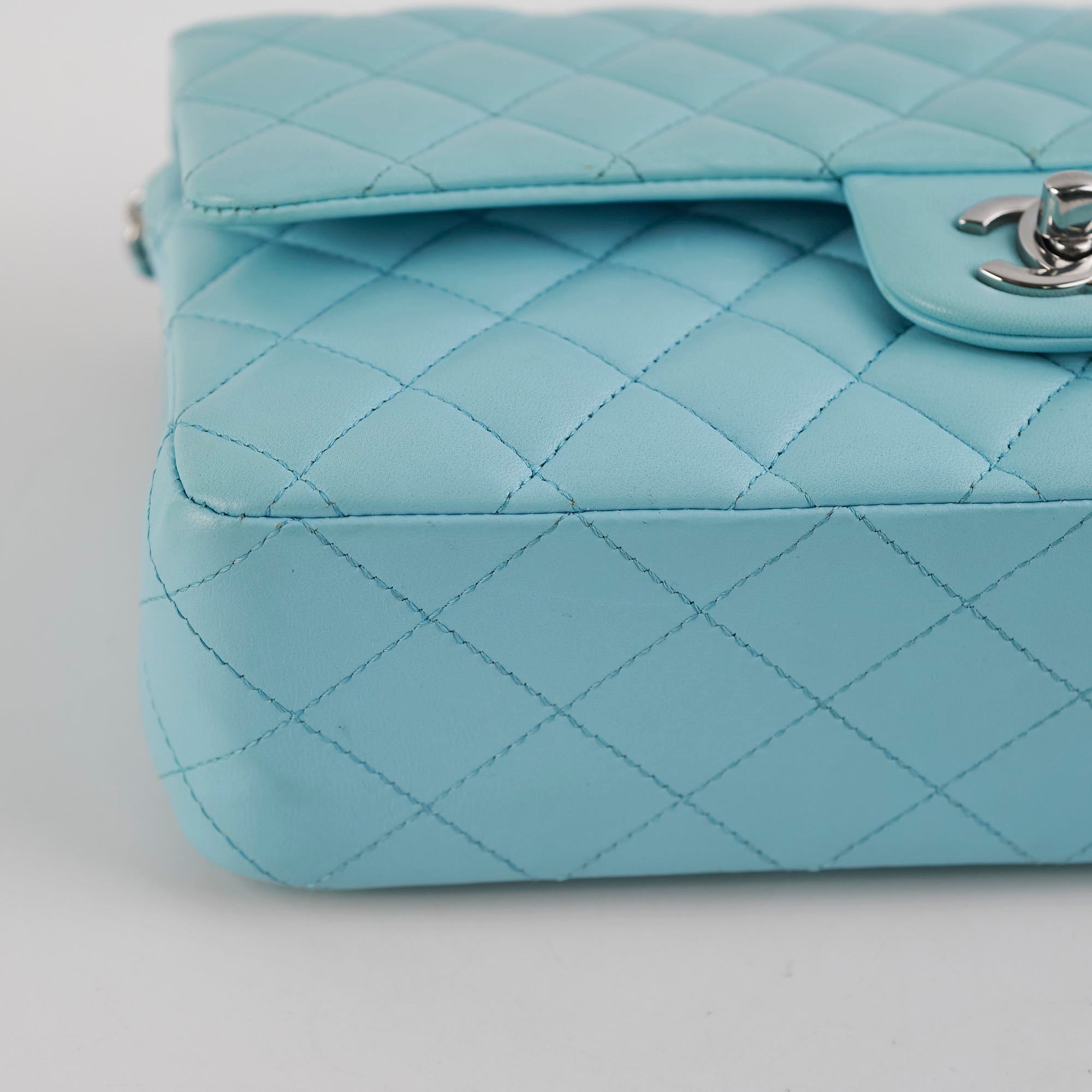 Minor rubbing on corners, light creasing near base and interior, minor nail marks and indent on base, minor discolouration on front