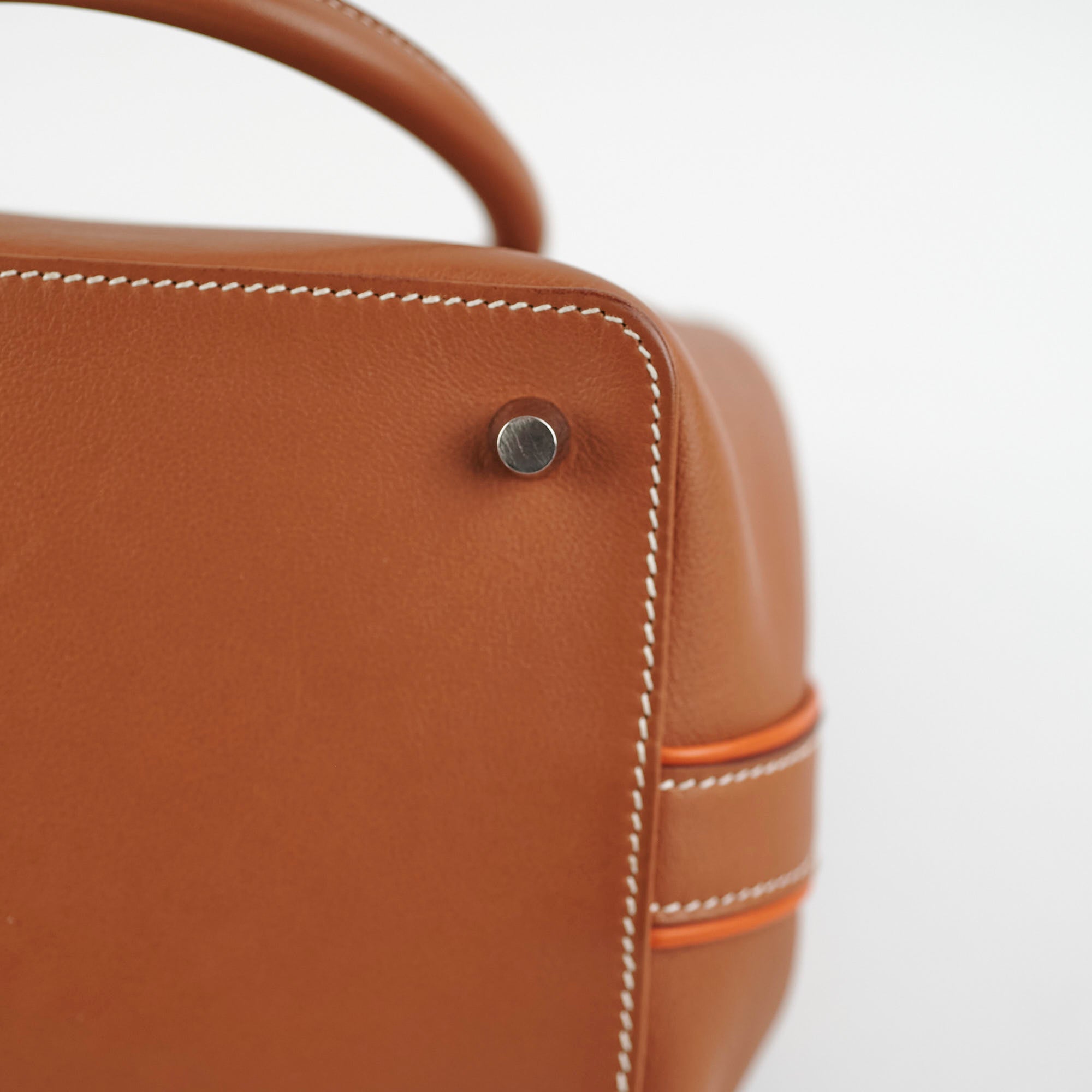 Minor nail marks on base, light hairline scratches on hardware, light rubbing on side
