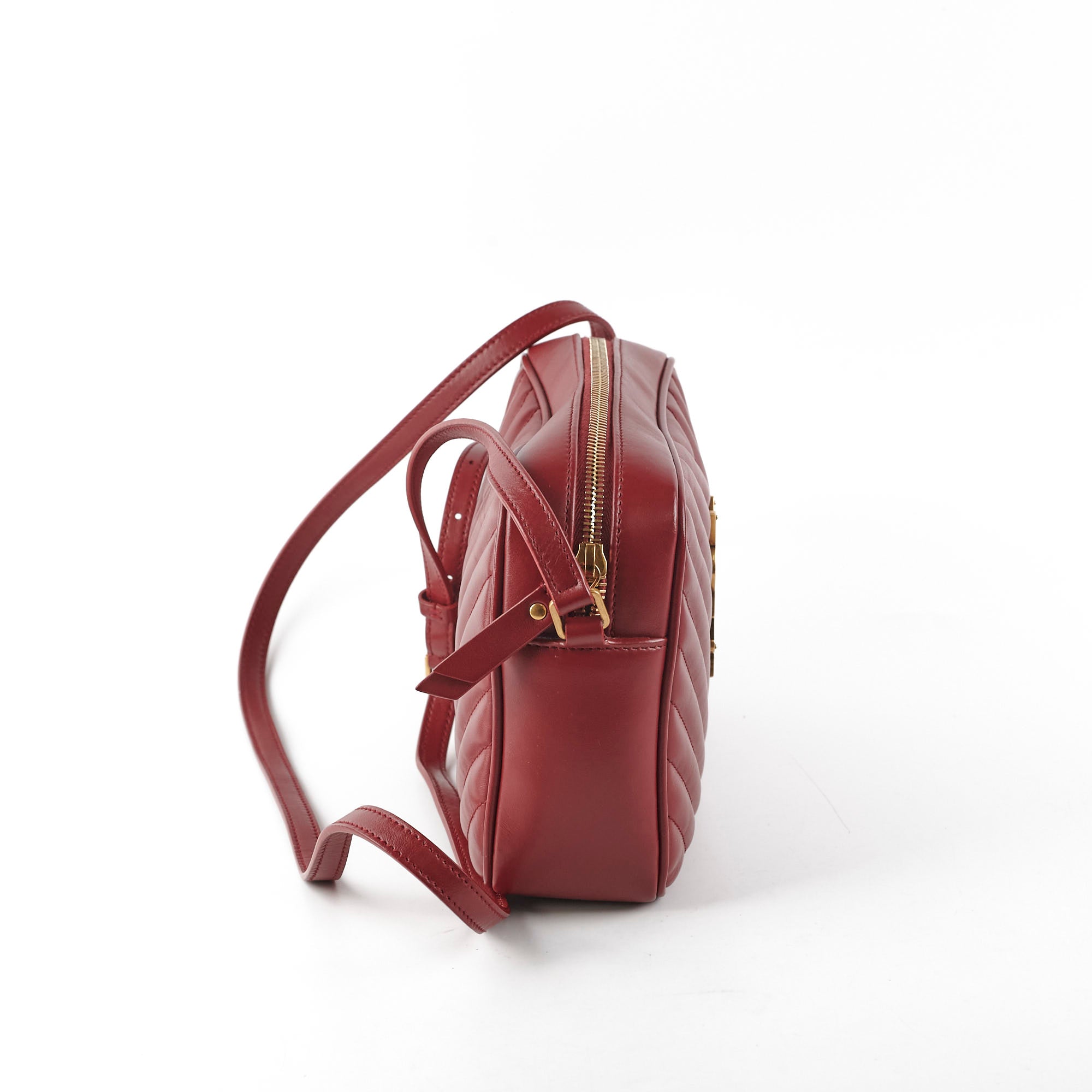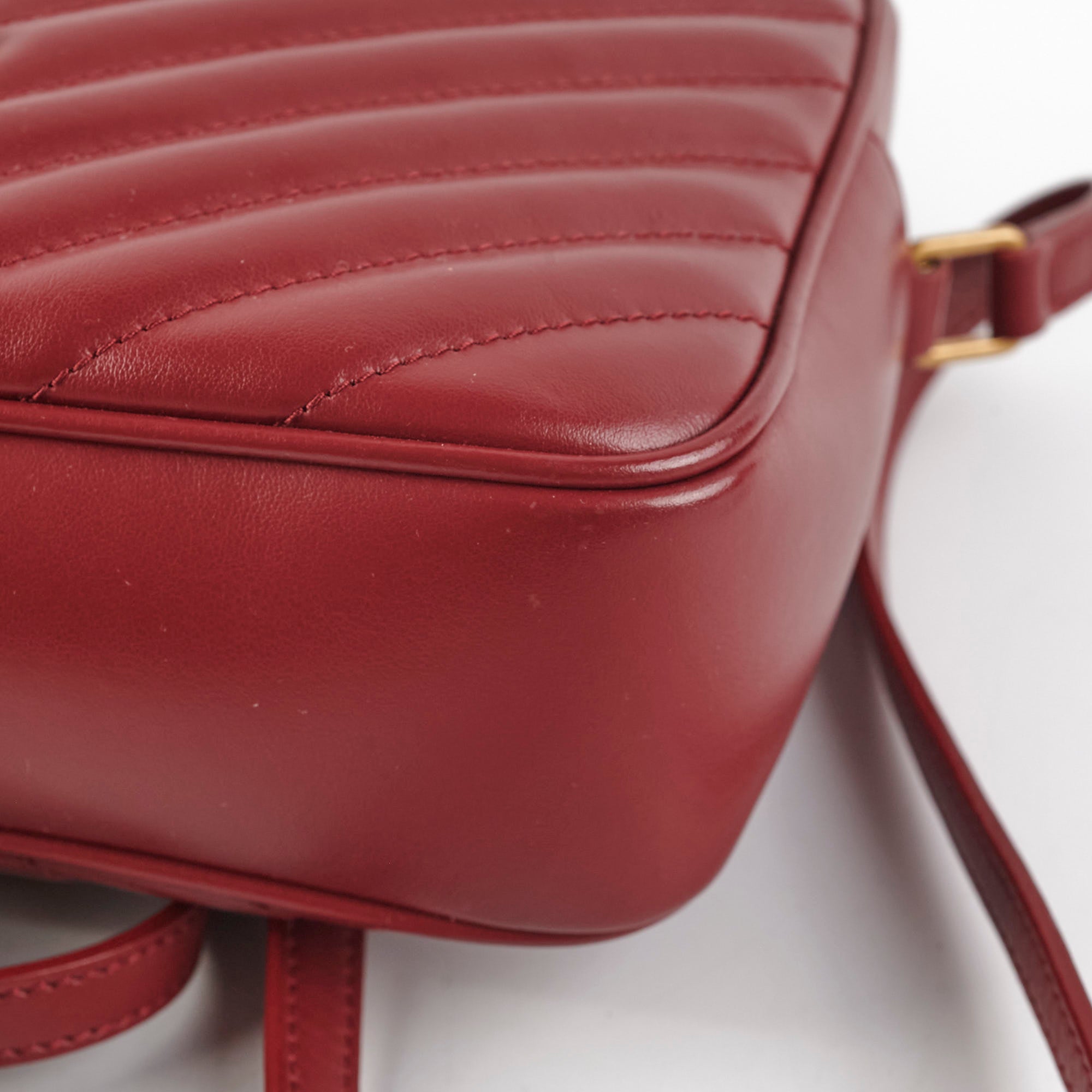 Light hairline scratches on hardware, minor rubbing on corners, light tarnishing on hardware