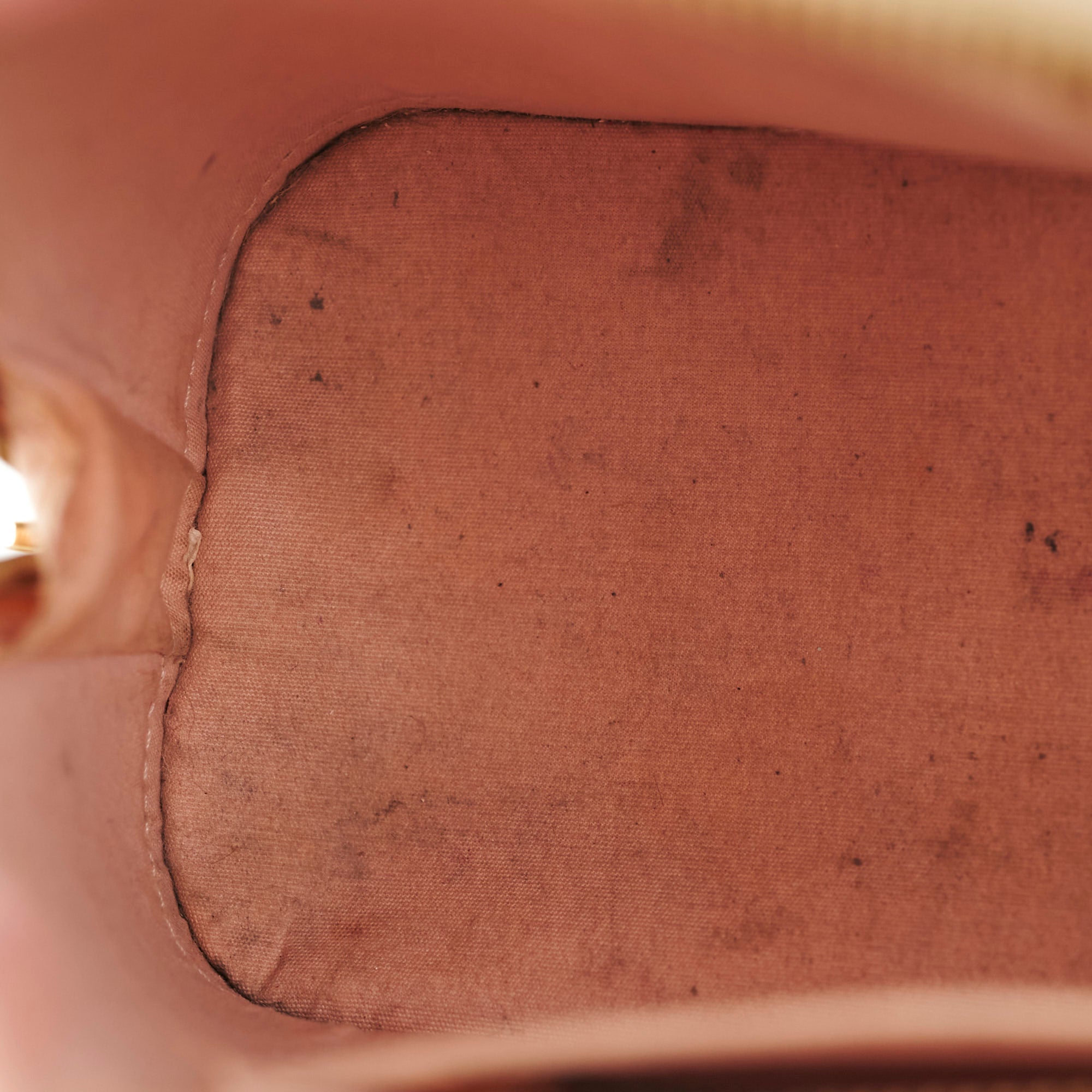 Scuffing around the corners, black marks exterior, tarnishing on hardware, general signs of wear