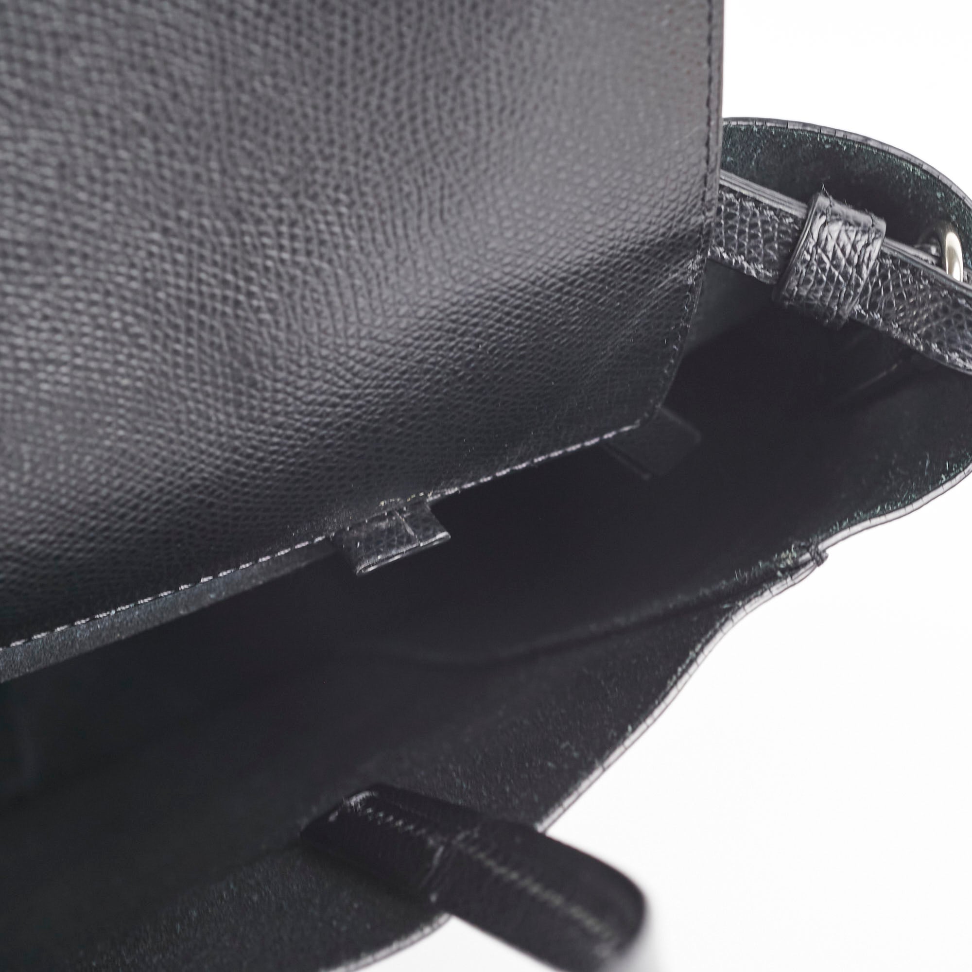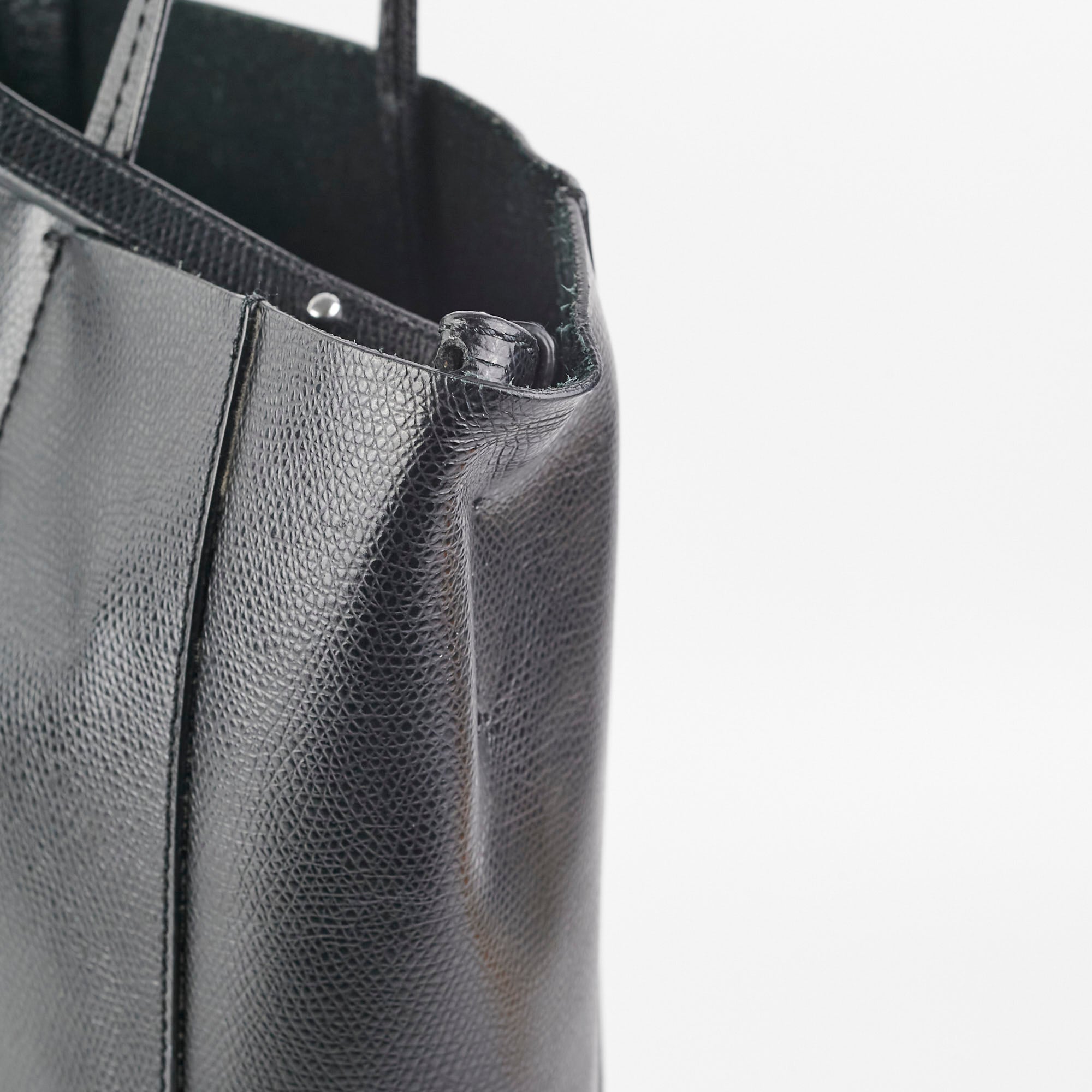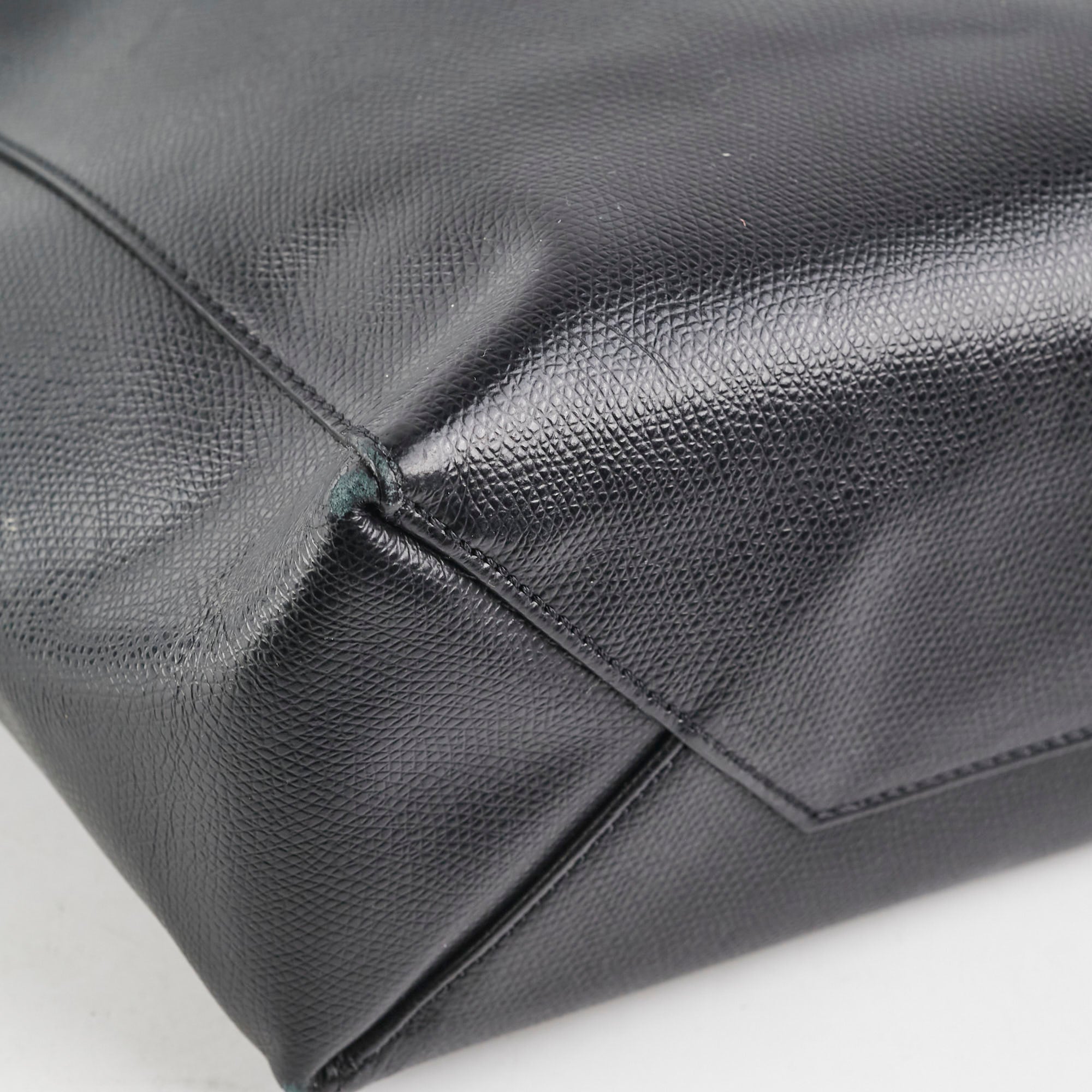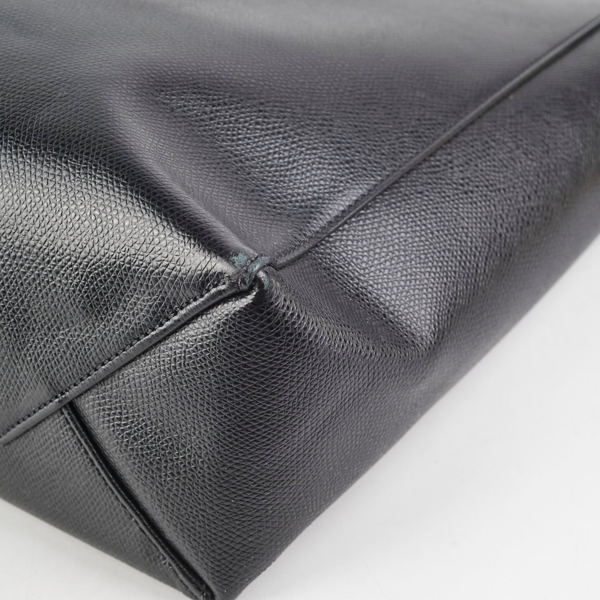 Rubbing on corners, rubbing interior near strap, minor crease on front of bag