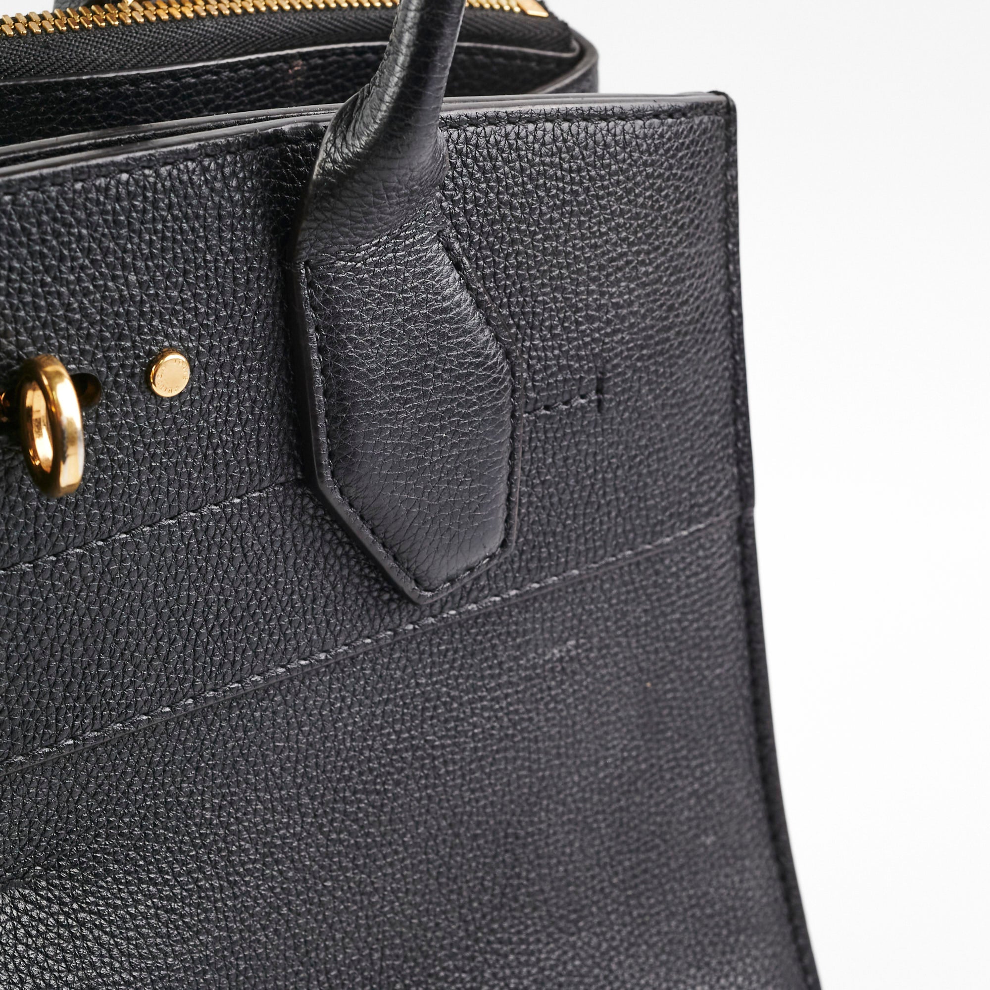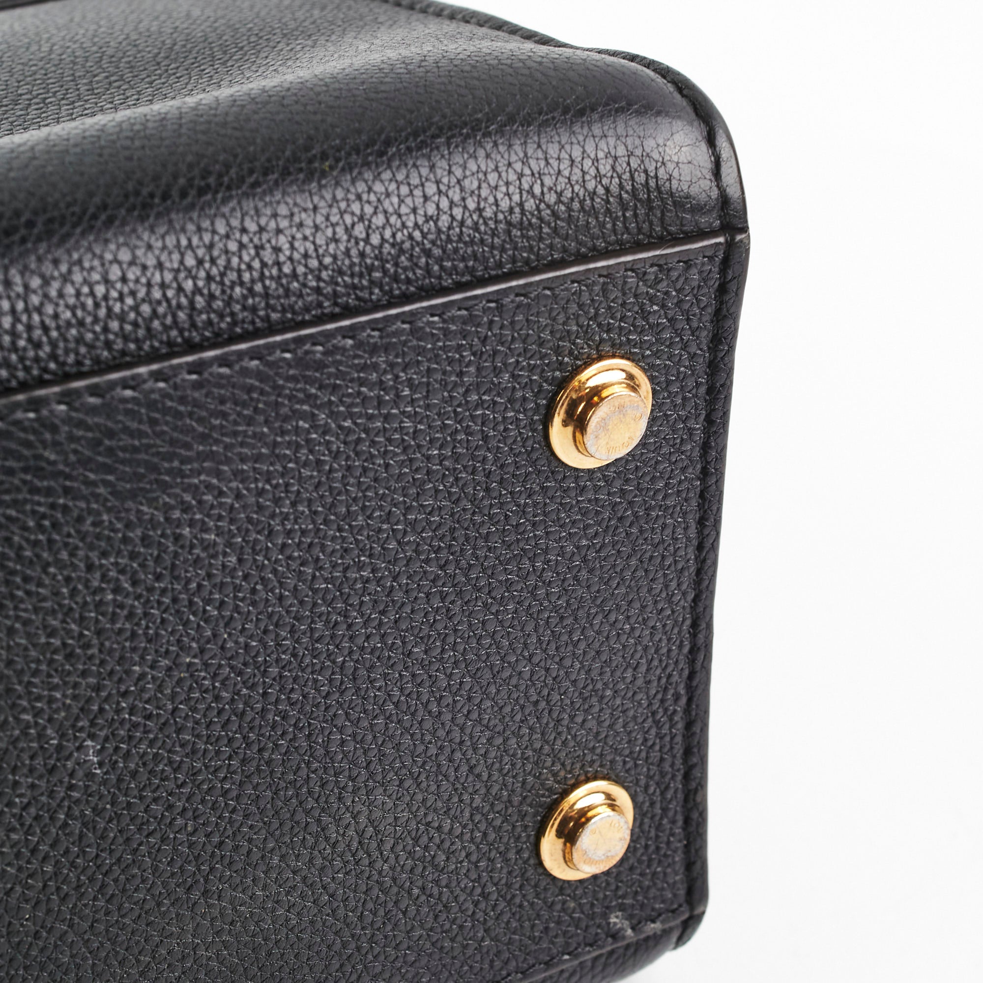 Light nail marks throughout leather, light rubbing and scratches on hardware, light rubbing on corners