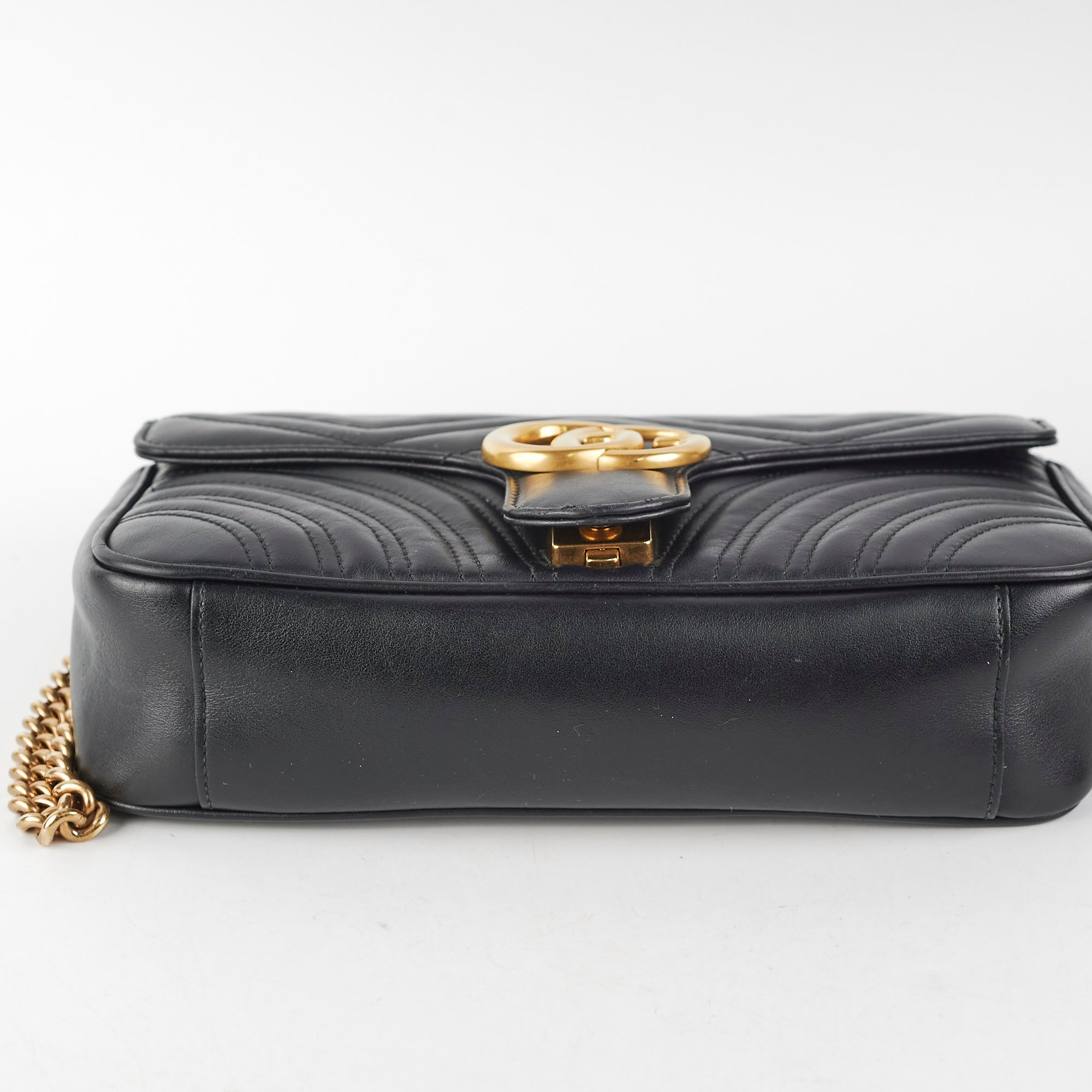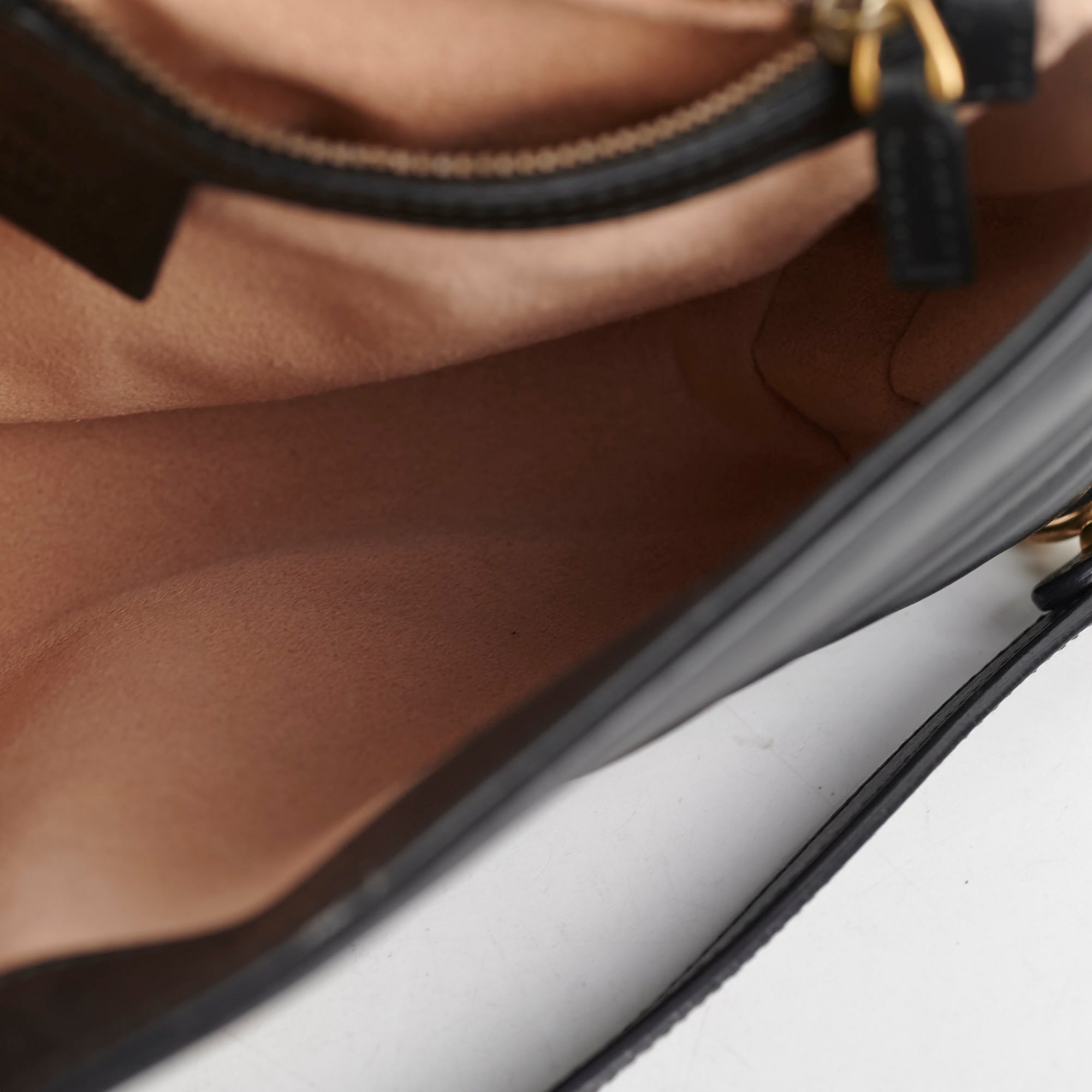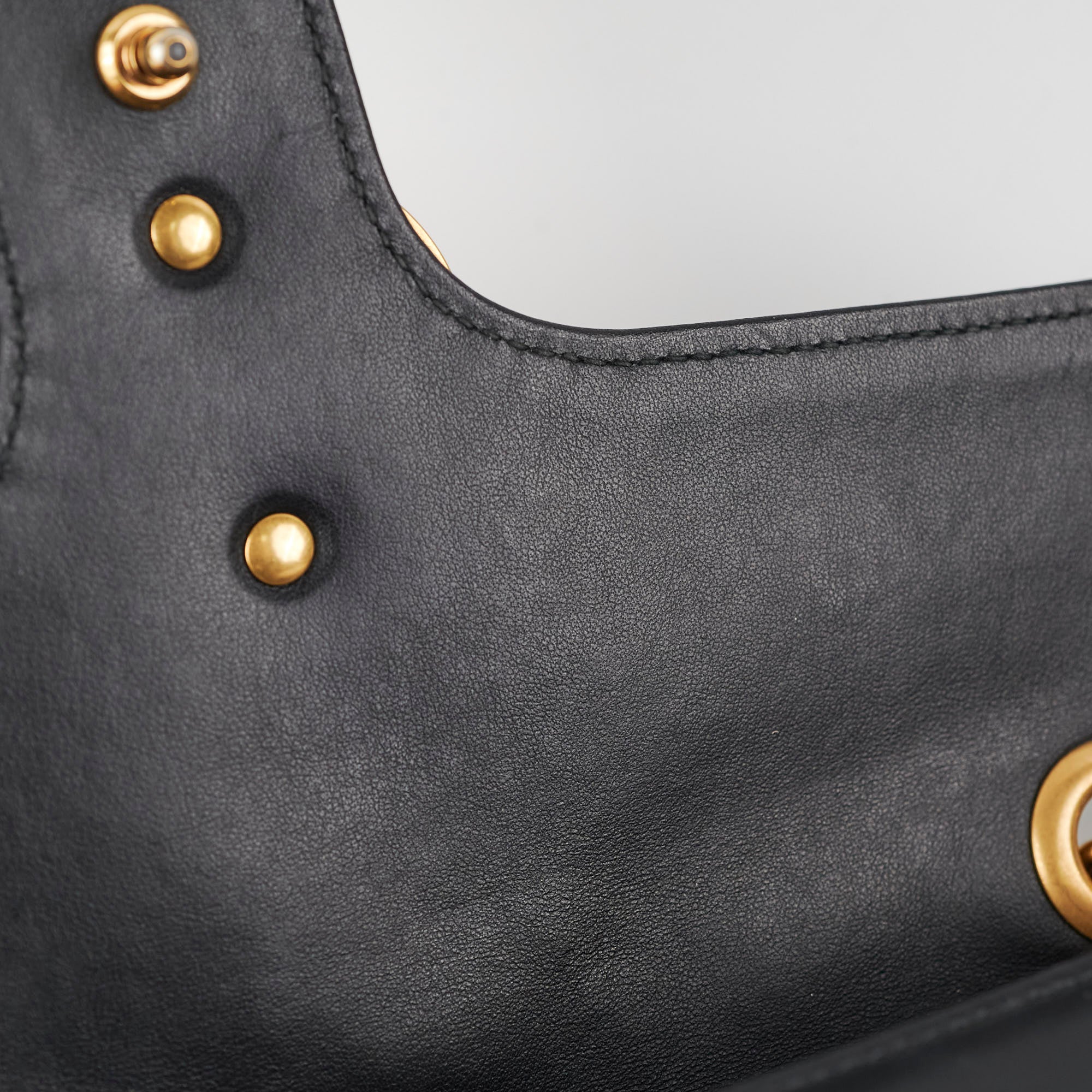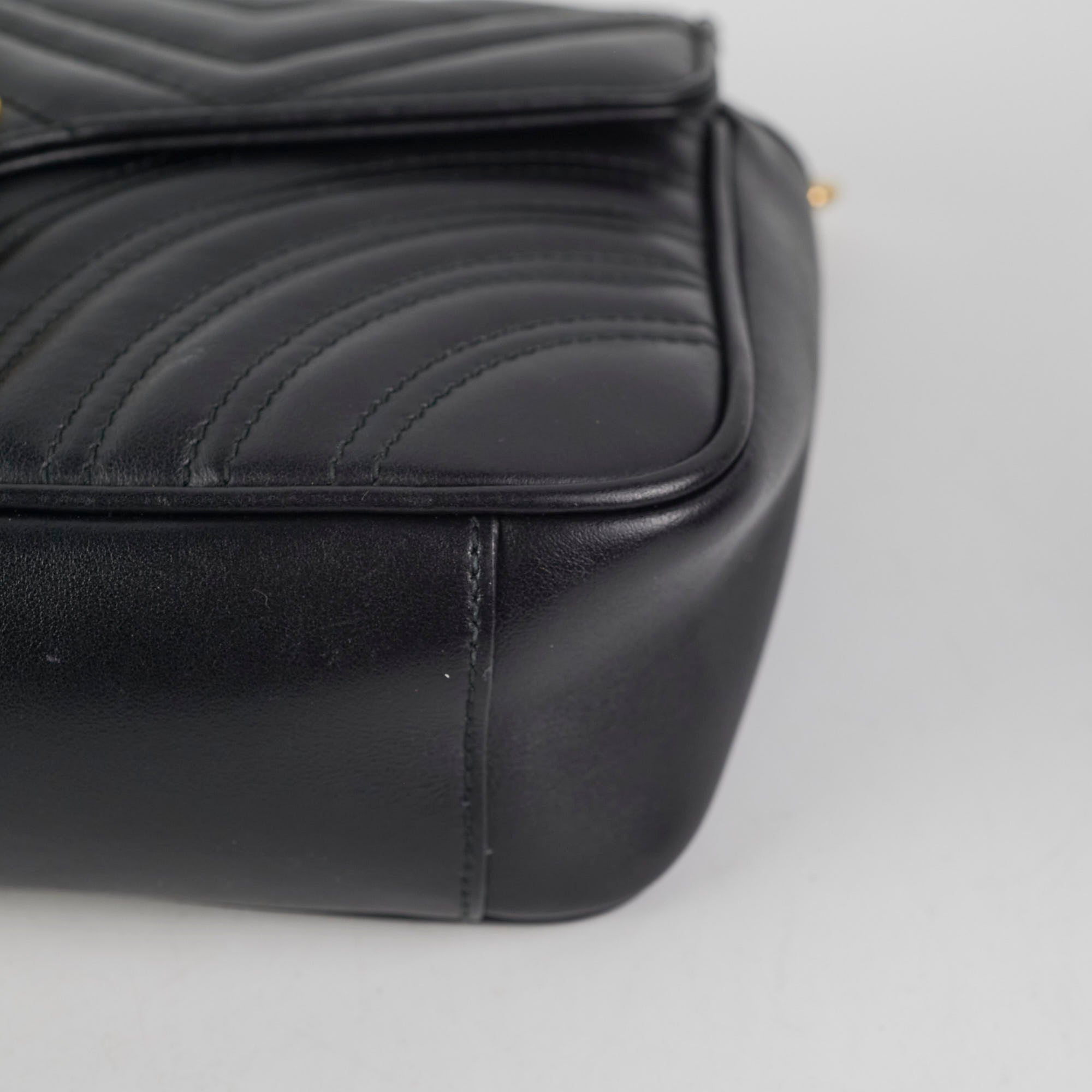 Minor loose stitch under flap, light creasing near clasp