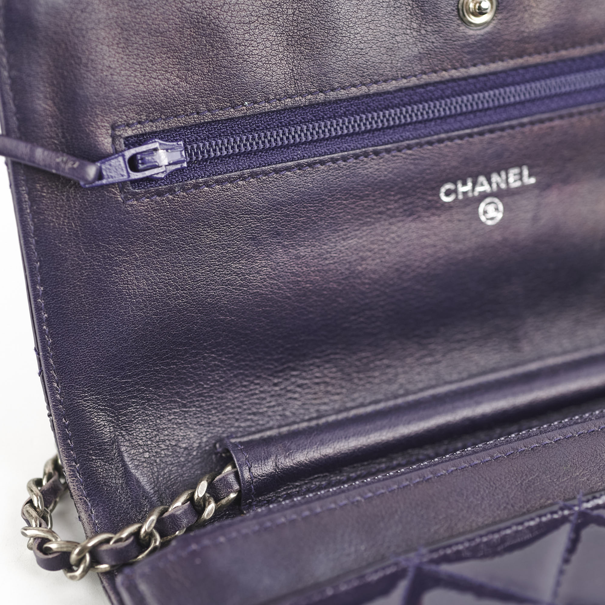 Light tarnishing and scratches on hardware, light rubbing on corners and edges