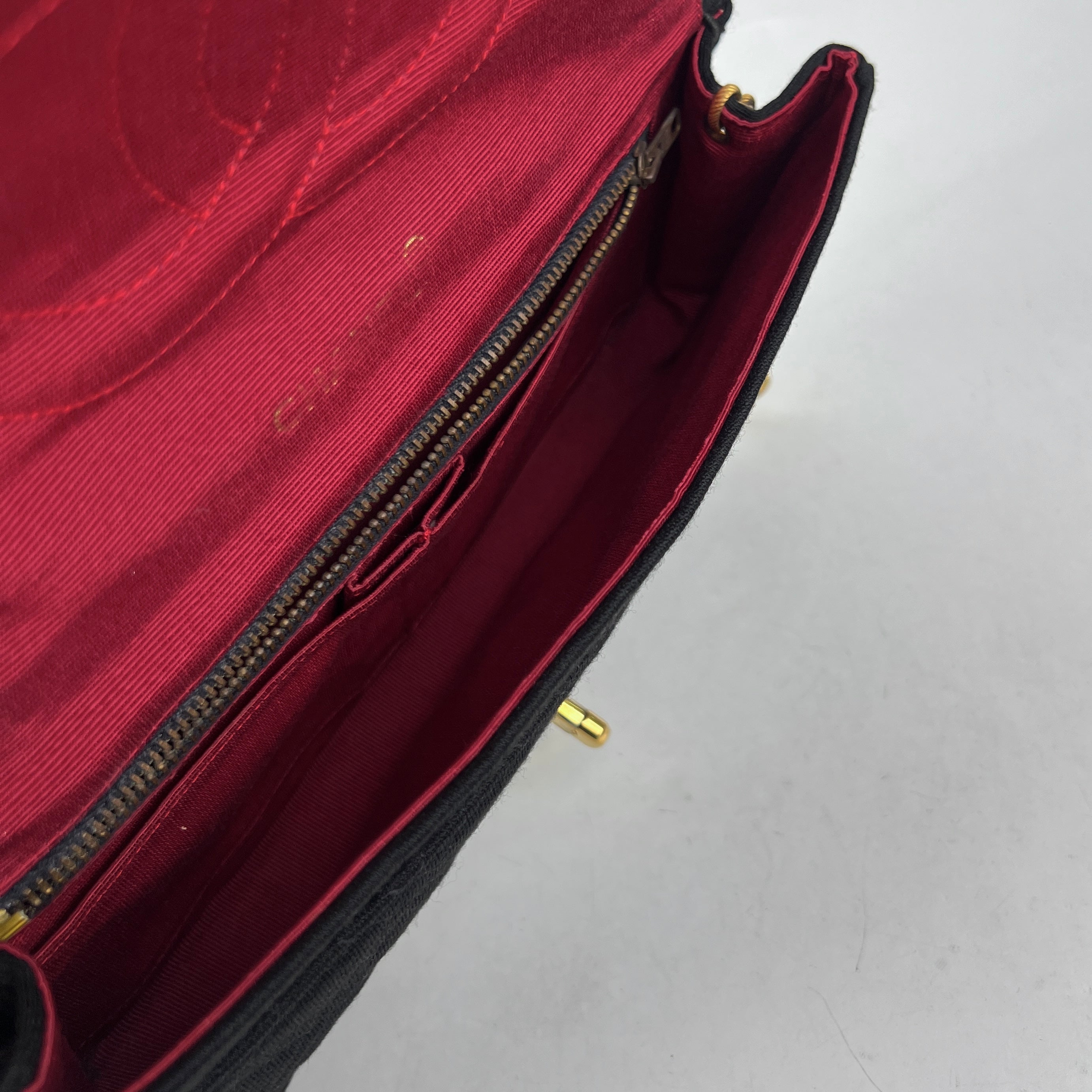 Light tarnishing and scratches on hardware and zipper, light rubbing on inner logo and made in sign, no serial sticker