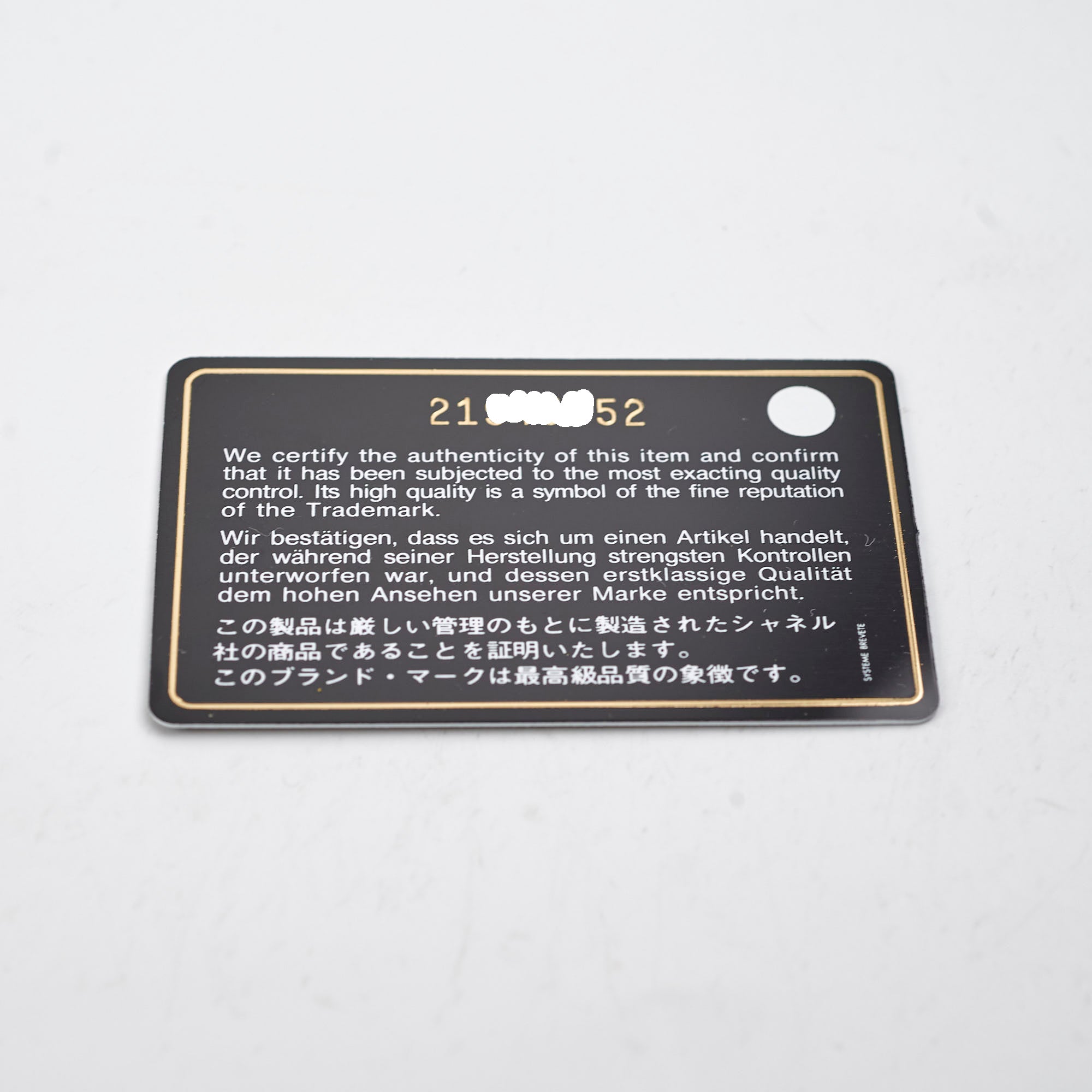 Authenticity Card, Dustbag