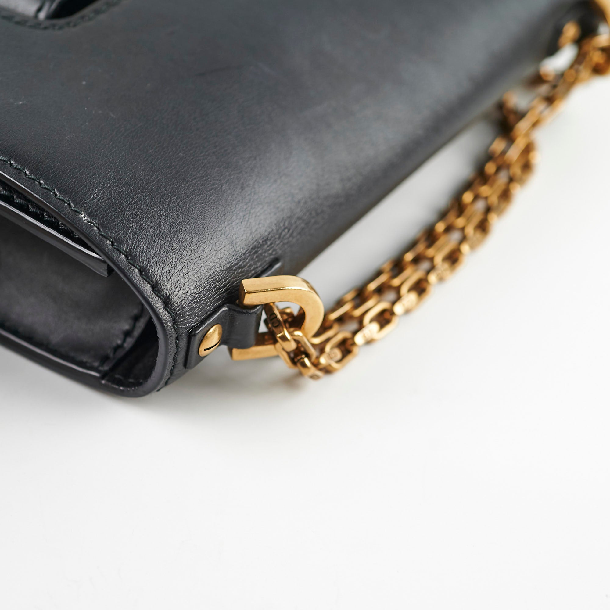 Signs of wear throughout (nail marks, scuff on front corner), hairline scratches on hardware, minor scuffs interior, soften structure