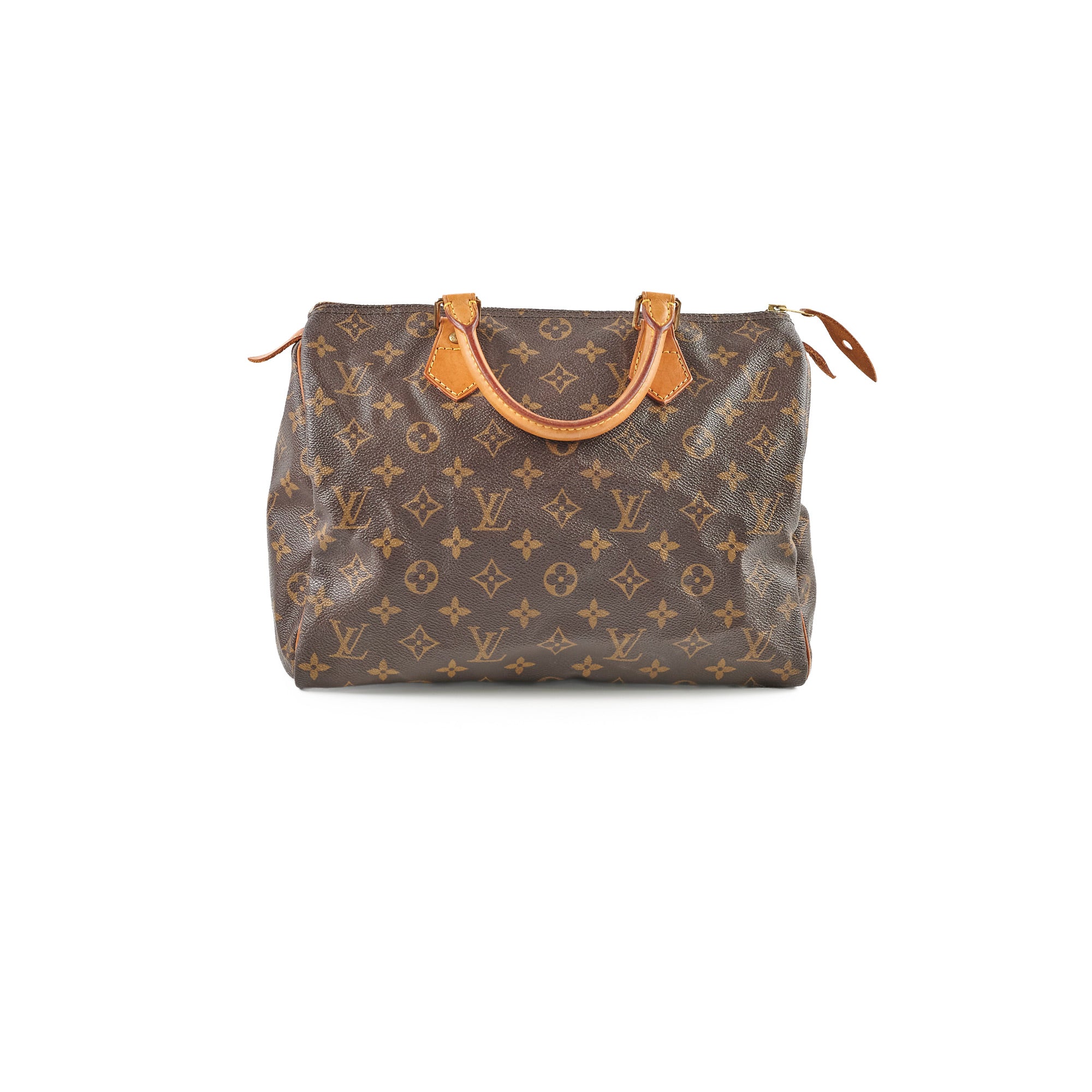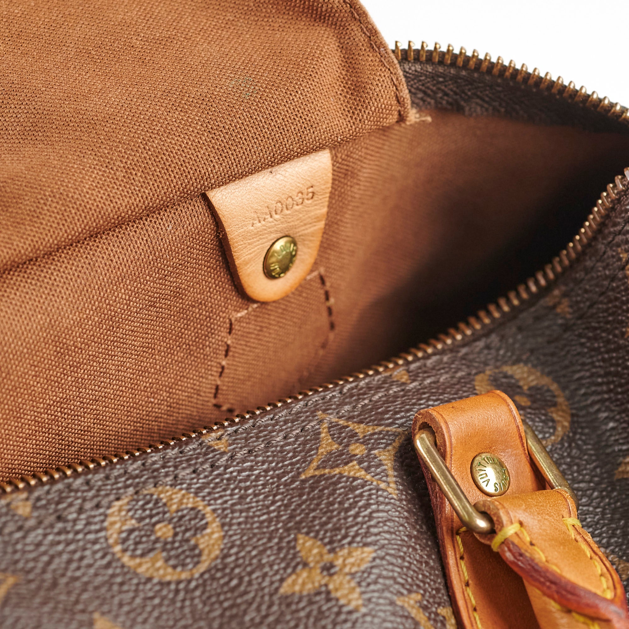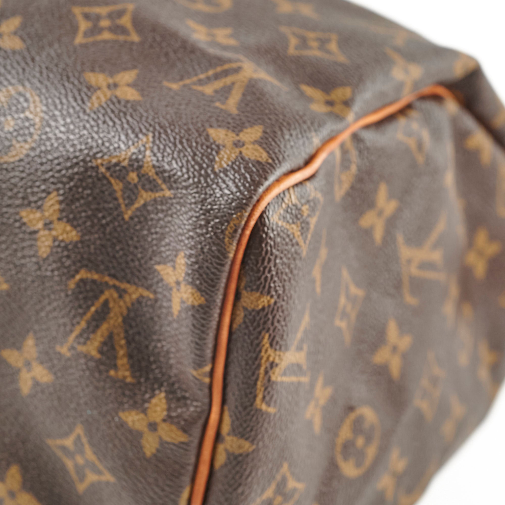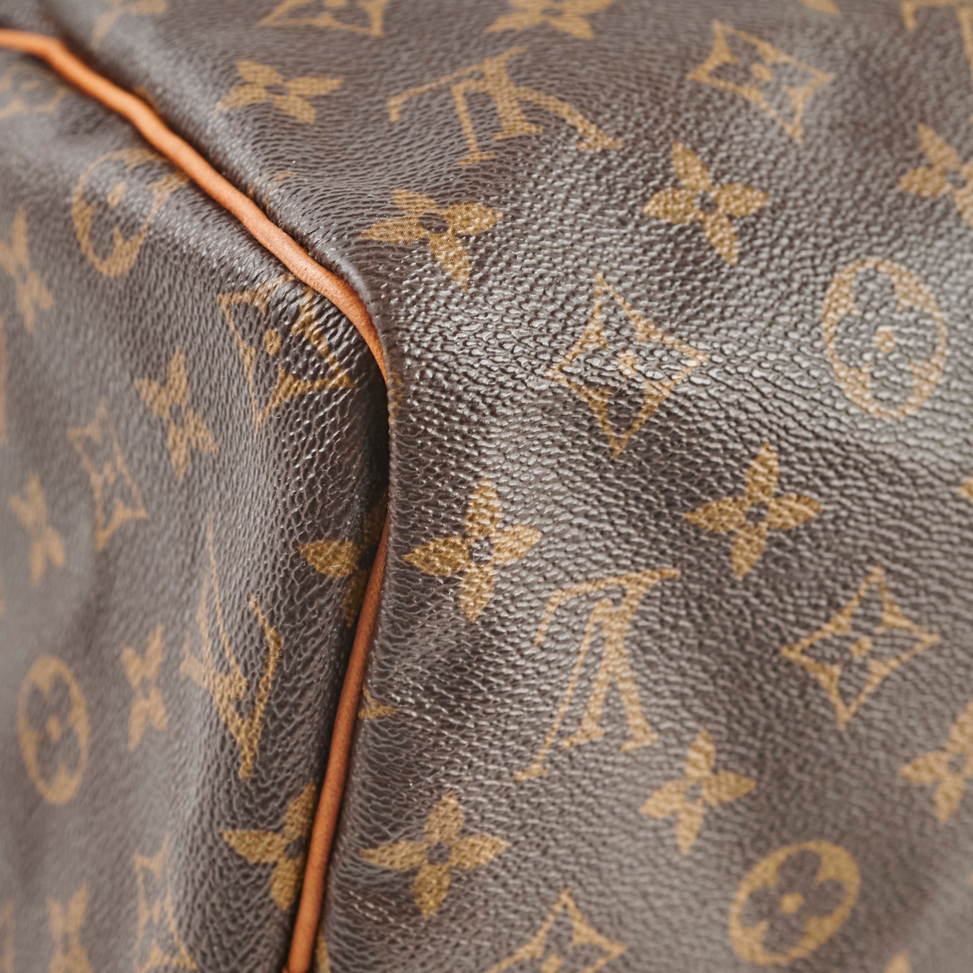 General signs of wear, wear on vachetta (darkening, rubbing watermarks), light hairline scratches and tarnishing on hardware, clean interior