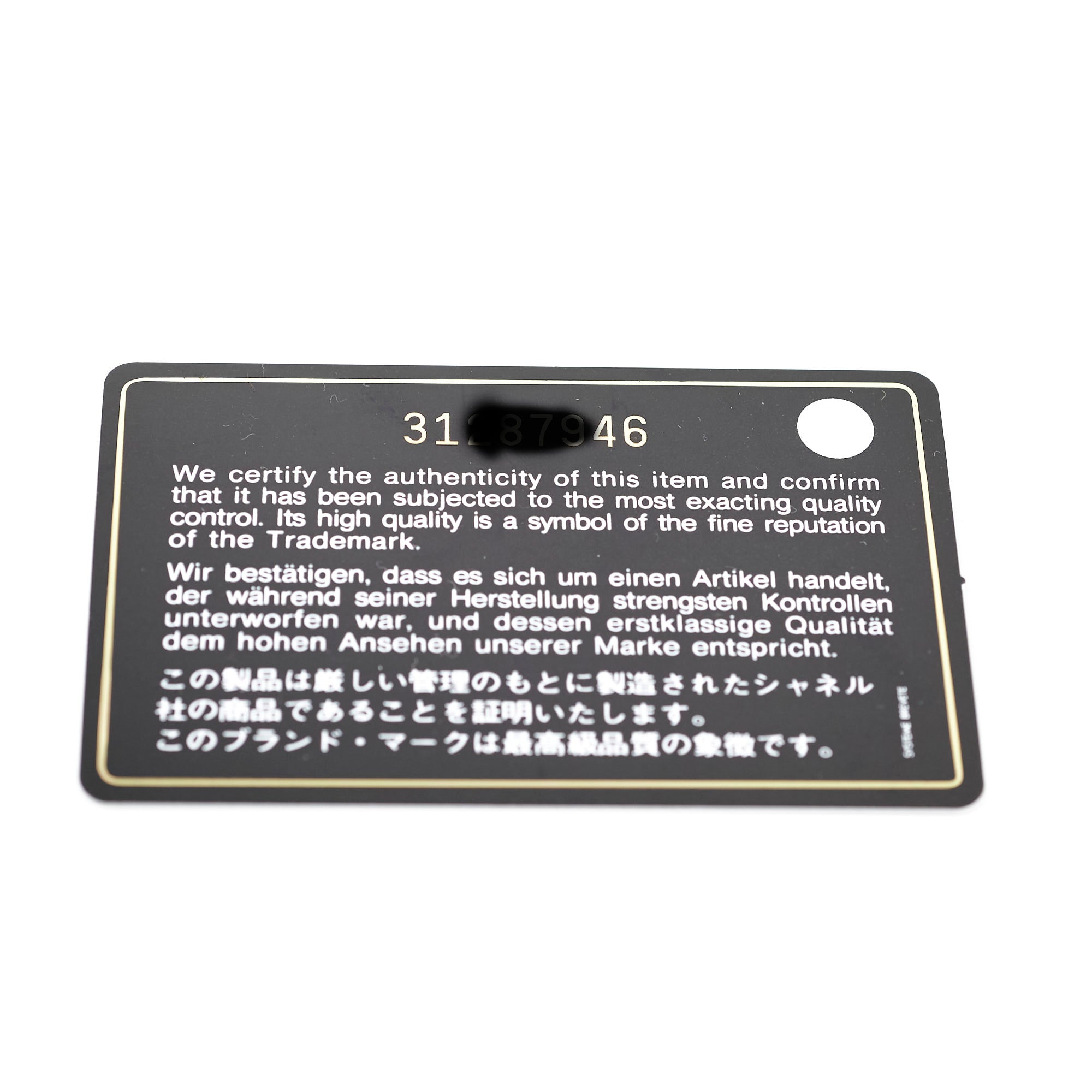 Authenticity Card, Dustbag