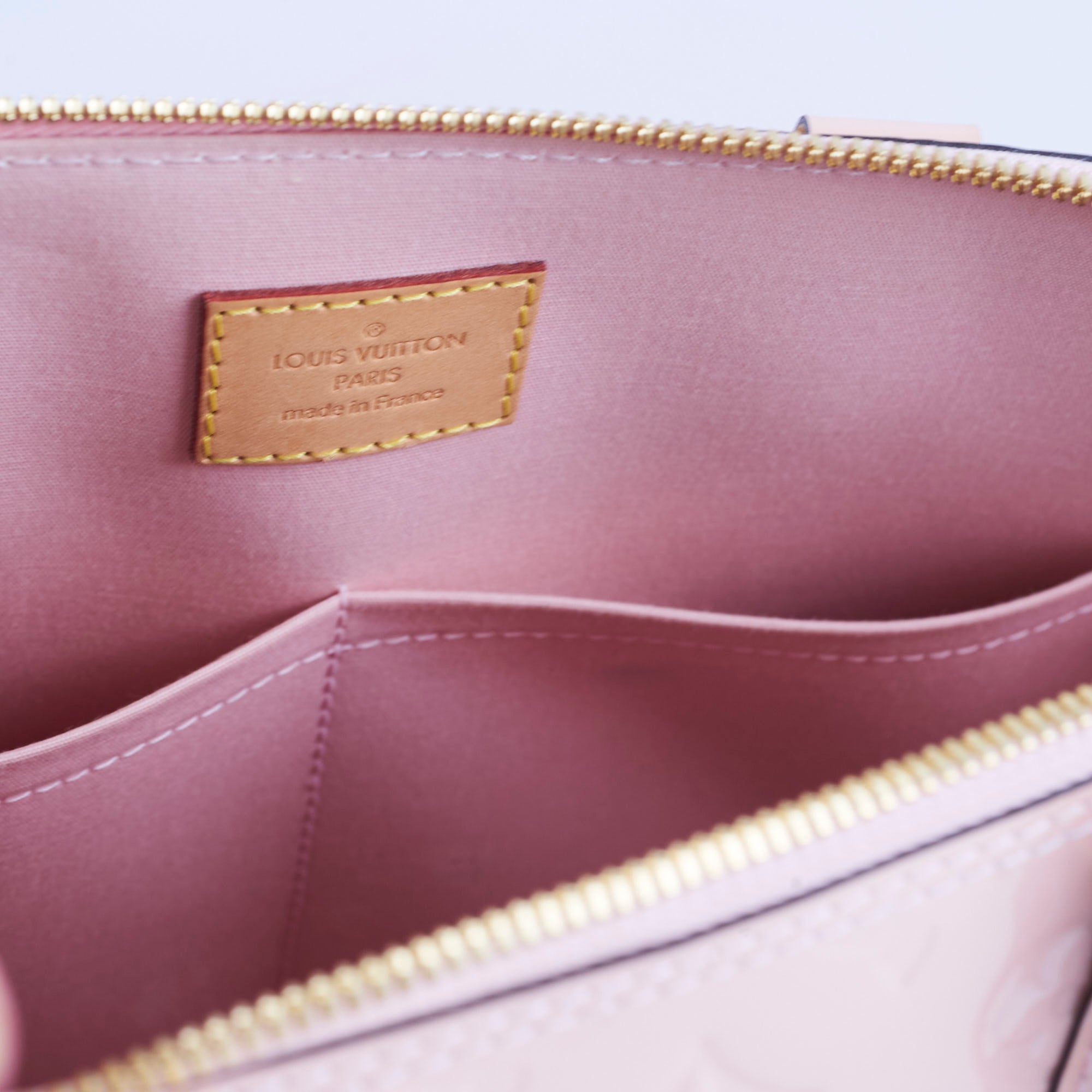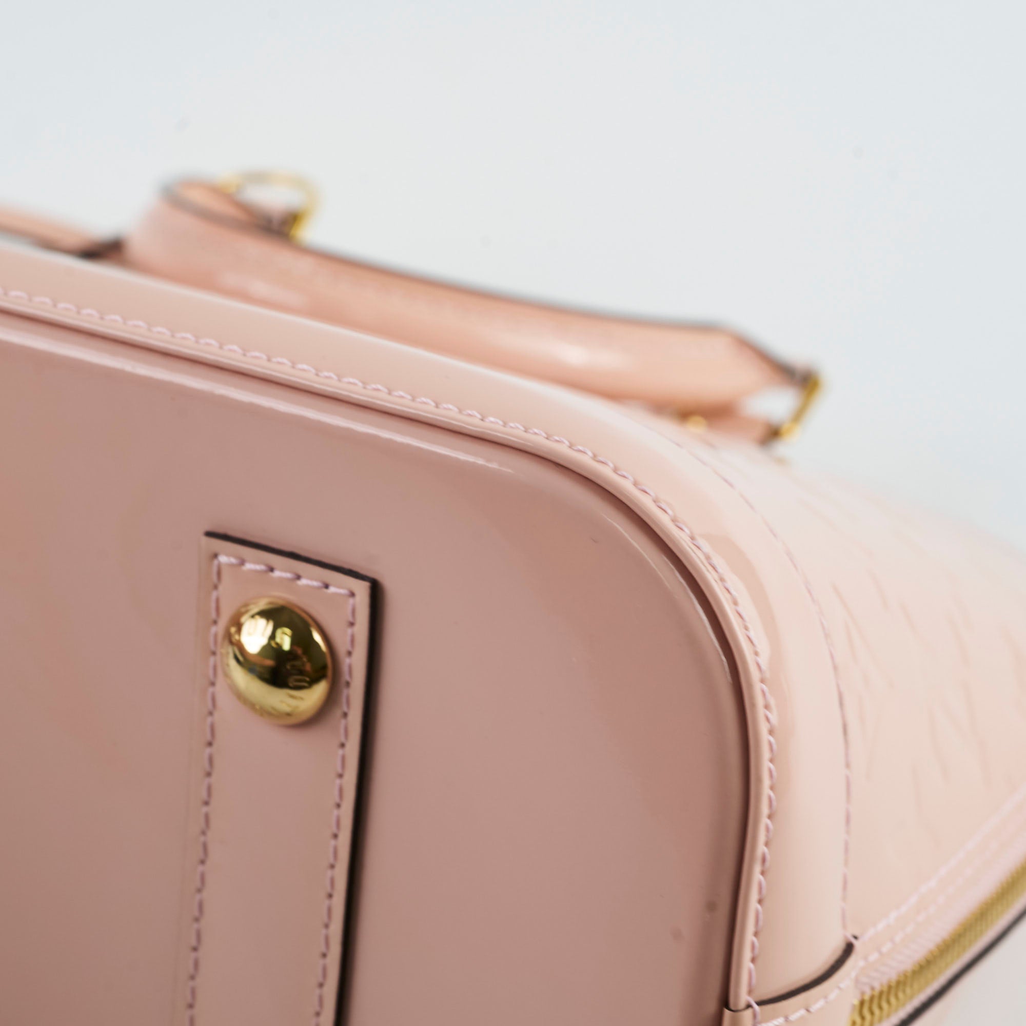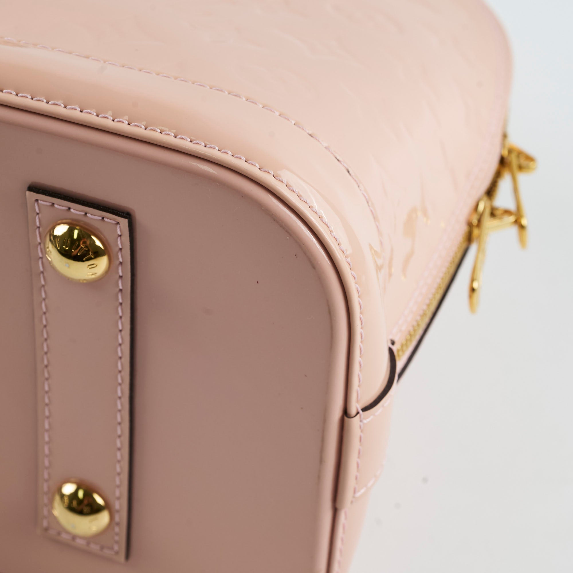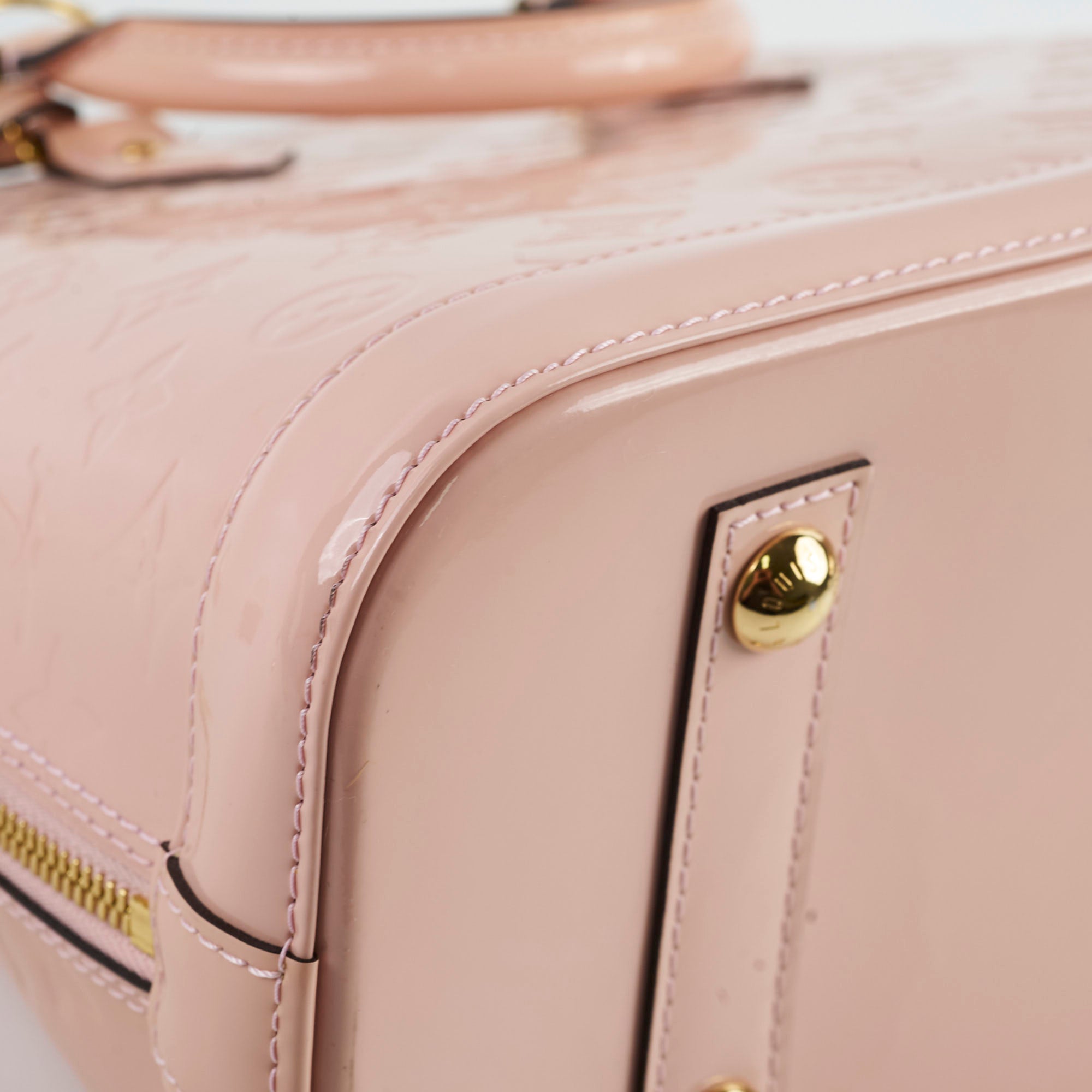 Light discolouration on handle, light hairline scratches and rubbing on hardware, light rubbing on corner