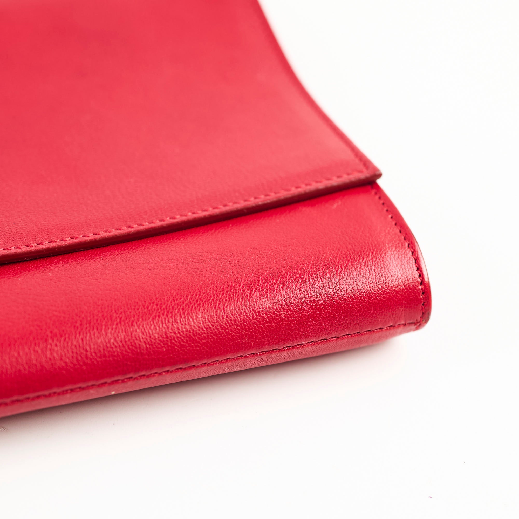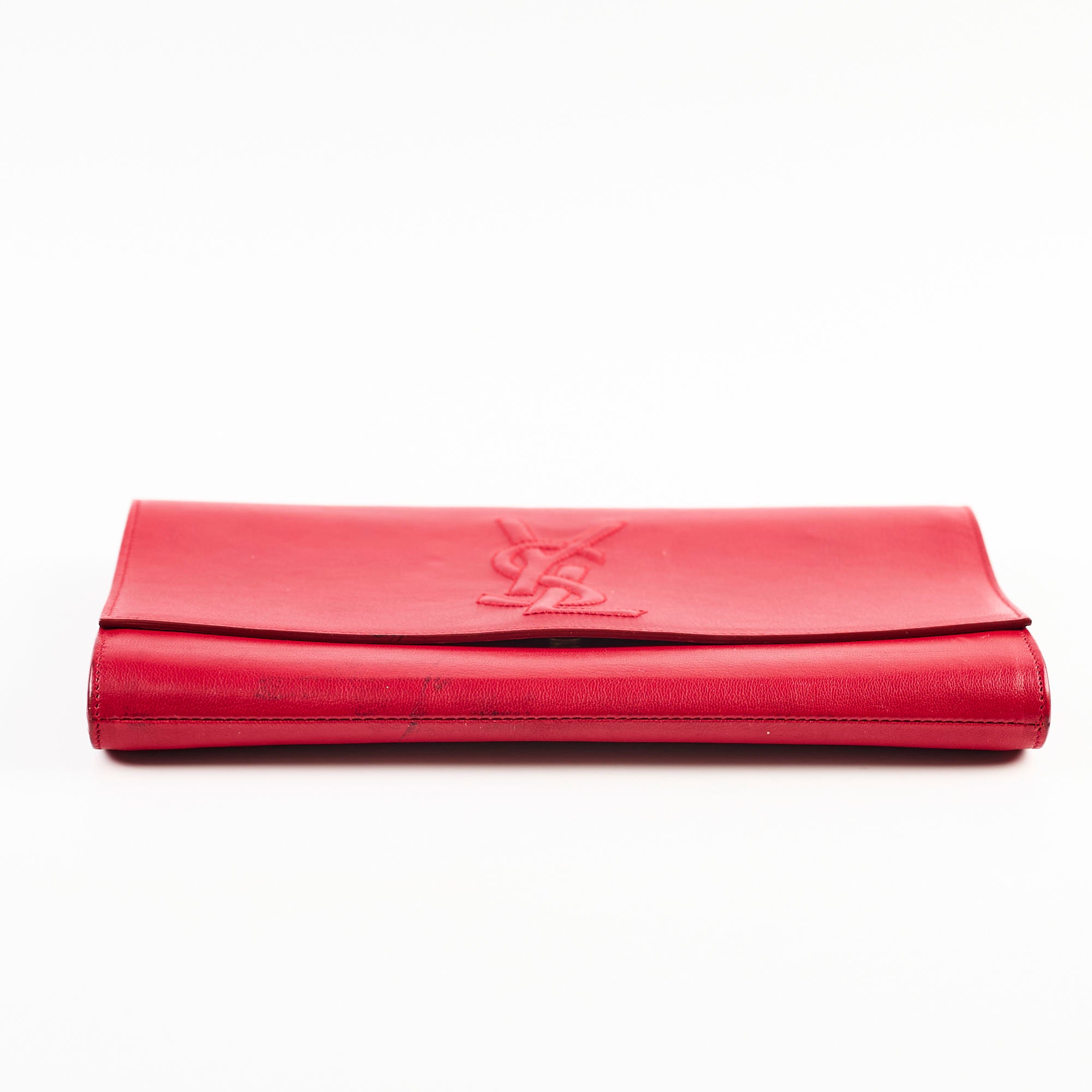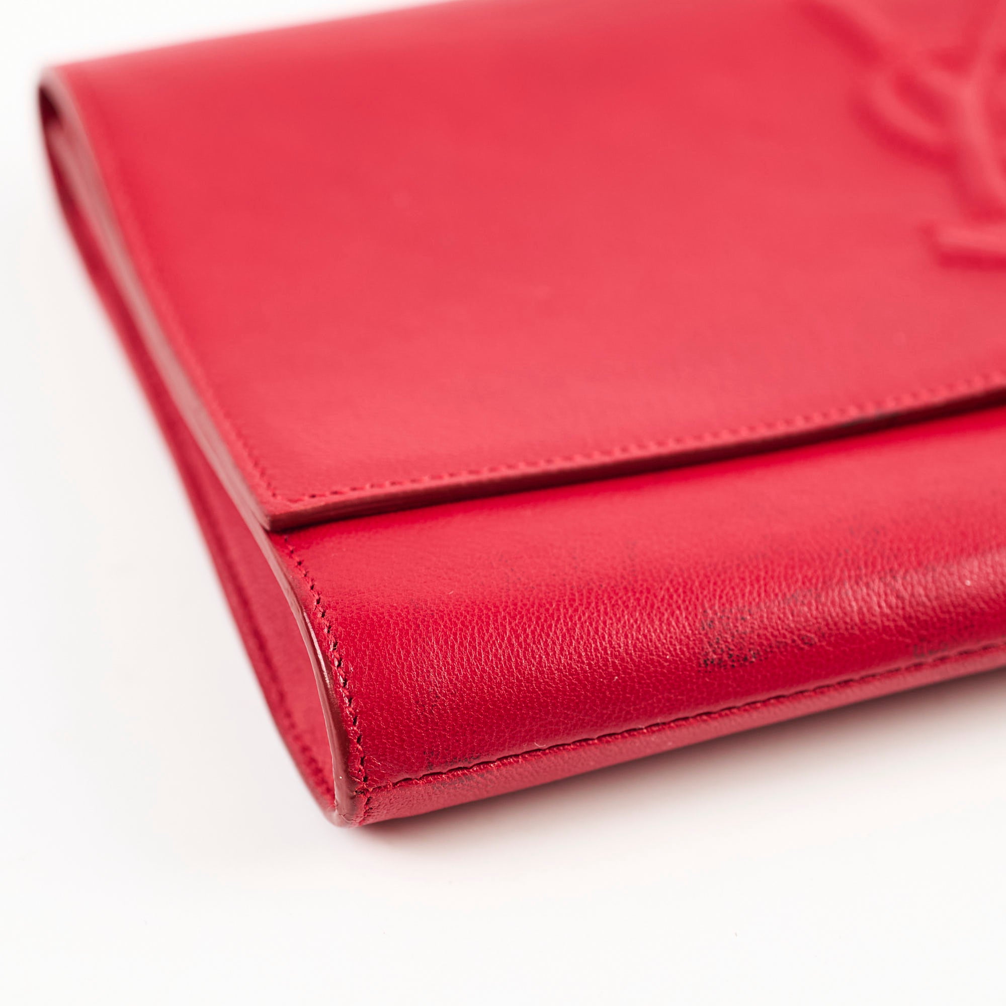 Light nail marks throughout leather, light black mark on front, light hairline scratches and rubbing on hardware