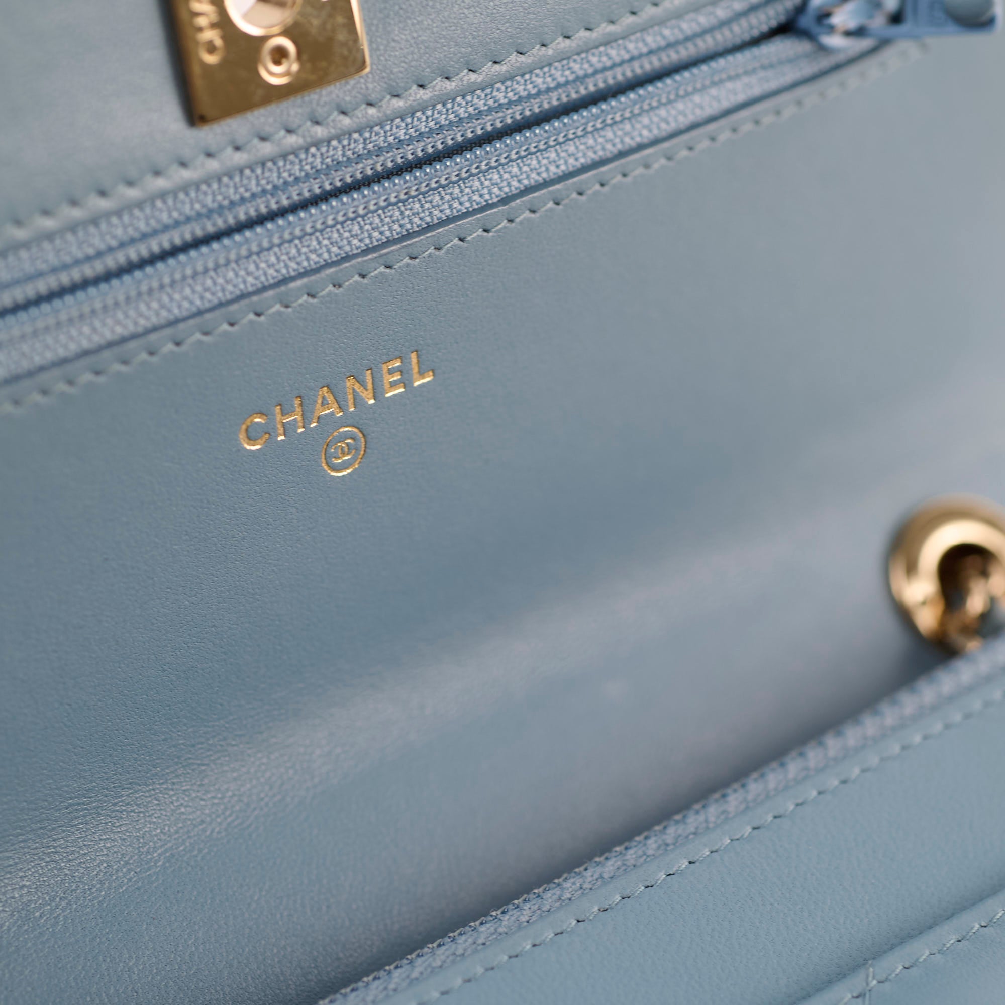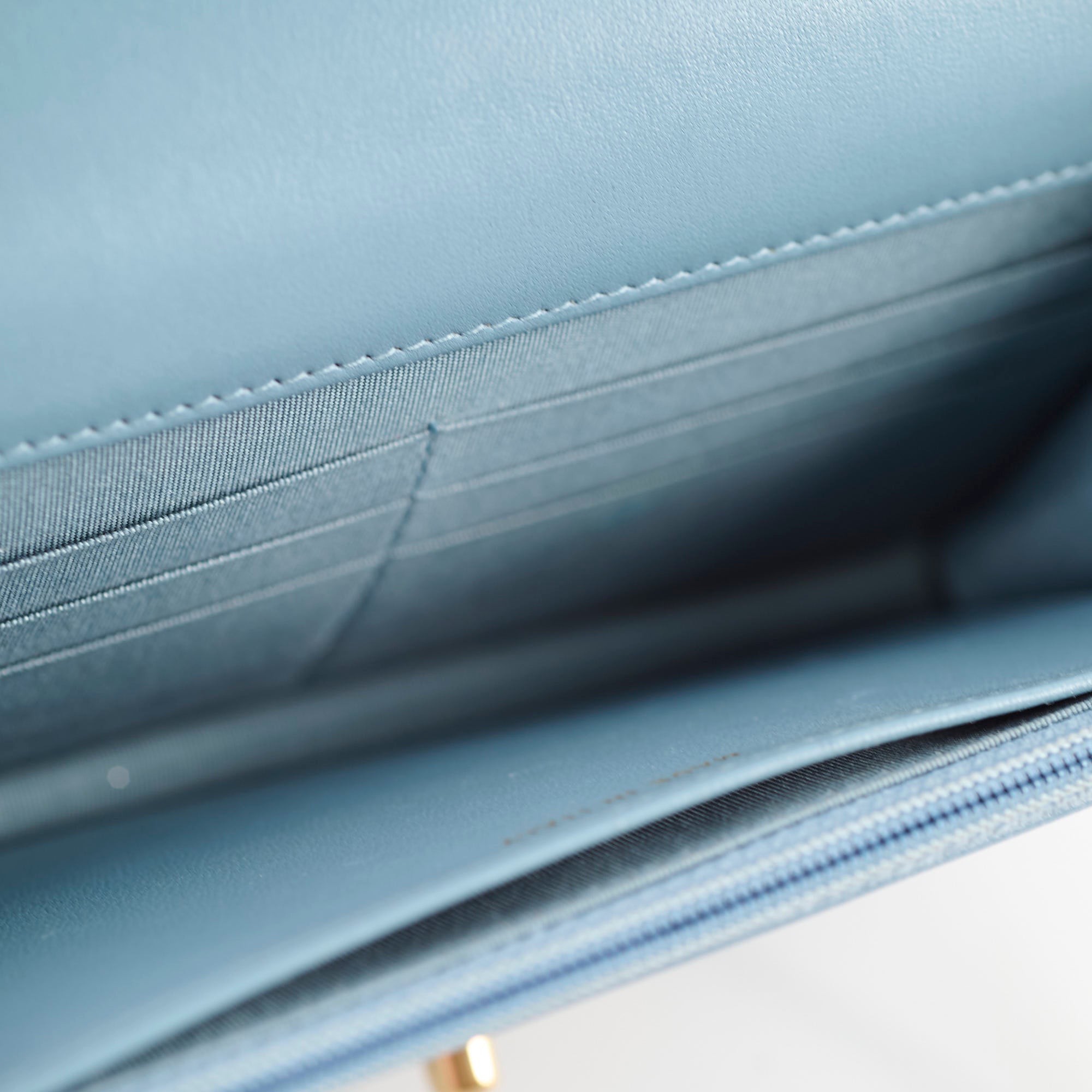 Minor signs of wear on the edge of the flap, minor indents under the flap from zipper, clean inside and outside
