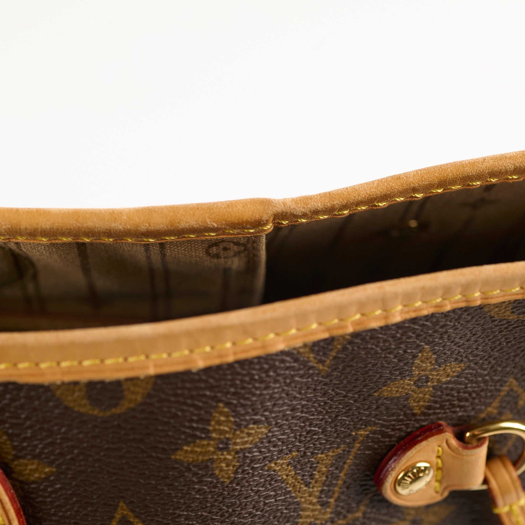 Signs on wear on vachetta handles and trim, light rubbing on corners, V.B hotstamp initials on strap base