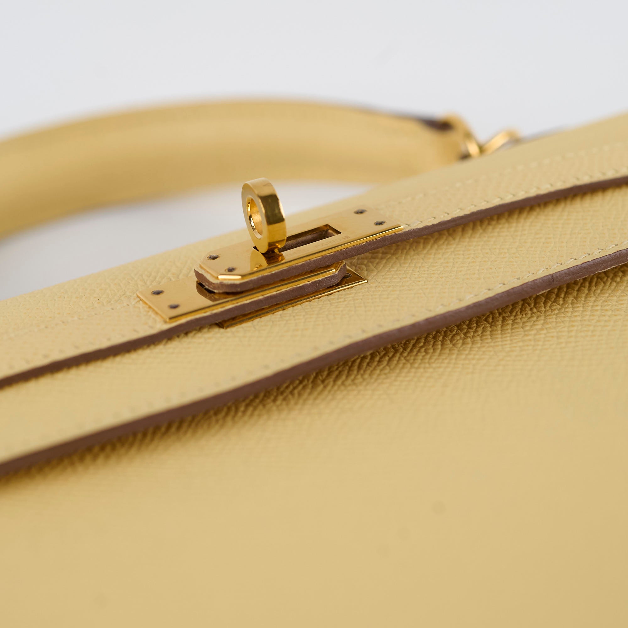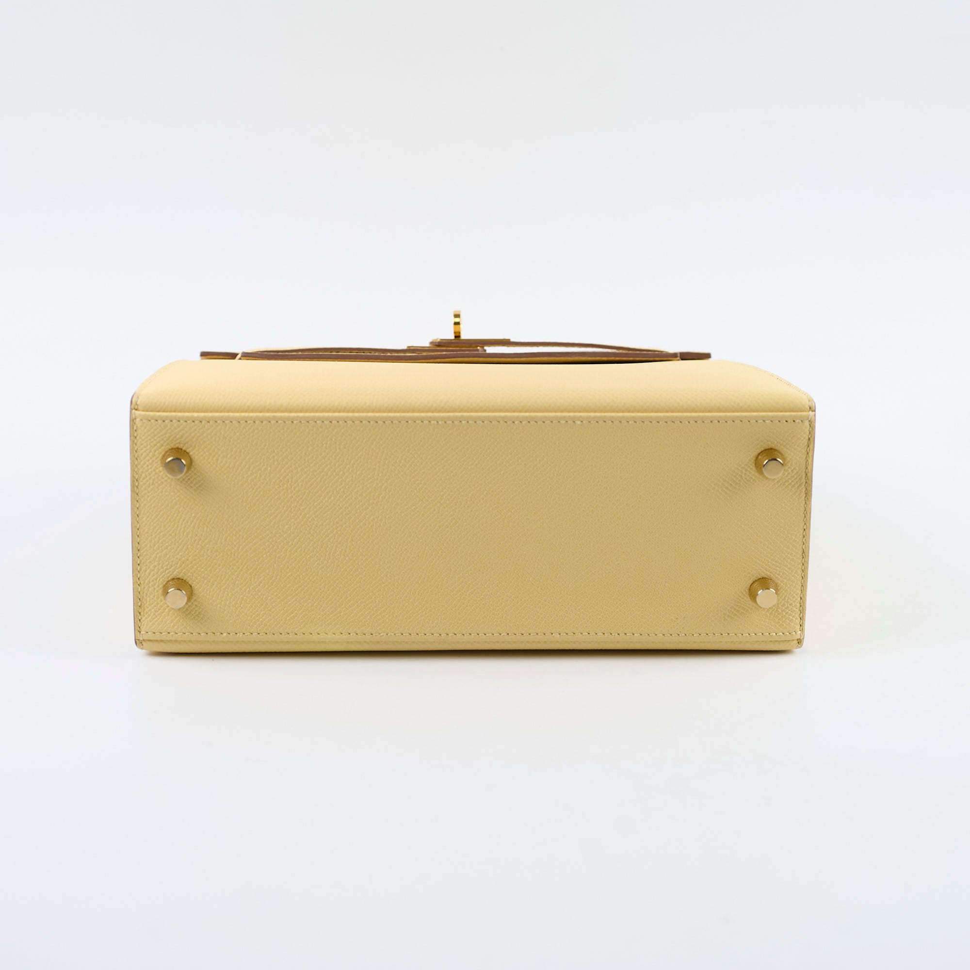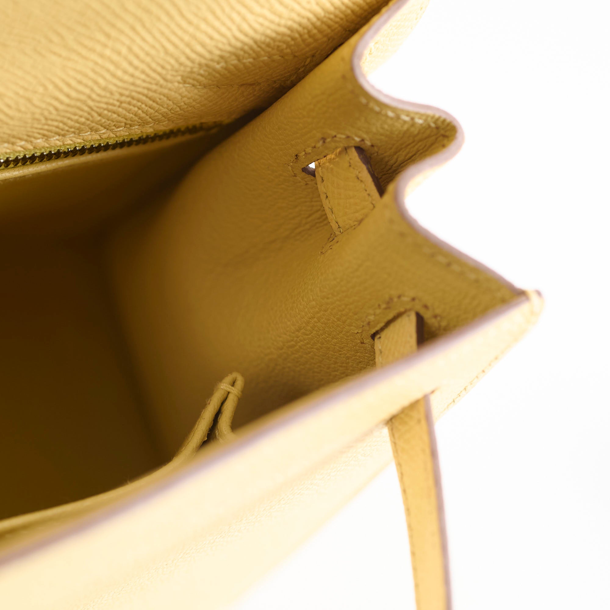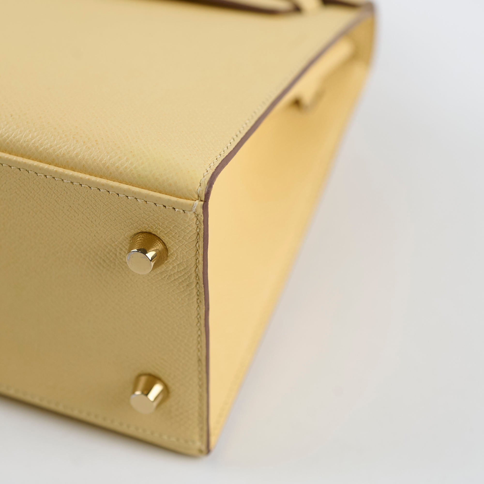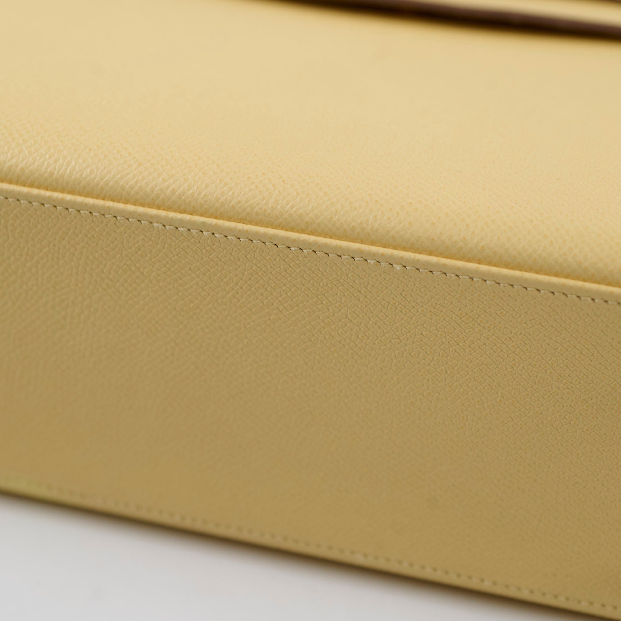 Light rubbing on corners and handle, scratches on hardware, minor stain on interior bottom leather