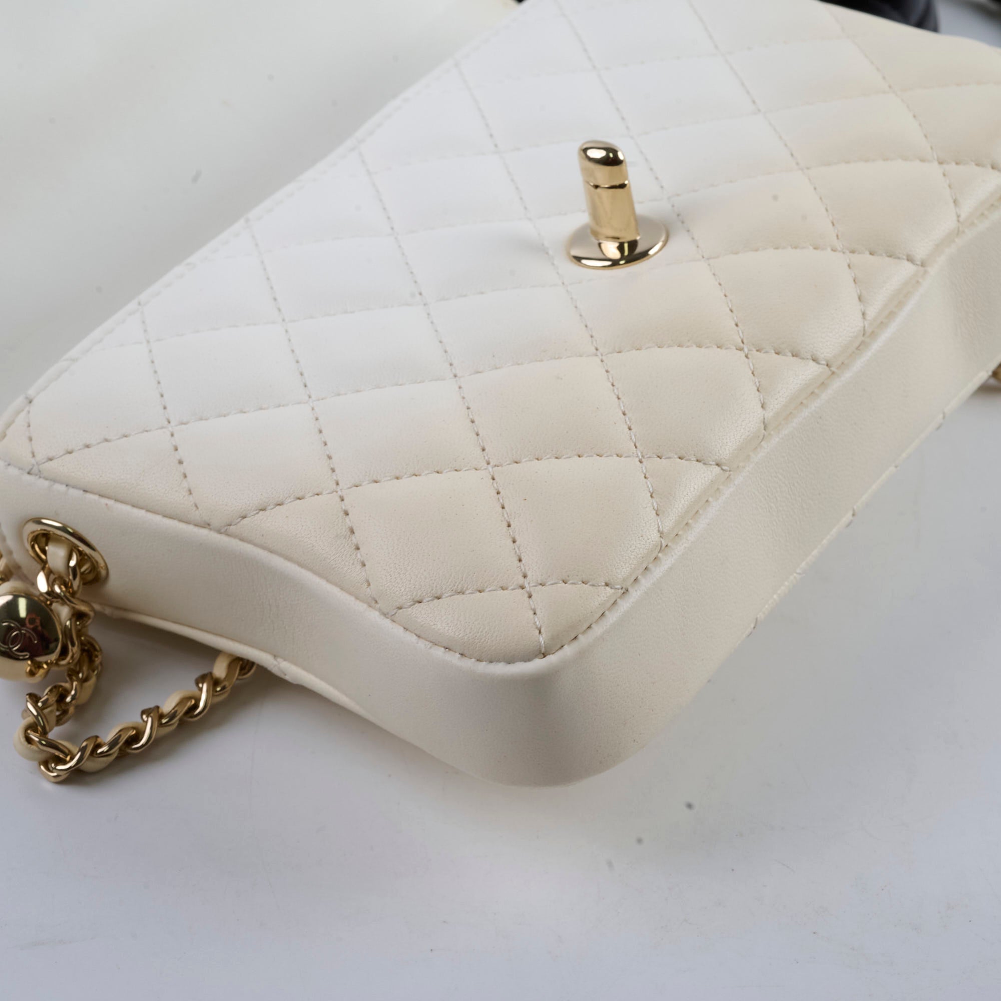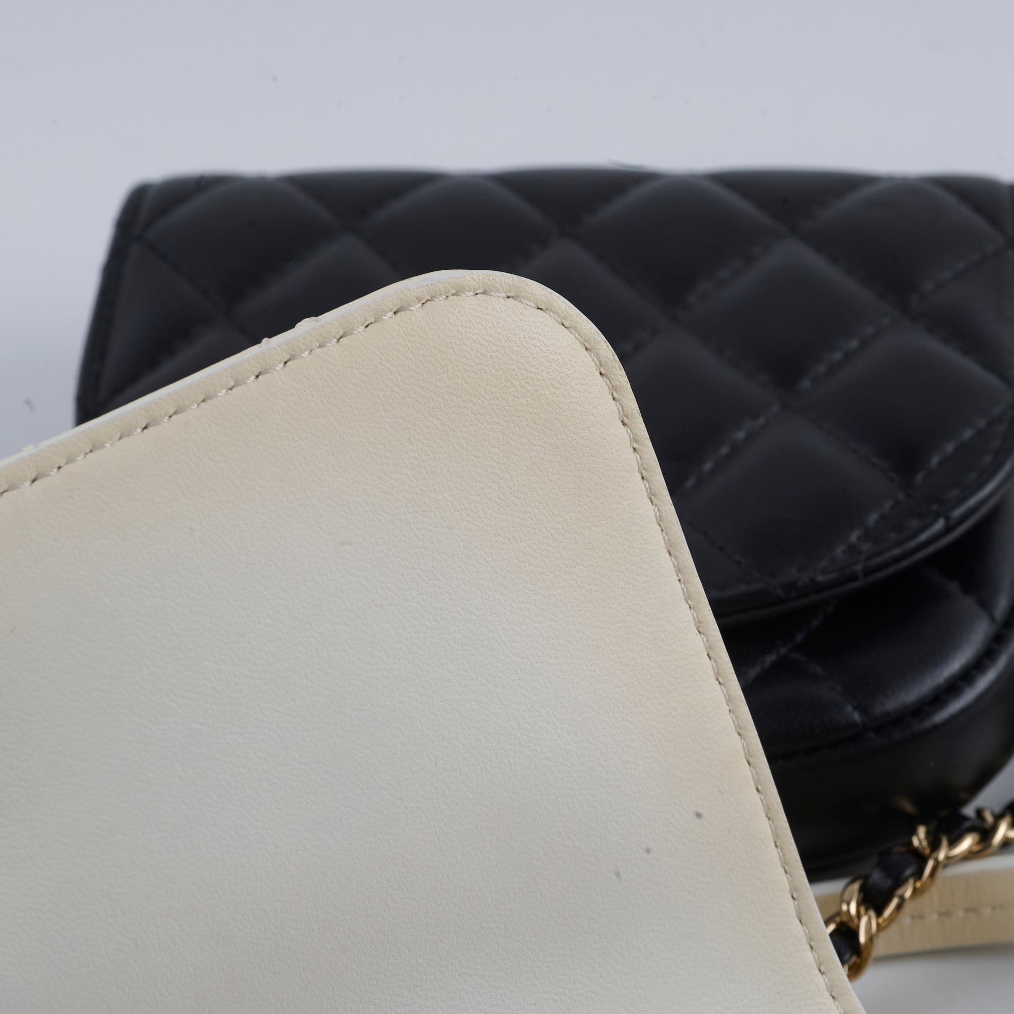 White leather has discolour, slight rubbing on corners