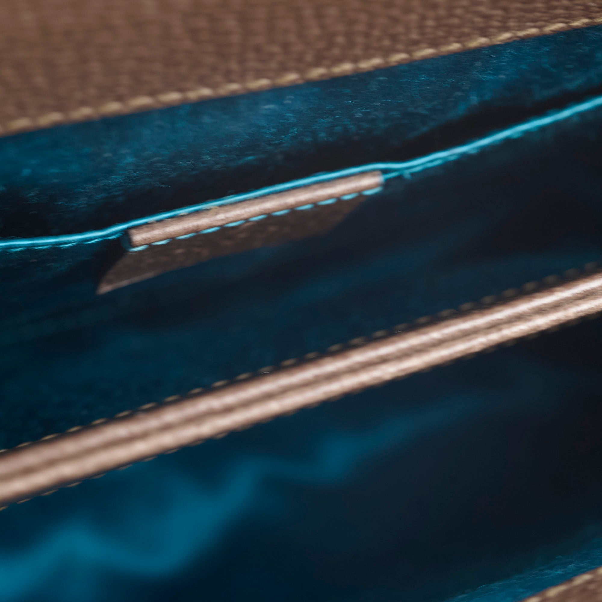 Some rubbing on corners and edges, some marks on interior lining