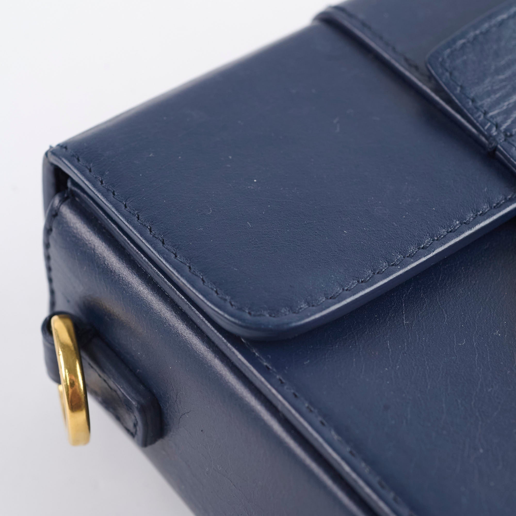 Dry leather hand feel, slightly wrinkling throughout, hardware fading