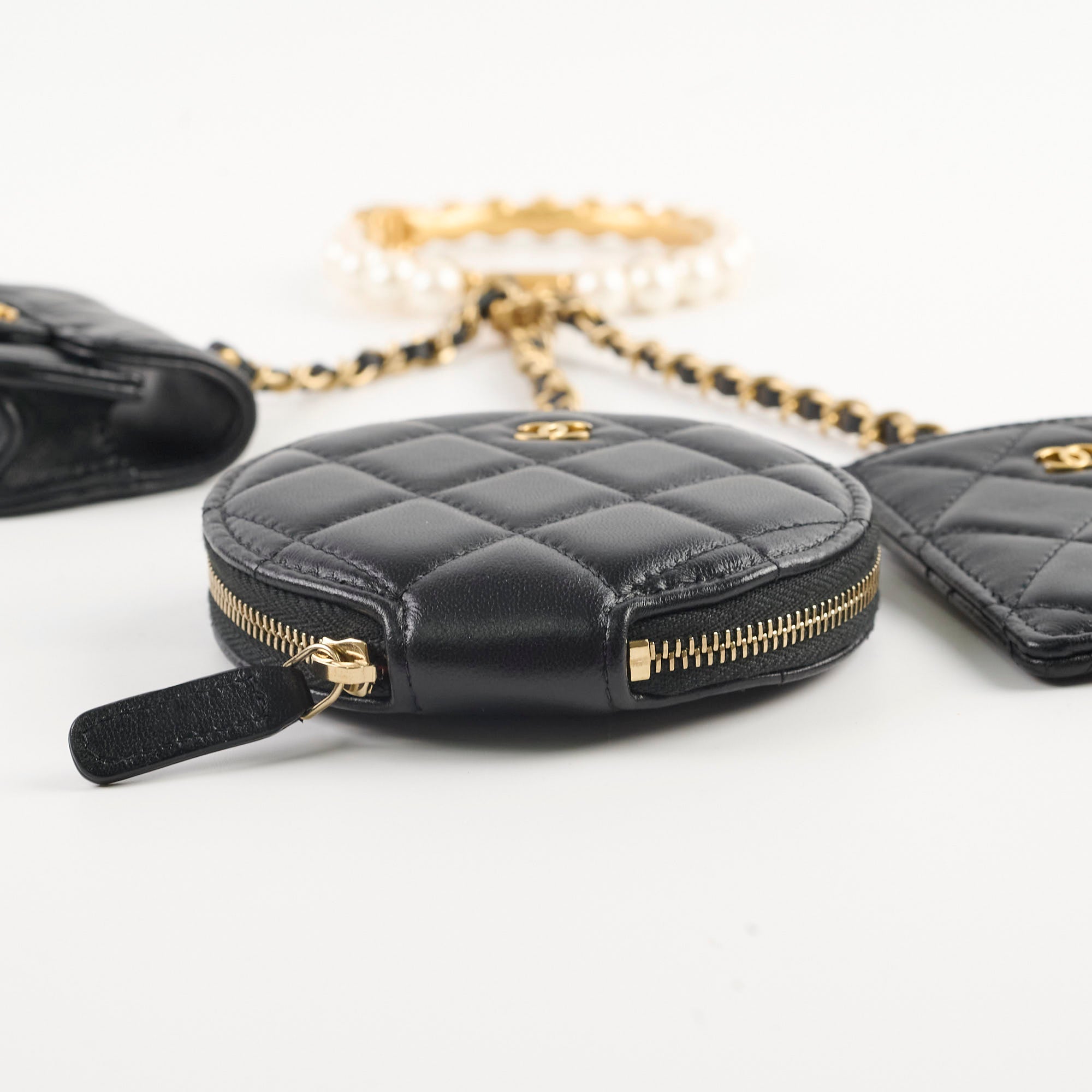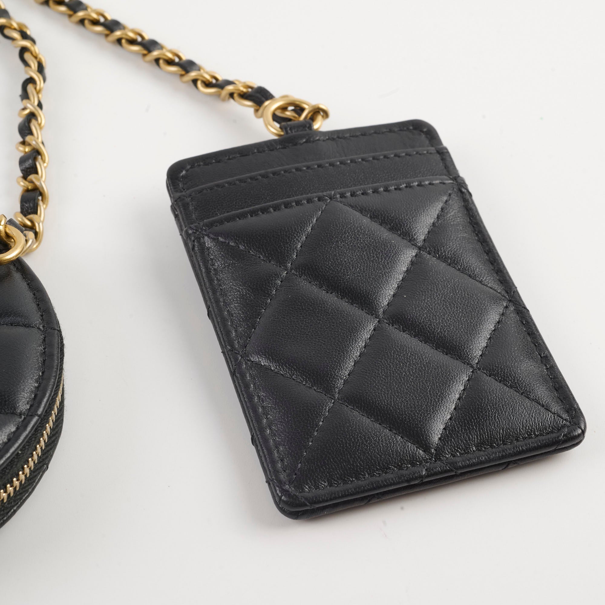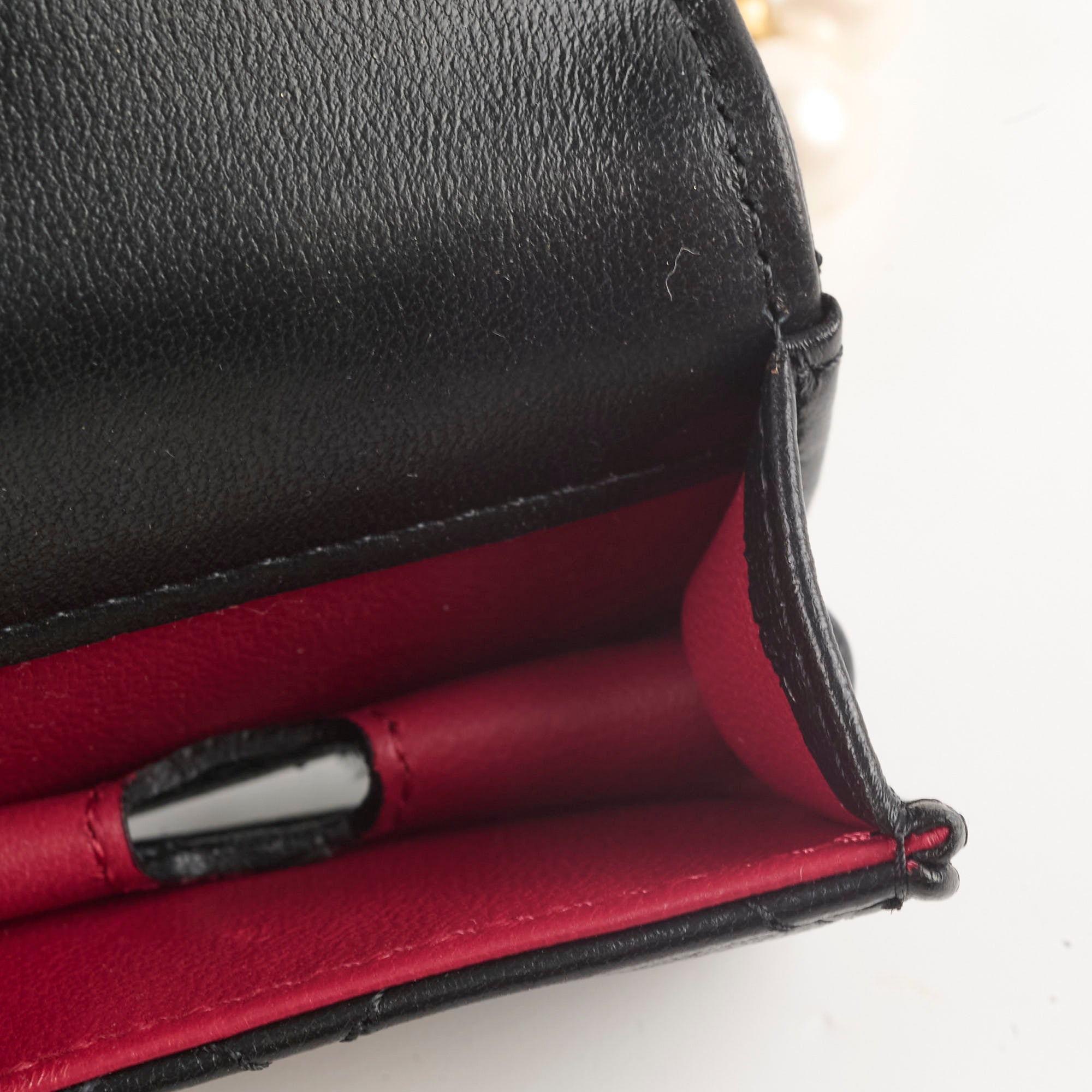 Minor indents exterior on cardholder potentially from chain, no visible signs of wear
