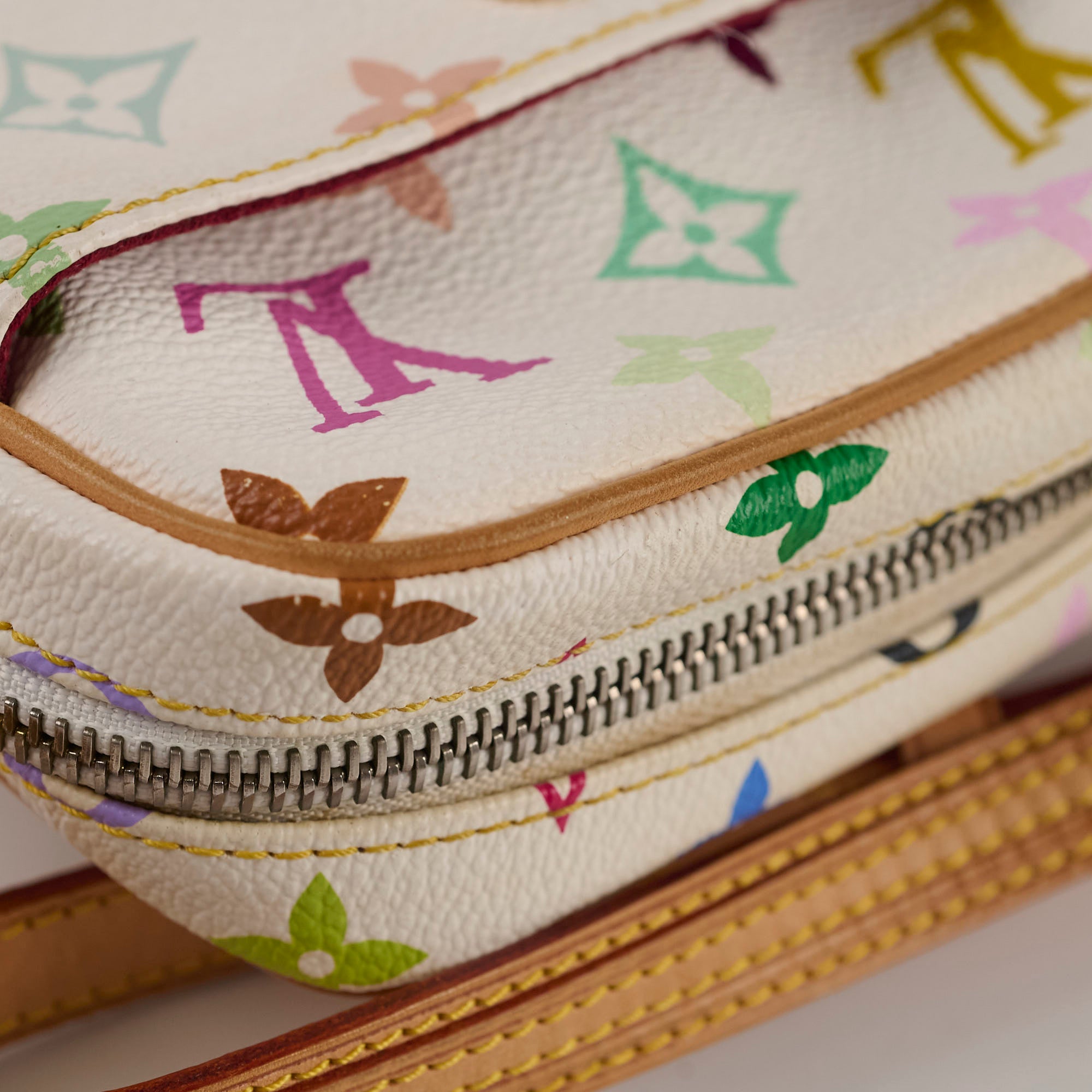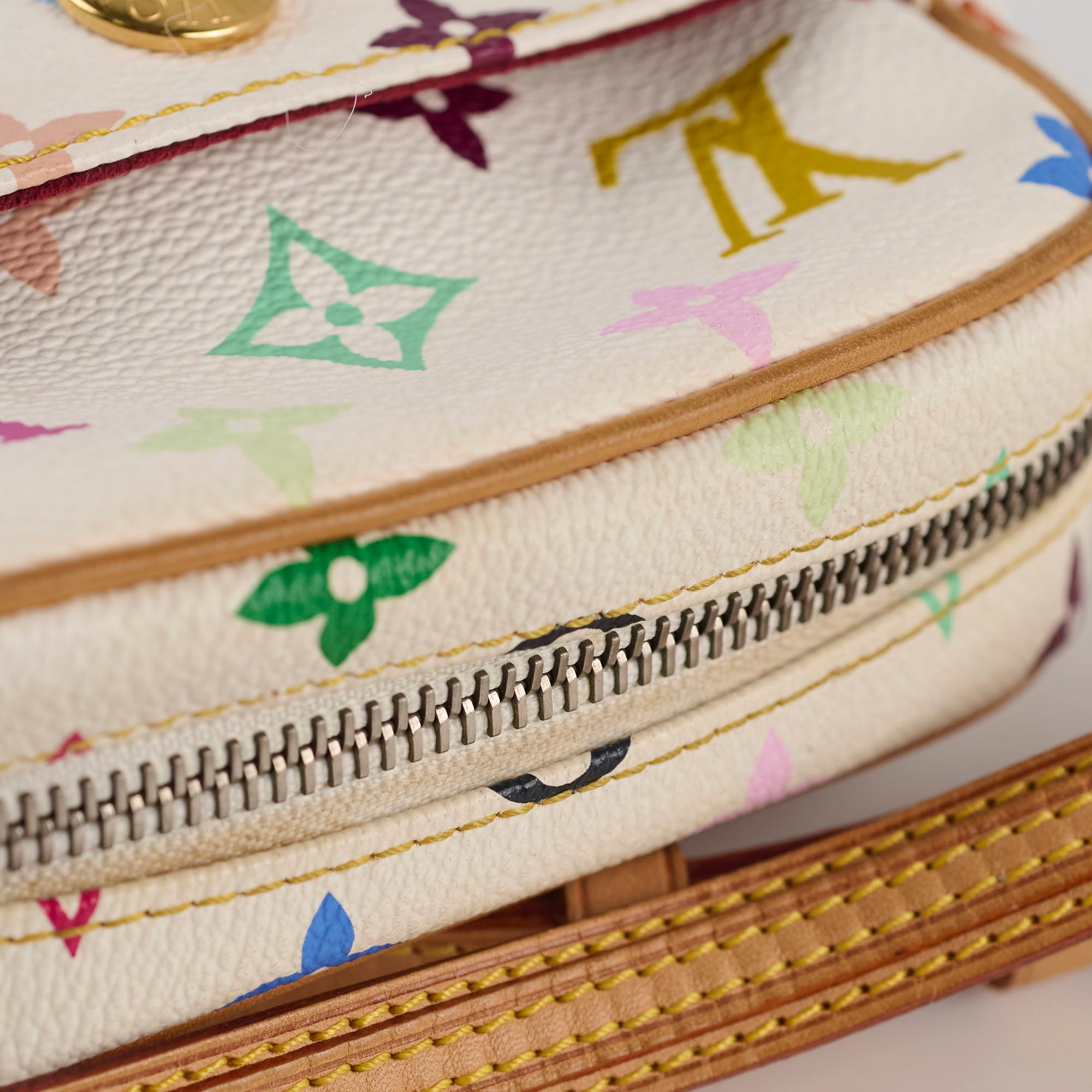 Zipper turned silver, hairline scratches on hardware, black rubbing on vachetta, leather and canvas in excellent condition, clean inside and out