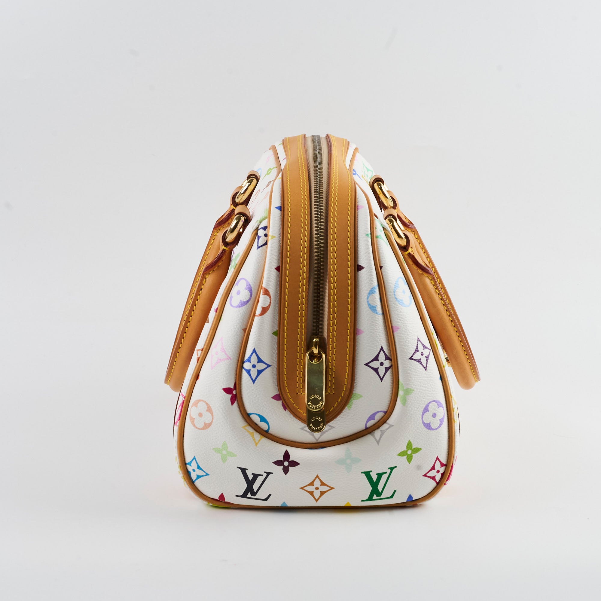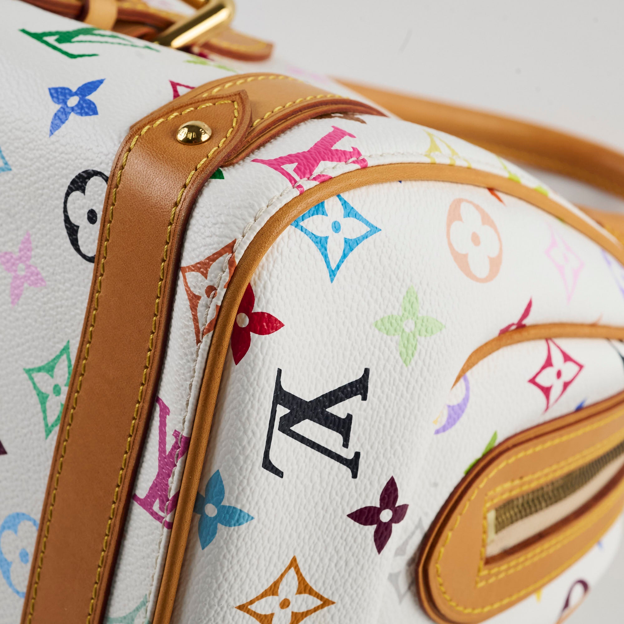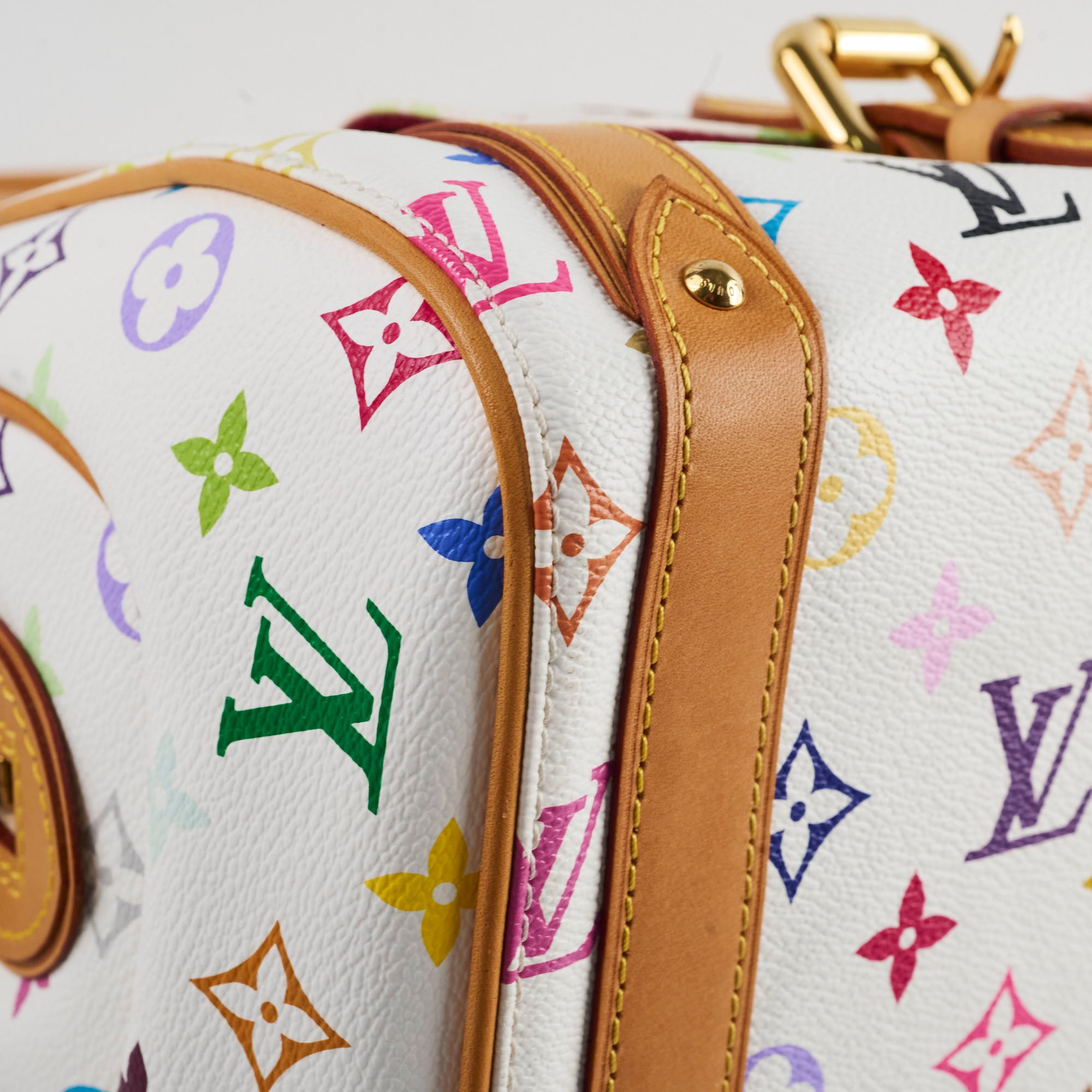 Light rubbing on corners, light hairline scratches & tarnishing on hardware, light darkening on vacetta