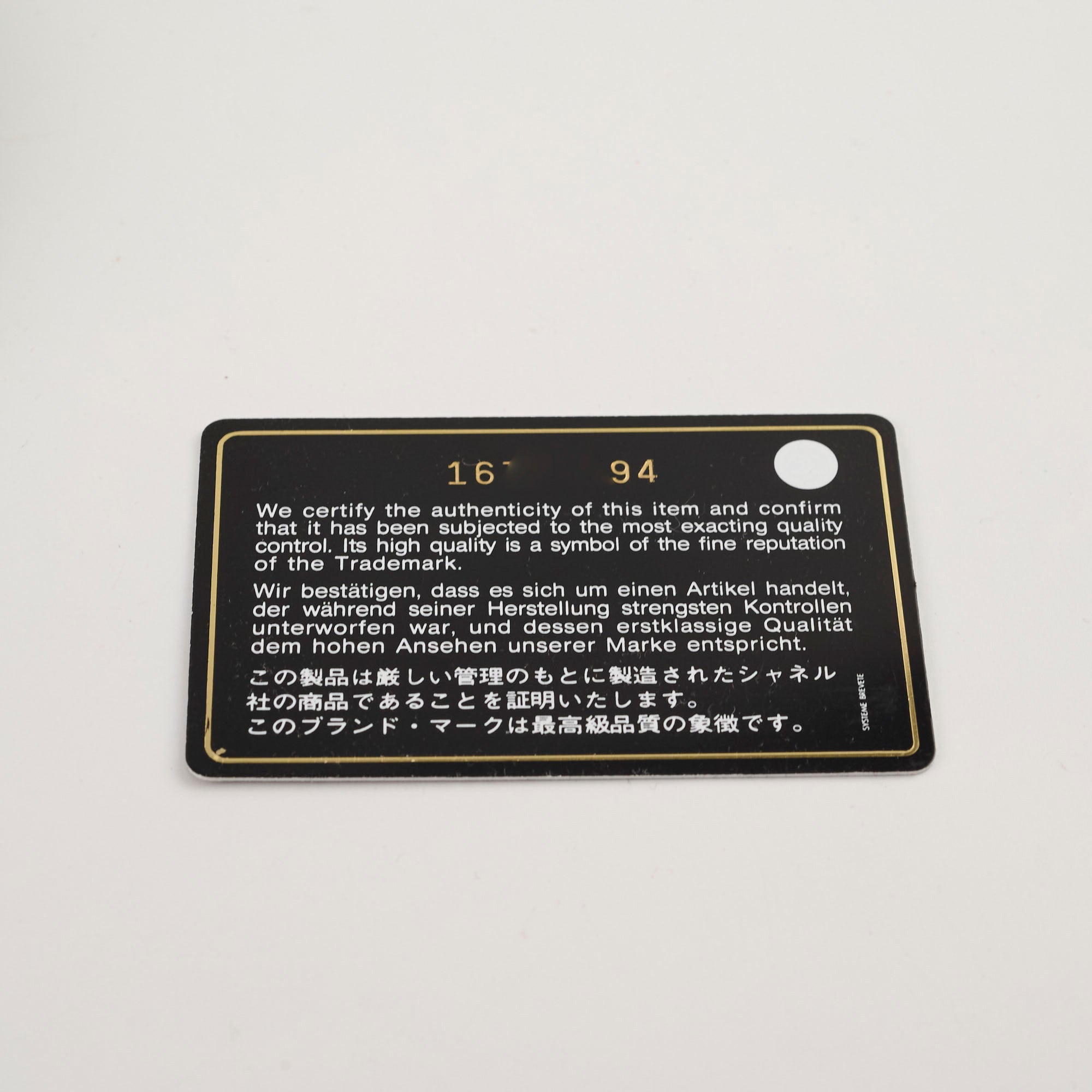 Authenticity Card, Dustbag